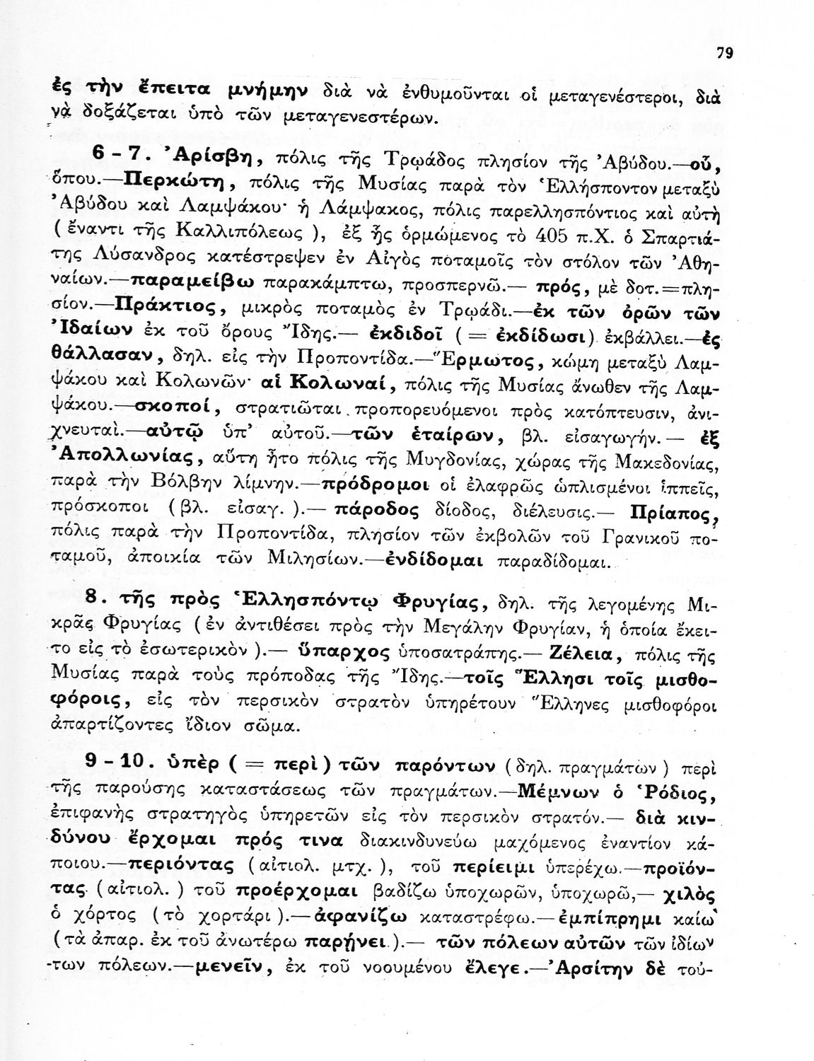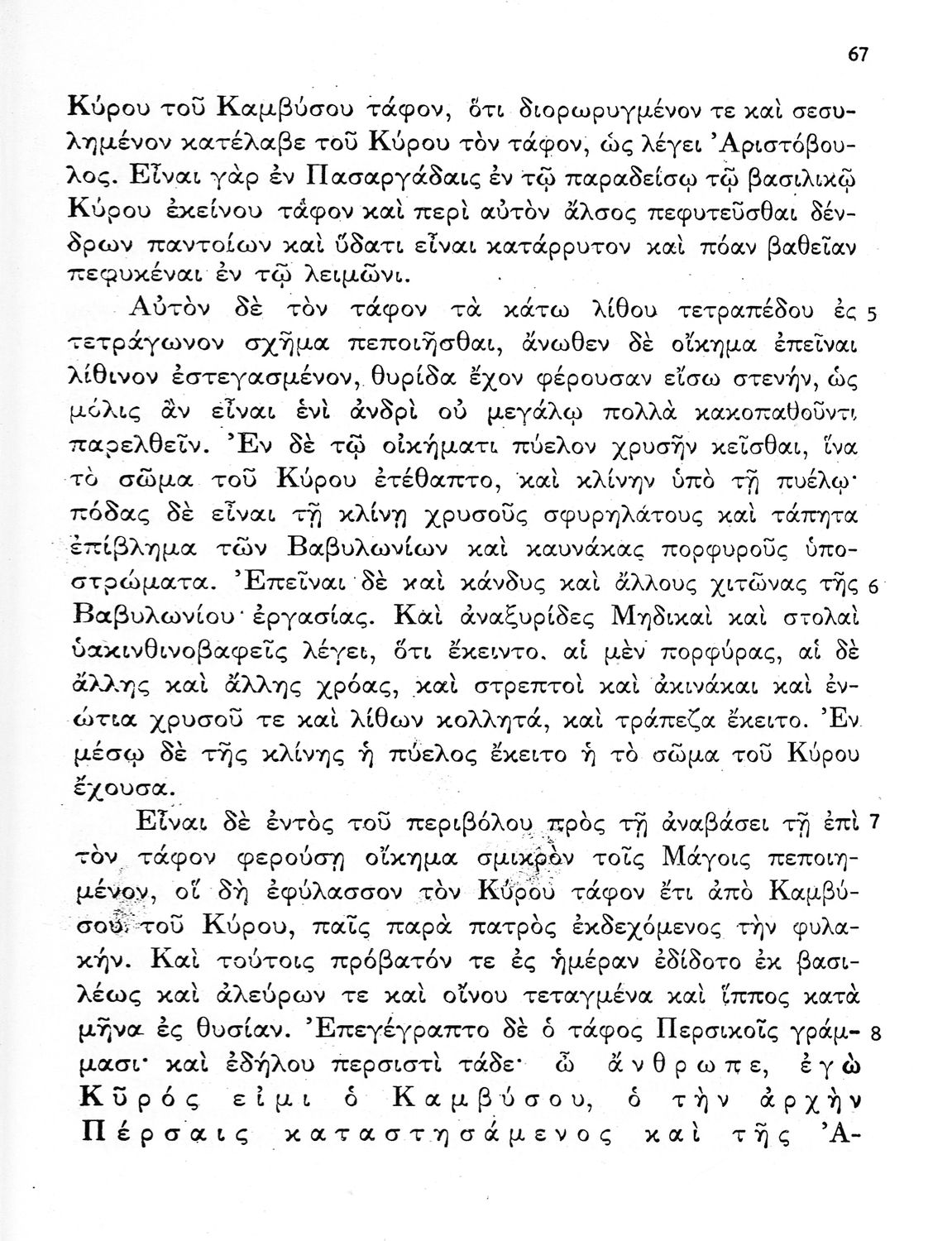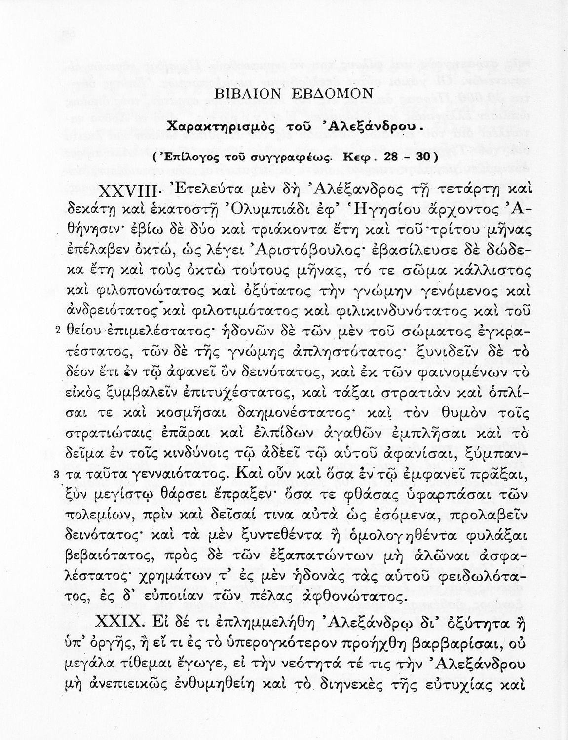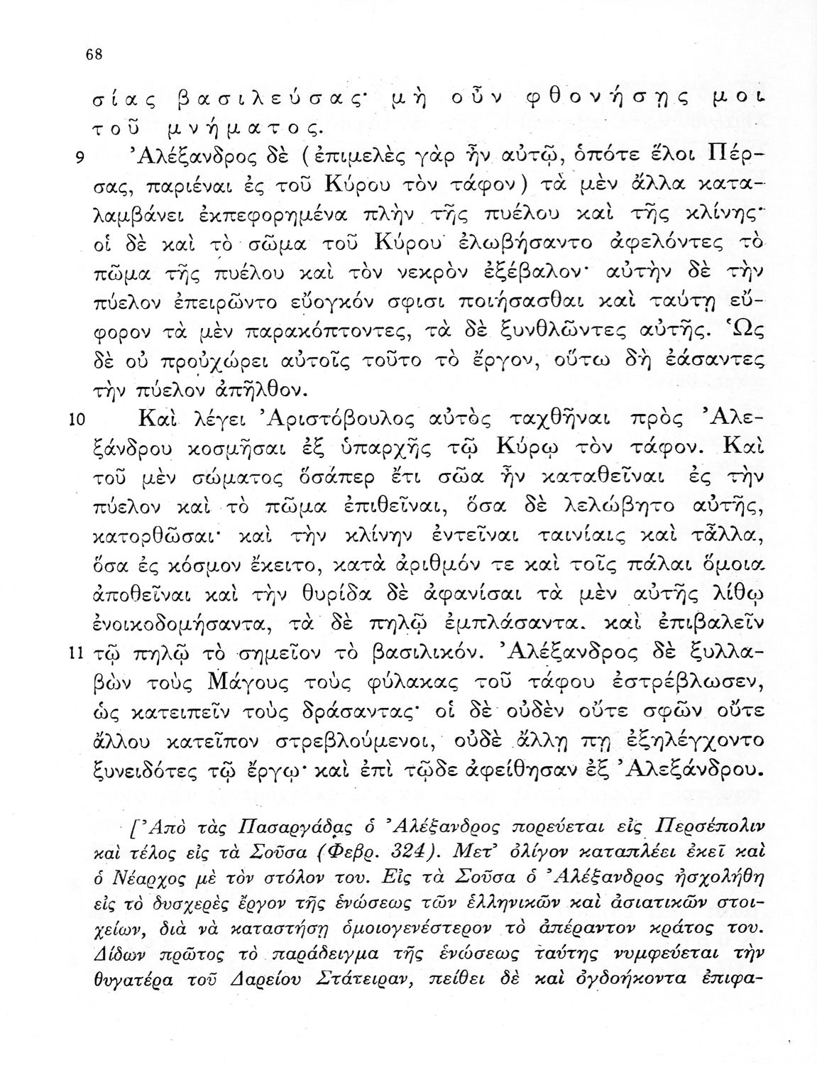 Σχολικό εγχειρίδιο Αρχαίων Ελληνικών Γ΄ Γυμνασίου που περιλαμβάνει αποσπάσματα από το έργο του Αρριανού Αλέξανδρου Ανάβασις και του Ηρόδοτου Ιστορίαι, ερμηνευτικές και λεξιλογικές παρατηρήσεις καθώς και τοπογραφικούς πίνακες και χάρτες..