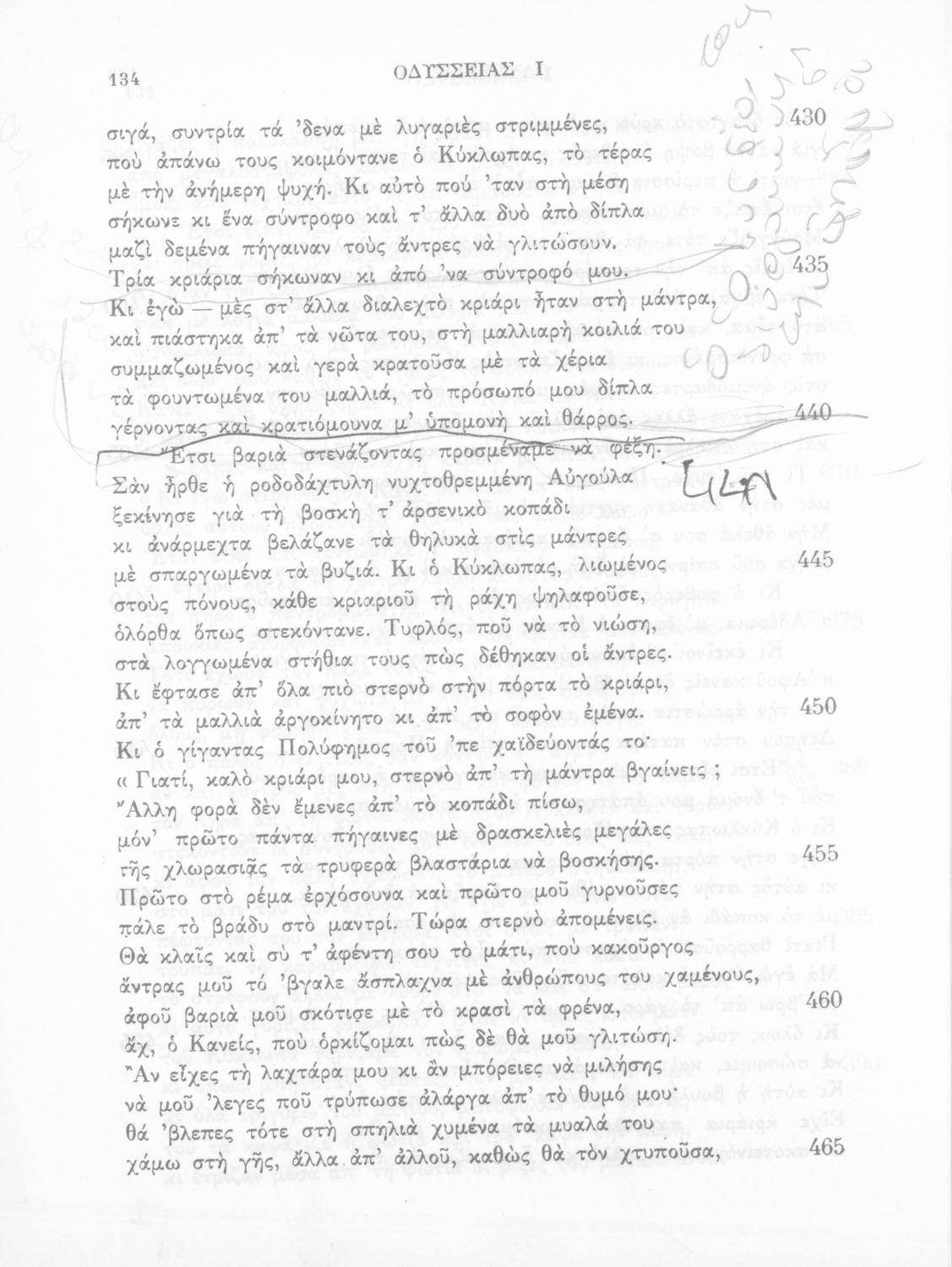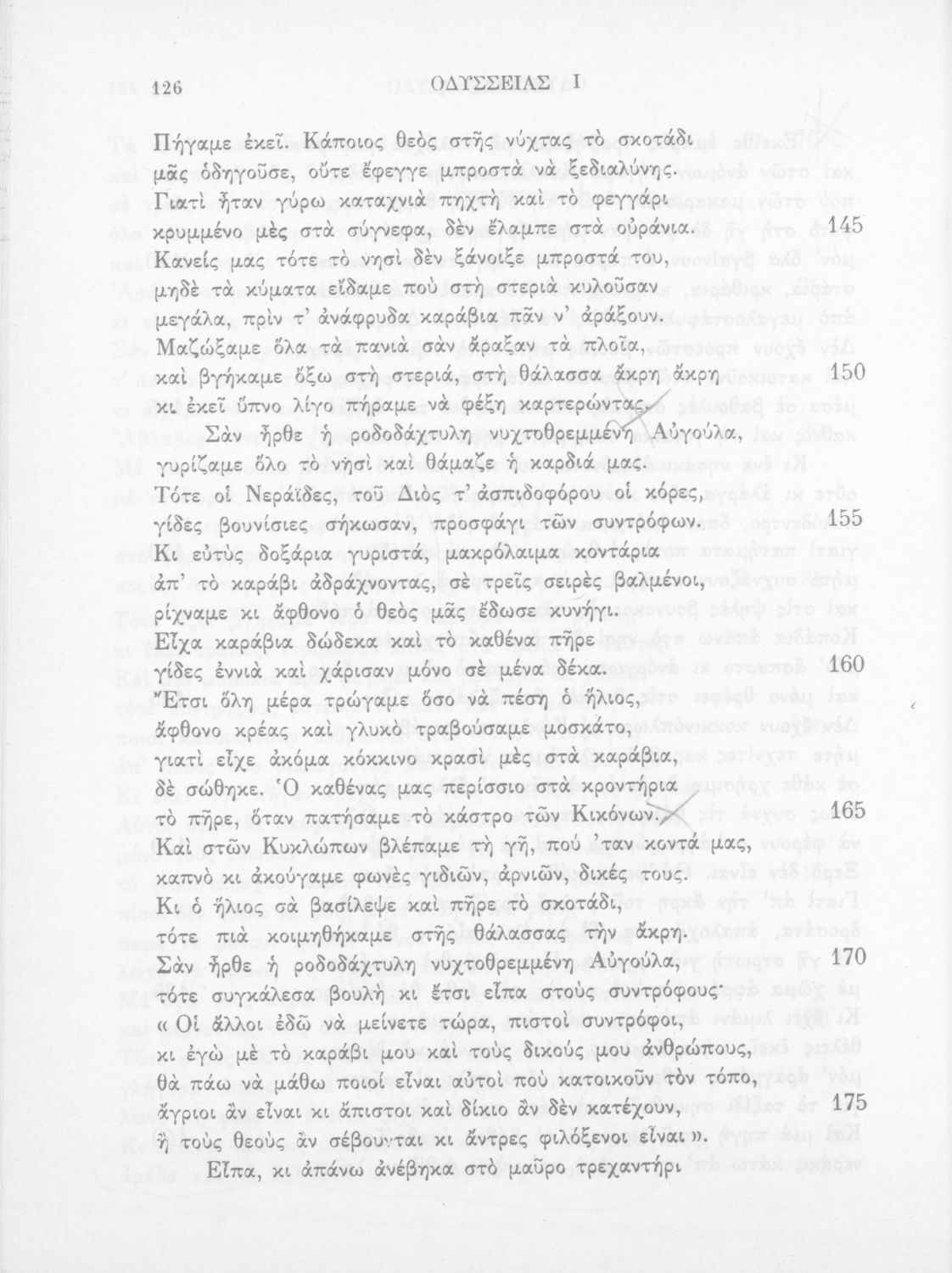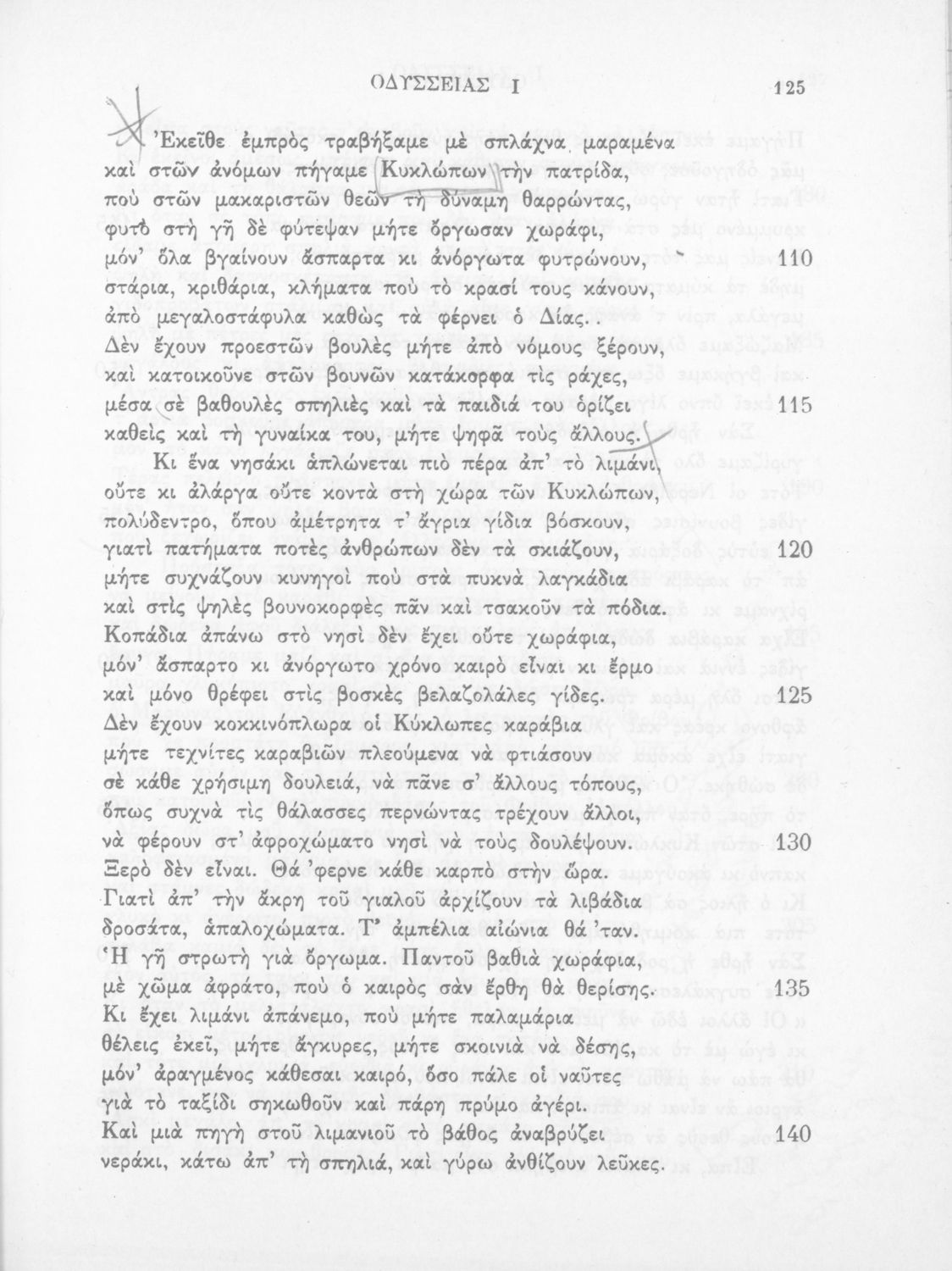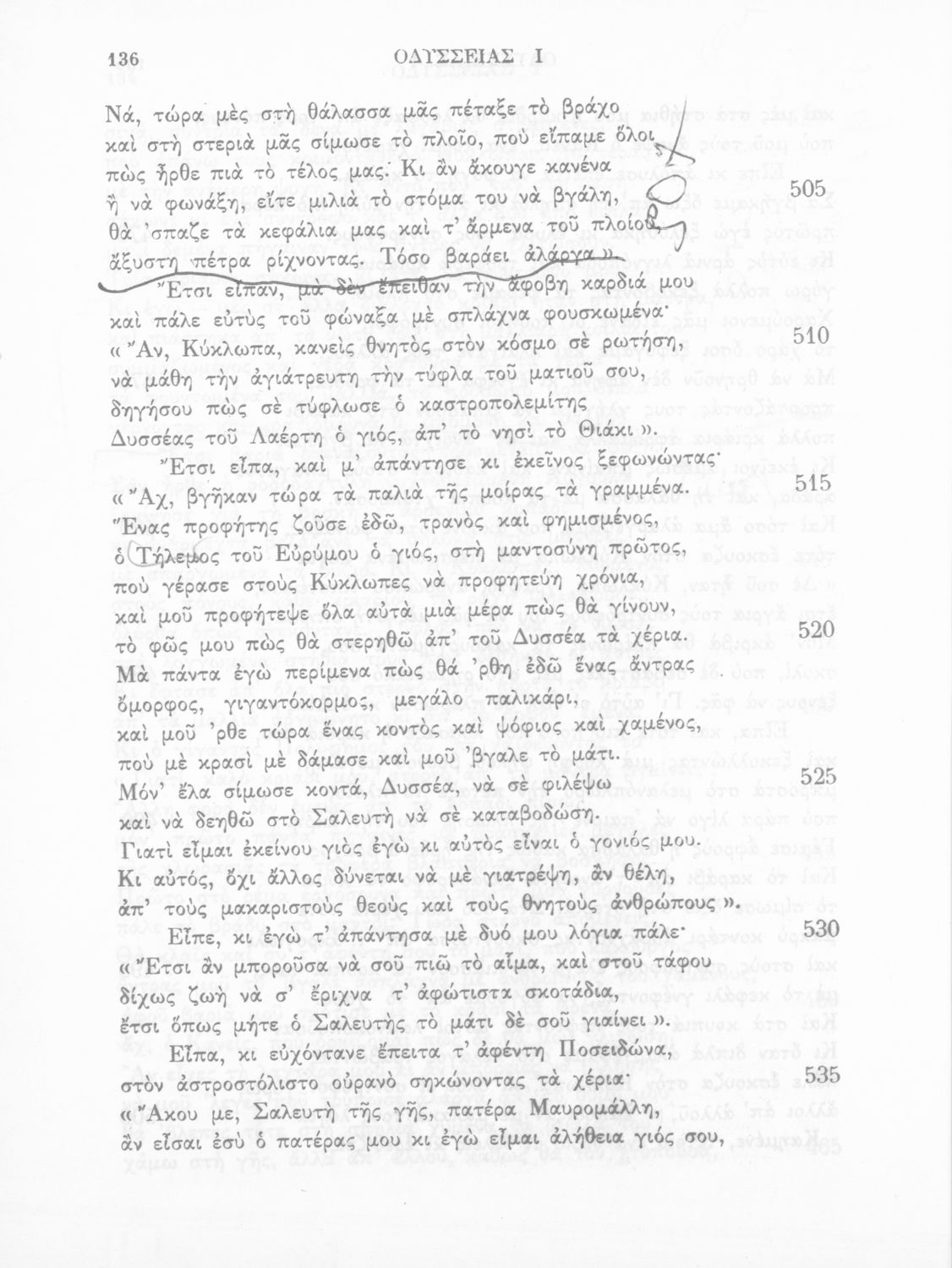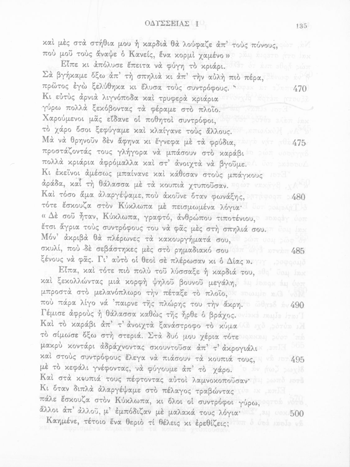 Σχολικό εγχειρίδιο του Γυμνασίου για το μάθημα των Αρχαίων Ελληνικών. Πρόκειται για το κείμενο της Οδύσσειας μεταφρασμένο στο τέλος περιλαμβάνει λεξιλόγιο.