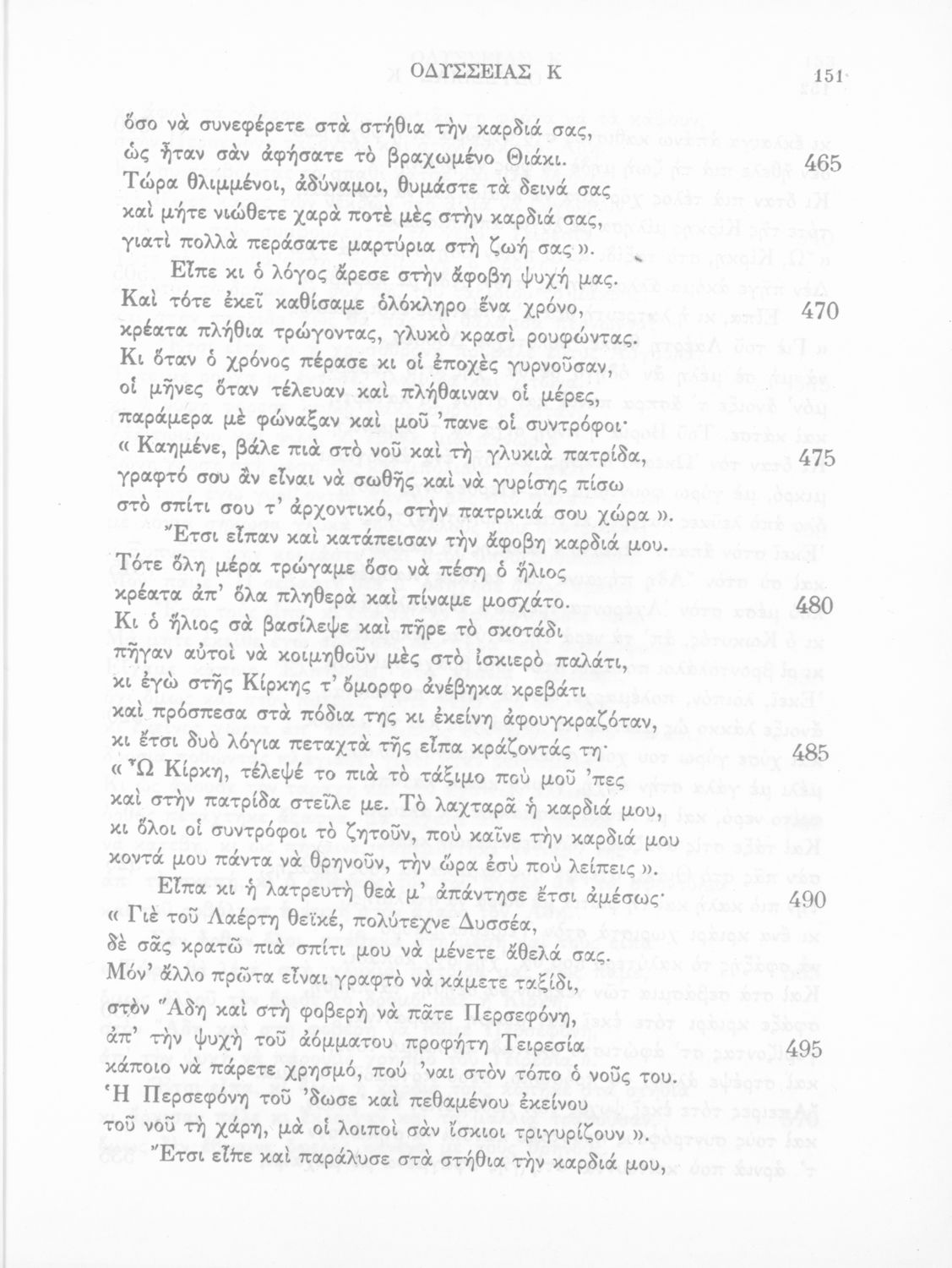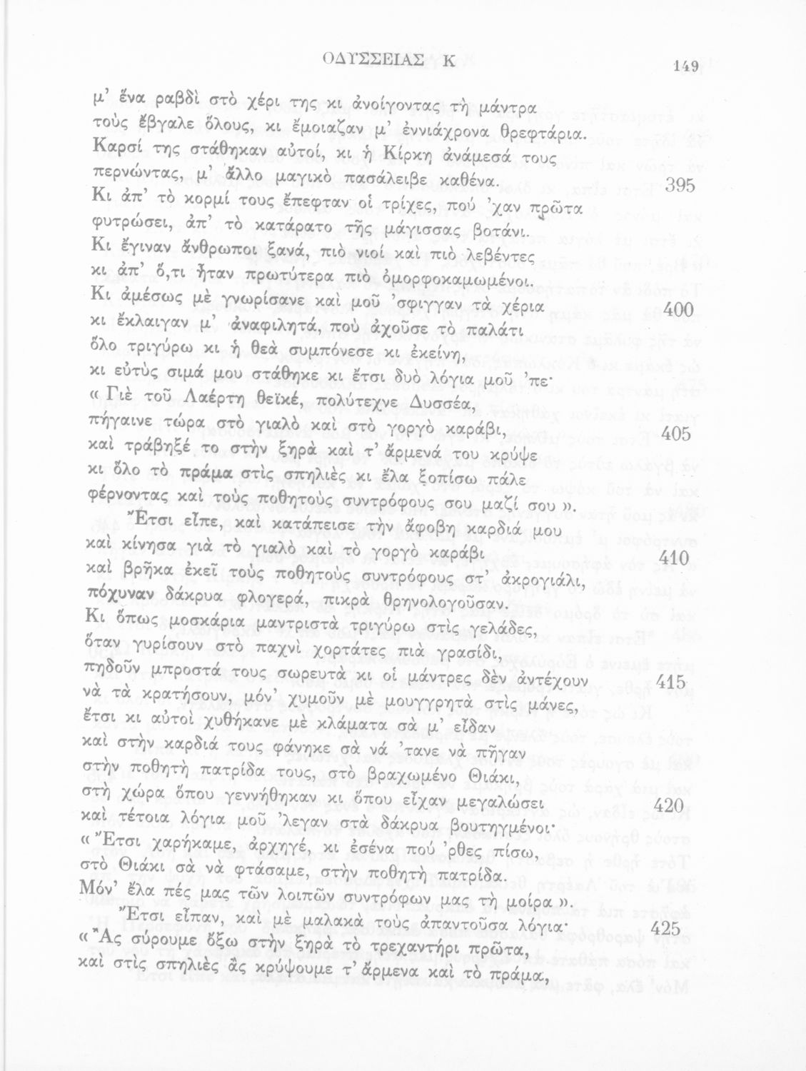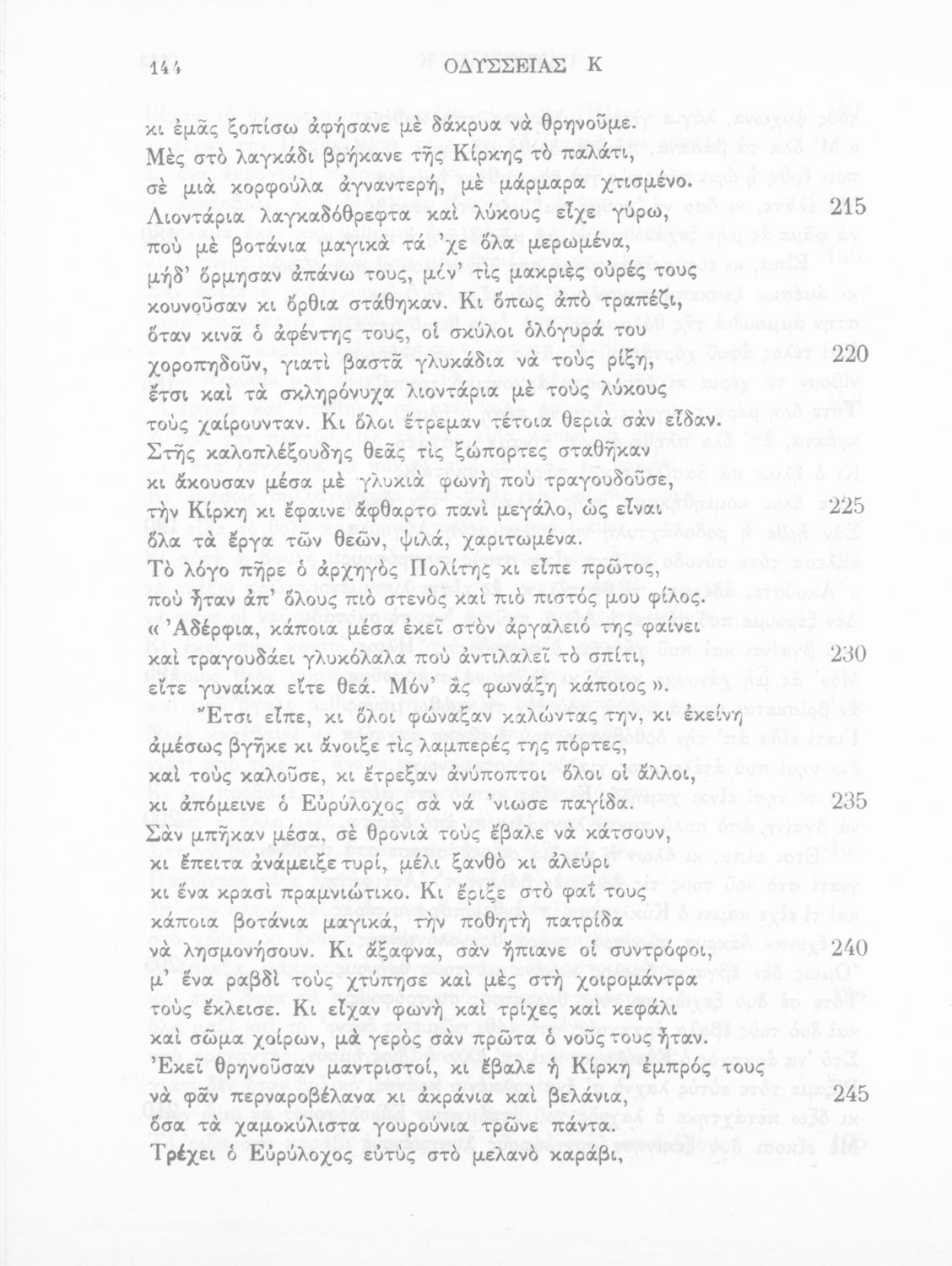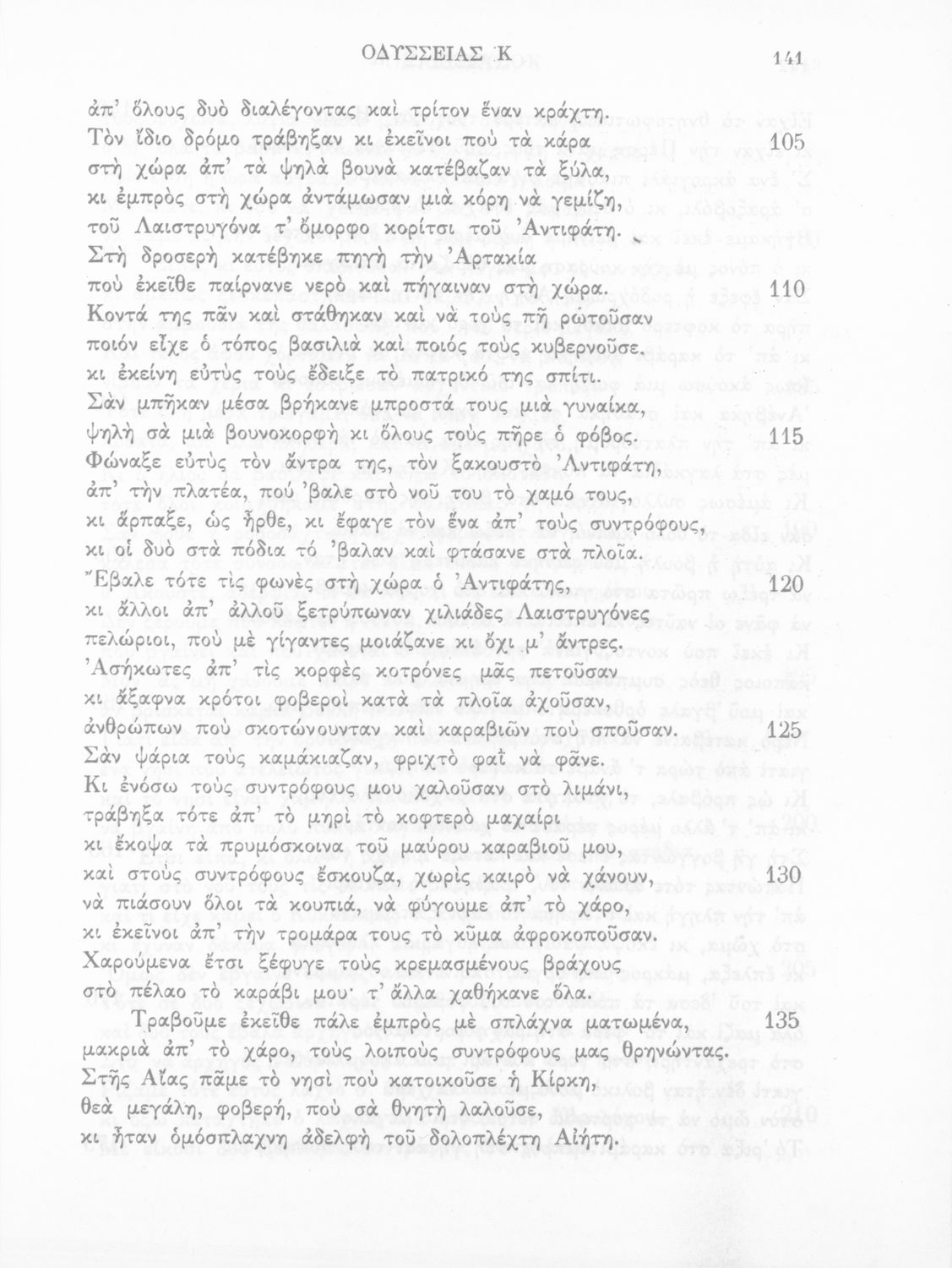 Παιδαγωγικό βοήθημα Αρχαίων Ελληνικών που περιλαμβάνει μετάφραση της Ομήρου Οδύσσειας στη νέα ελληνική, εισαγωγή στην επική ποίηση και στην Οδύσσεια, περιλήψεις και σημειώσεις.