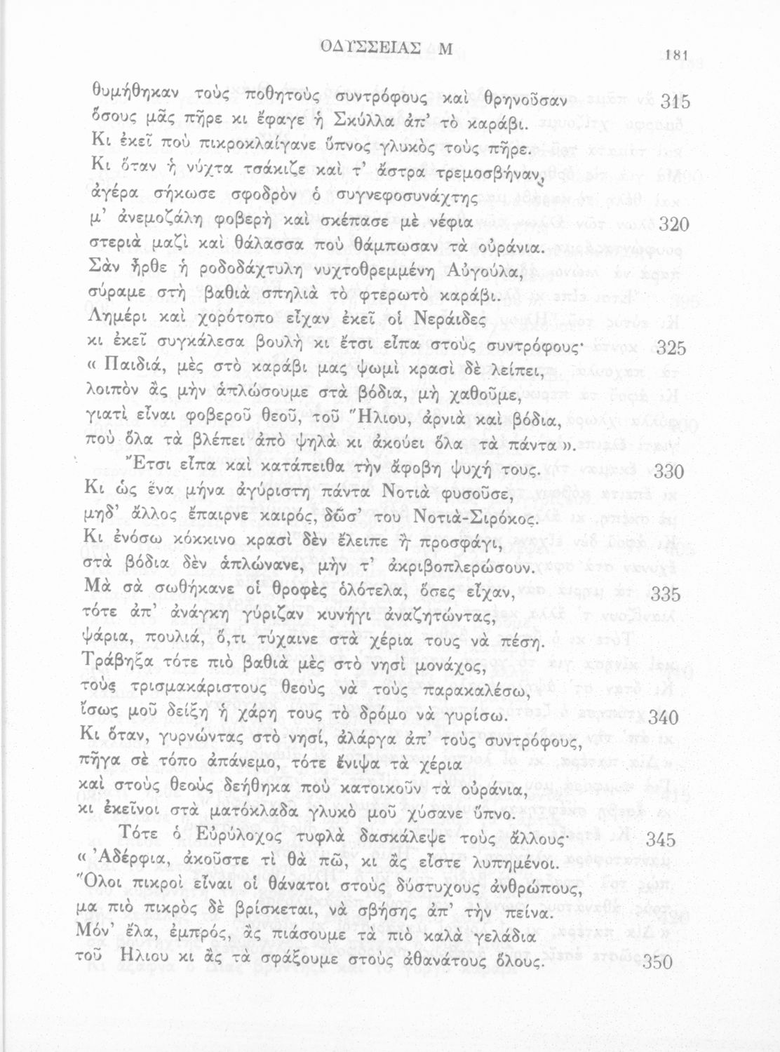 Παιδαγωγικό βοήθημα Αρχαίων Ελληνικών που περιλαμβάνει μετάφραση της Ομήρου Οδύσσειας στη νέα ελληνική, εισαγωγή στην επική ποίηση και στην Οδύσσεια, περιλήψεις και σημειώσεις.