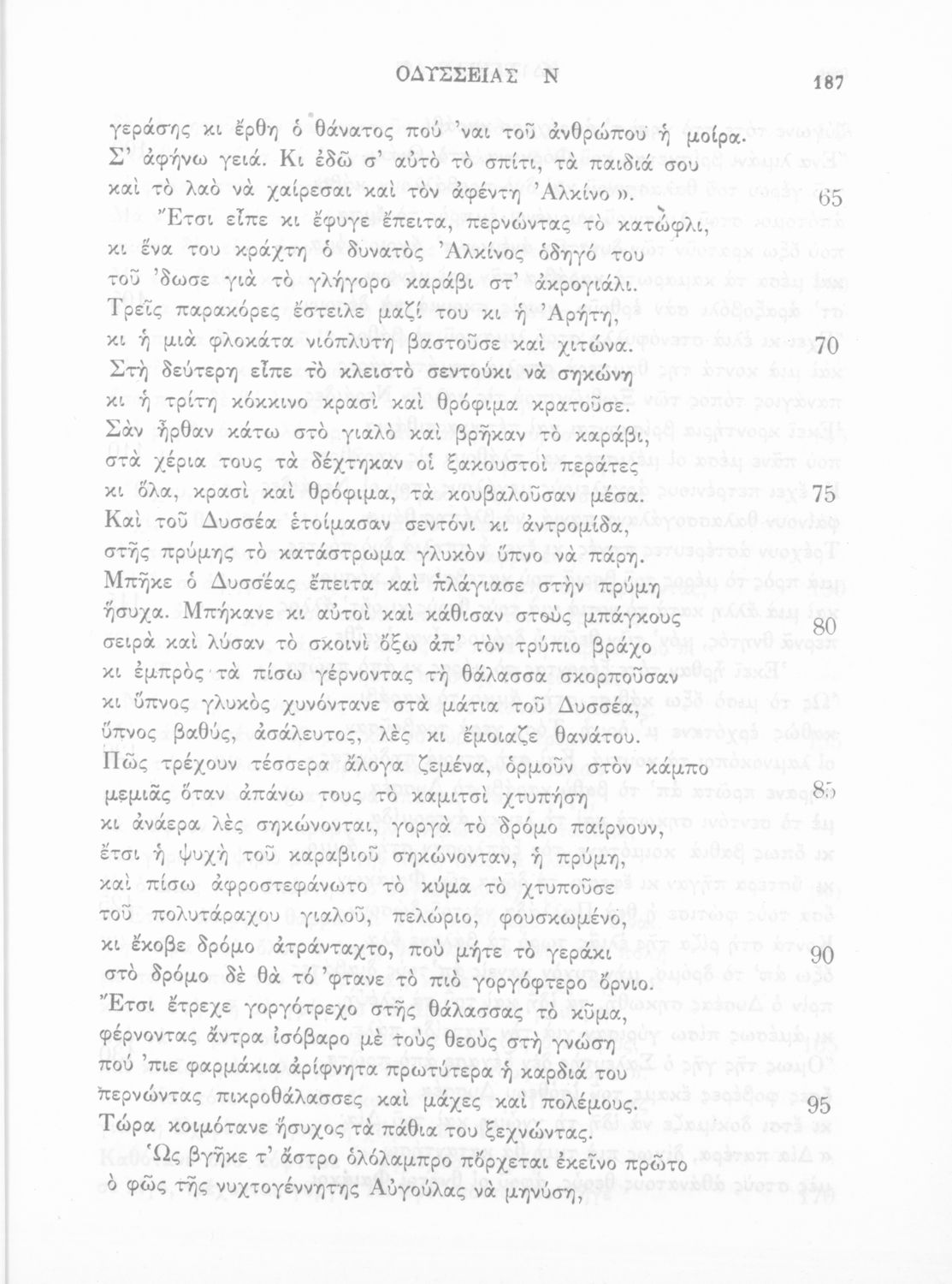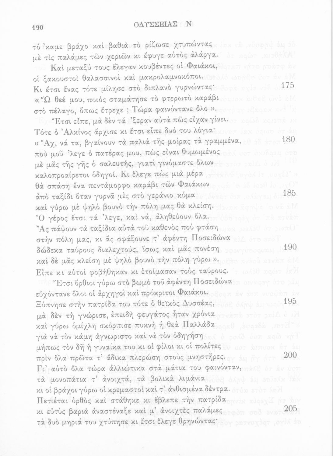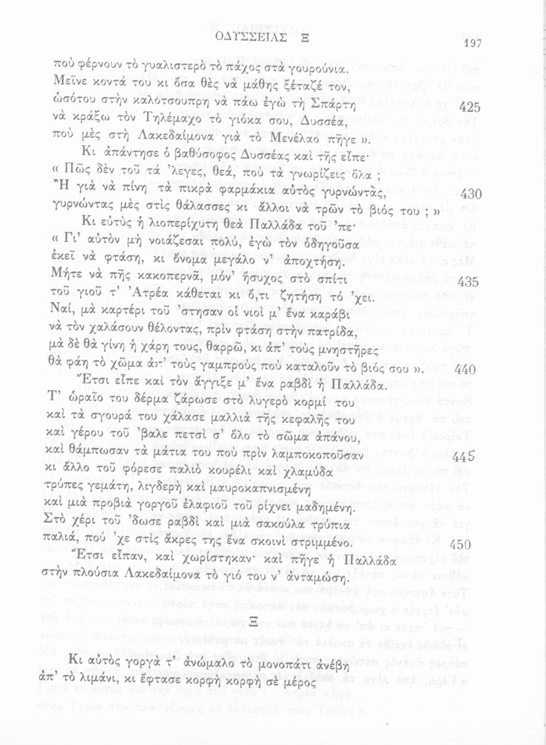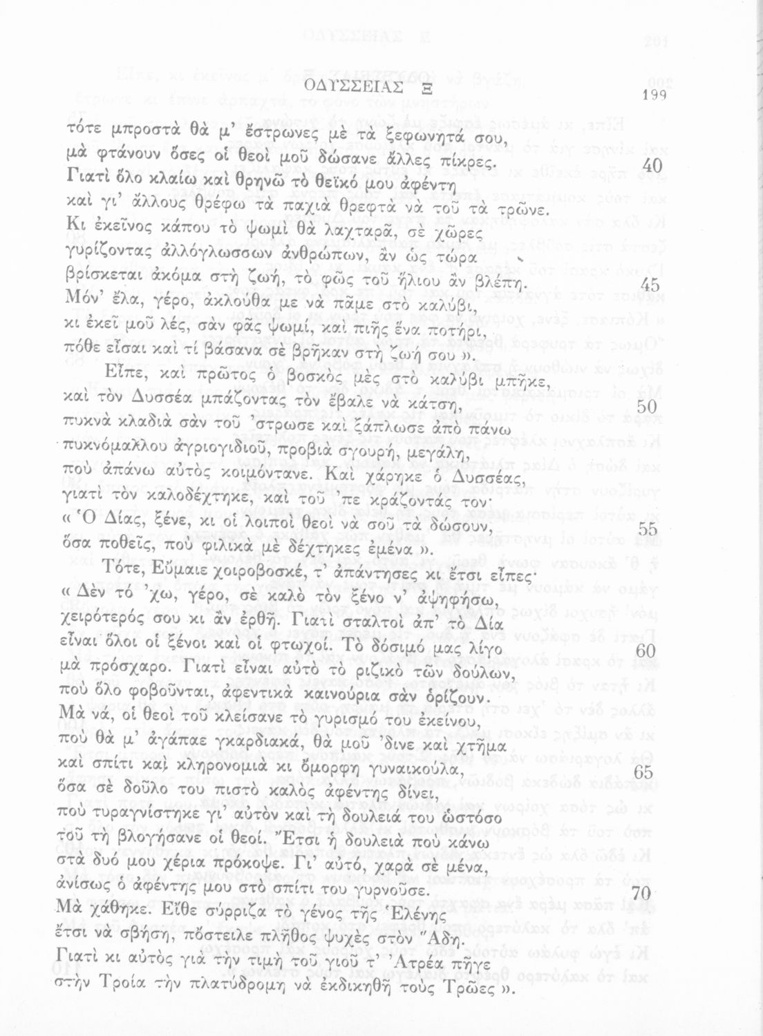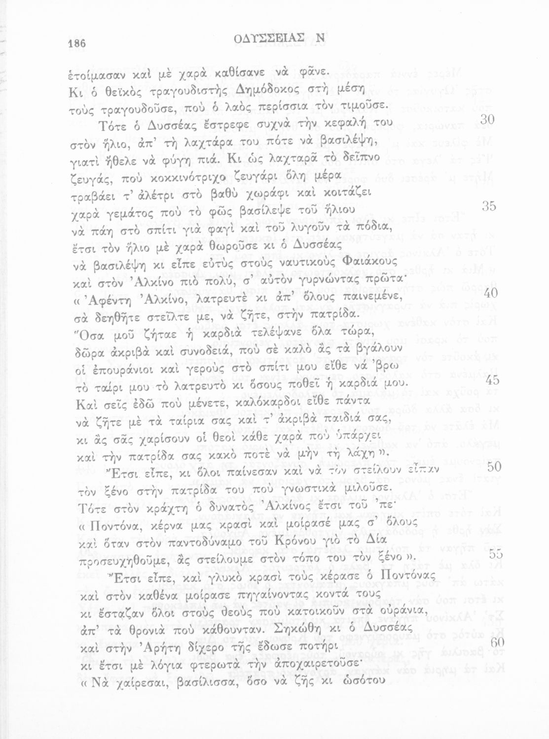Παιδαγωγικό βοήθημα Αρχαίων Ελληνικών που περιλαμβάνει μετάφραση των ραψωδιών Ν-Ω της Οδύσσειας.