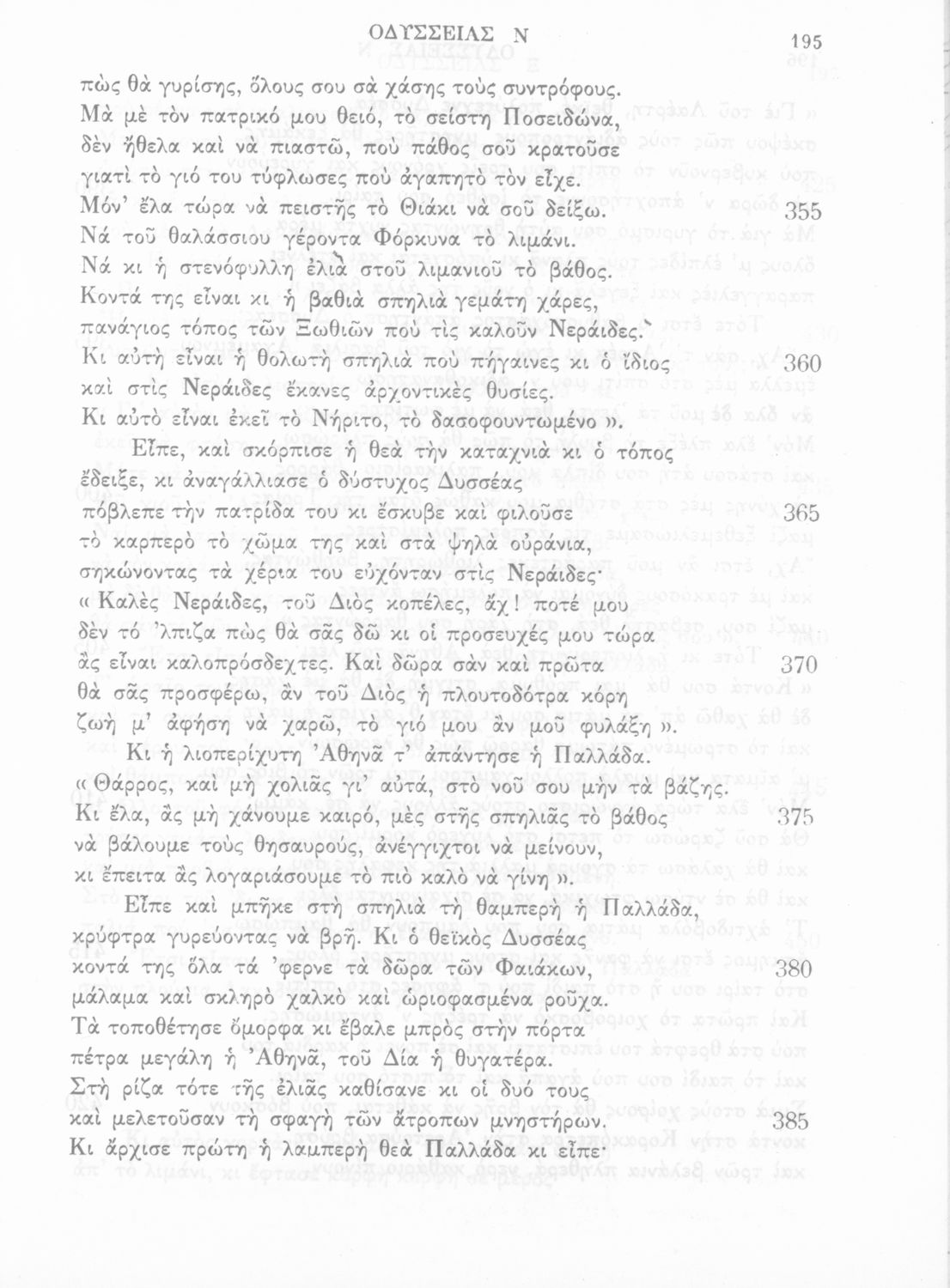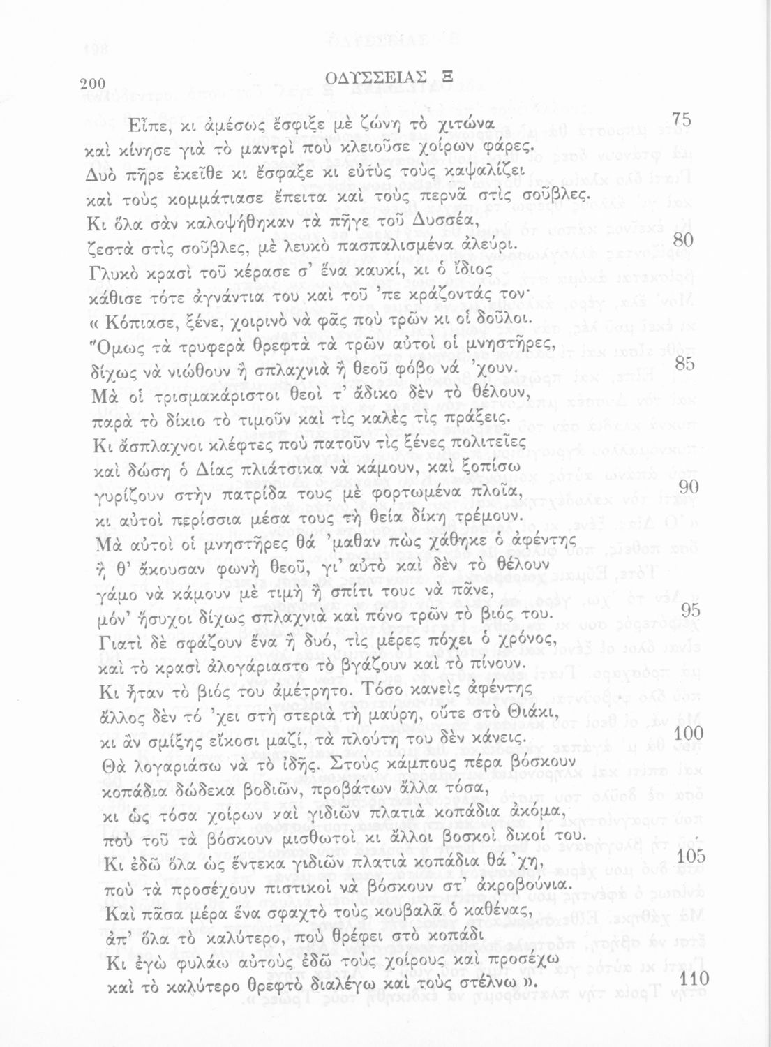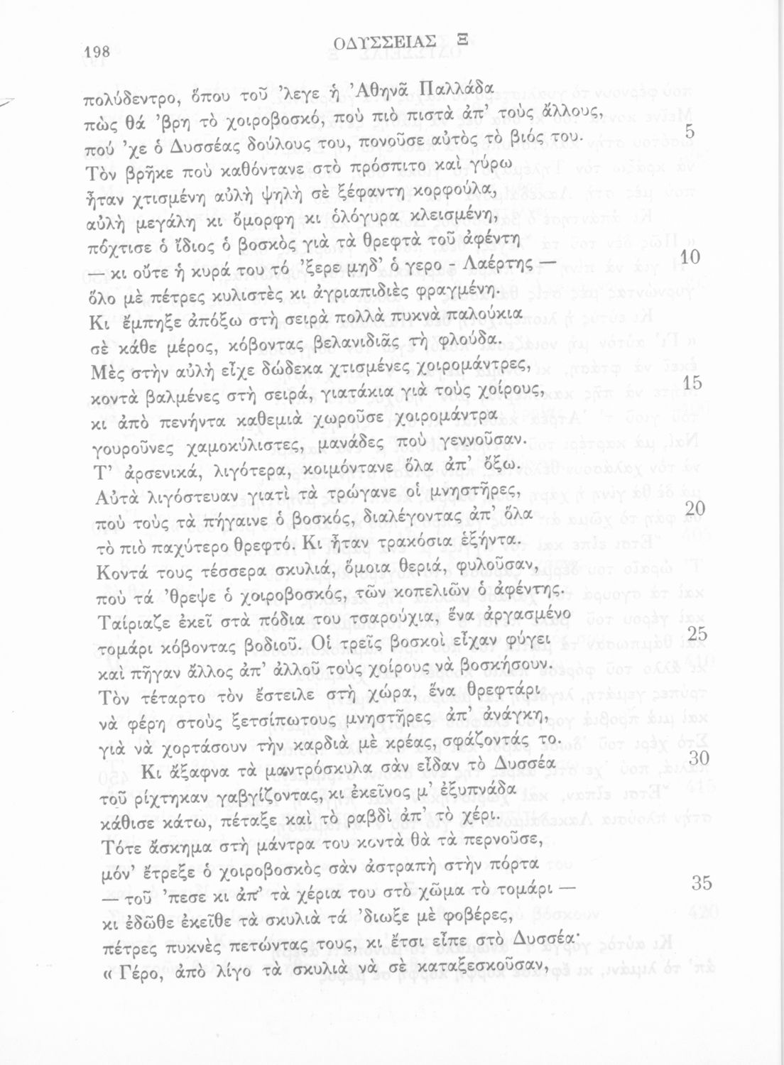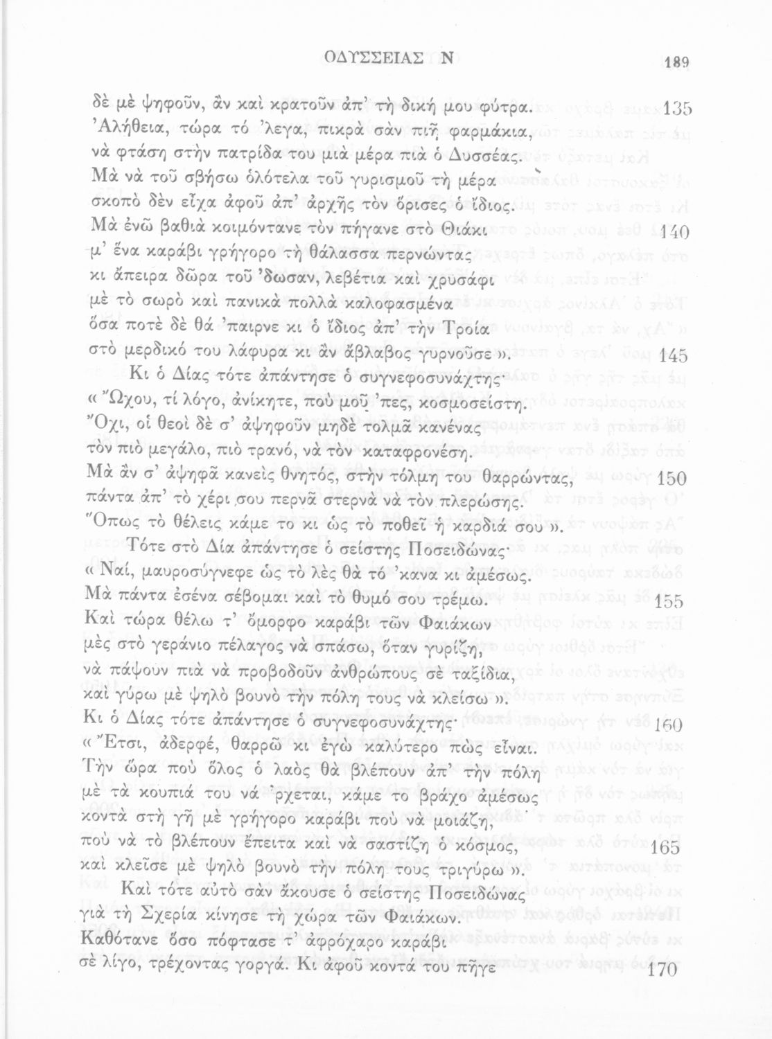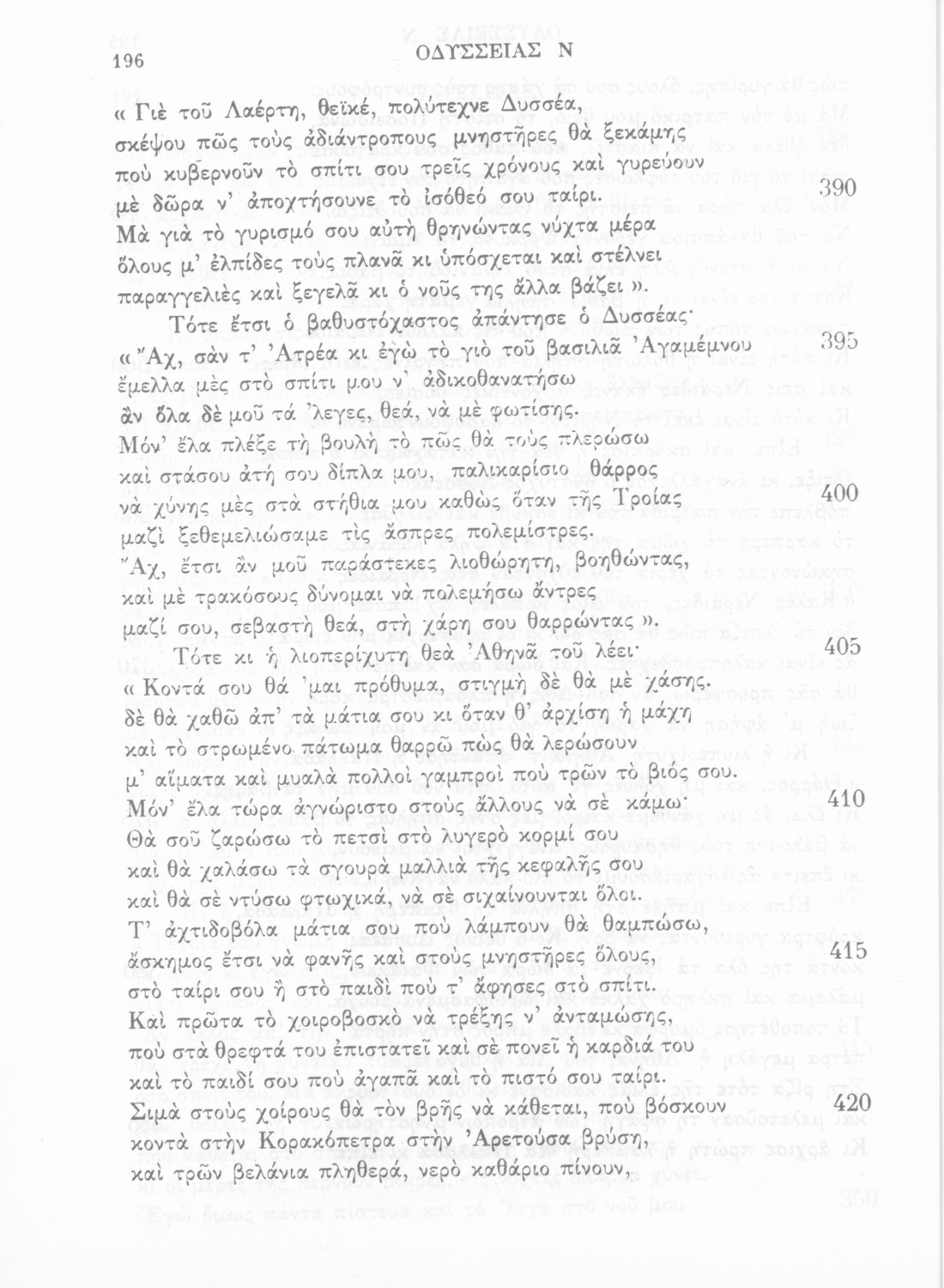 Παιδαγωγικό βοήθημα Αρχαίων Ελληνικών που περιλαμβάνει μετάφραση των ραψωδιών Ν-Ω της Οδύσσειας.