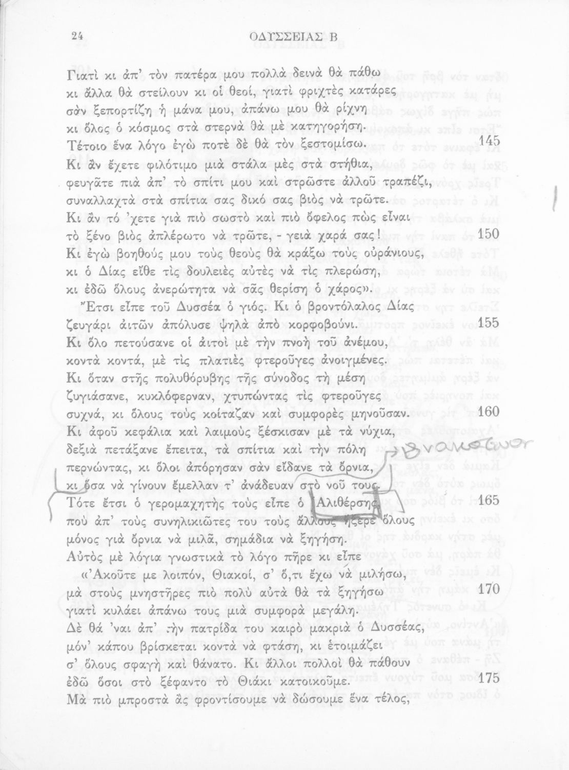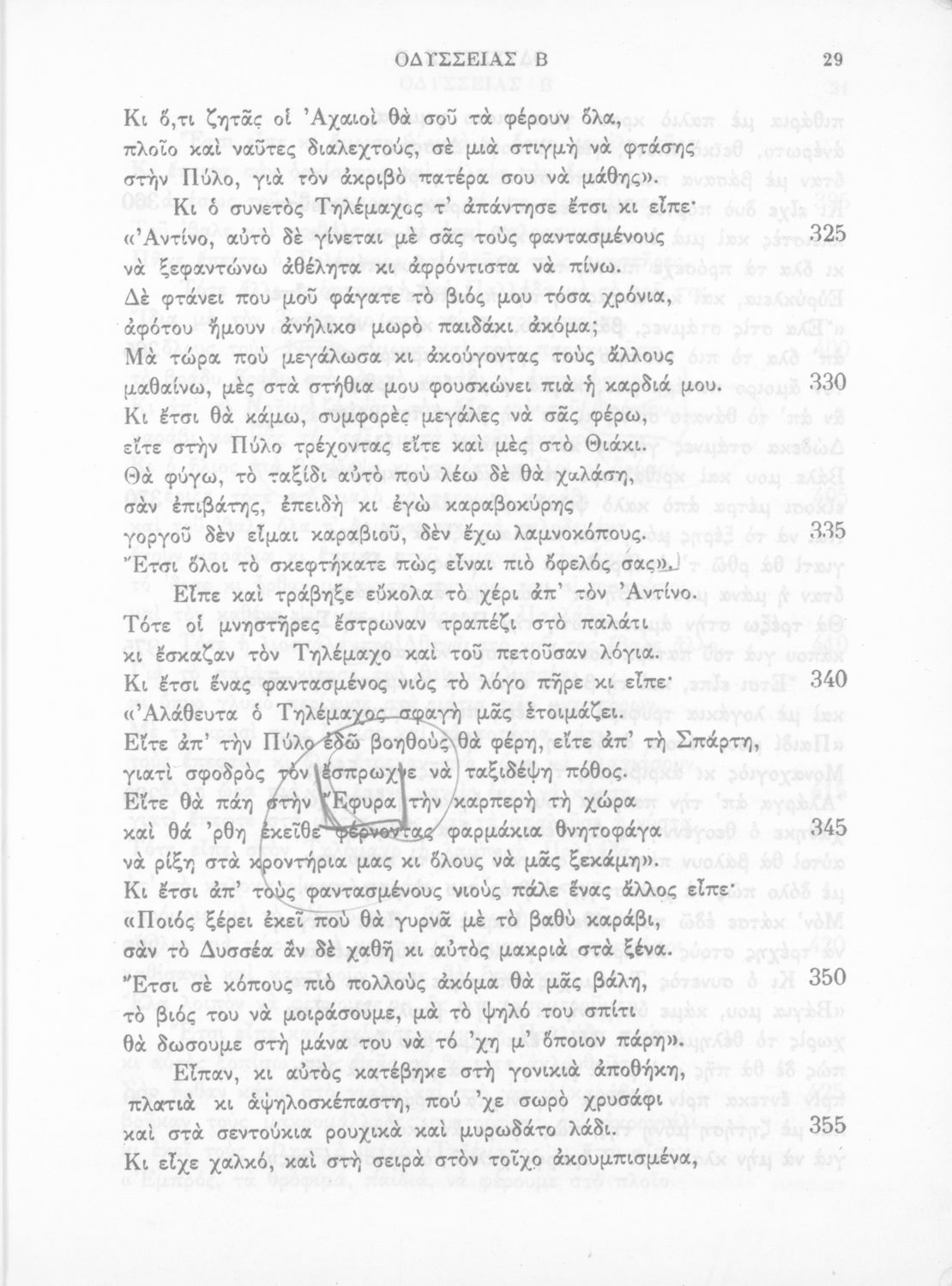 Παιδαγωγικό βοήθημα Αρχαίων Ελληνικών που περιλαμβάνει μετάφραση των ραψωδιών Ν-Ω της Οδύσσειας.
