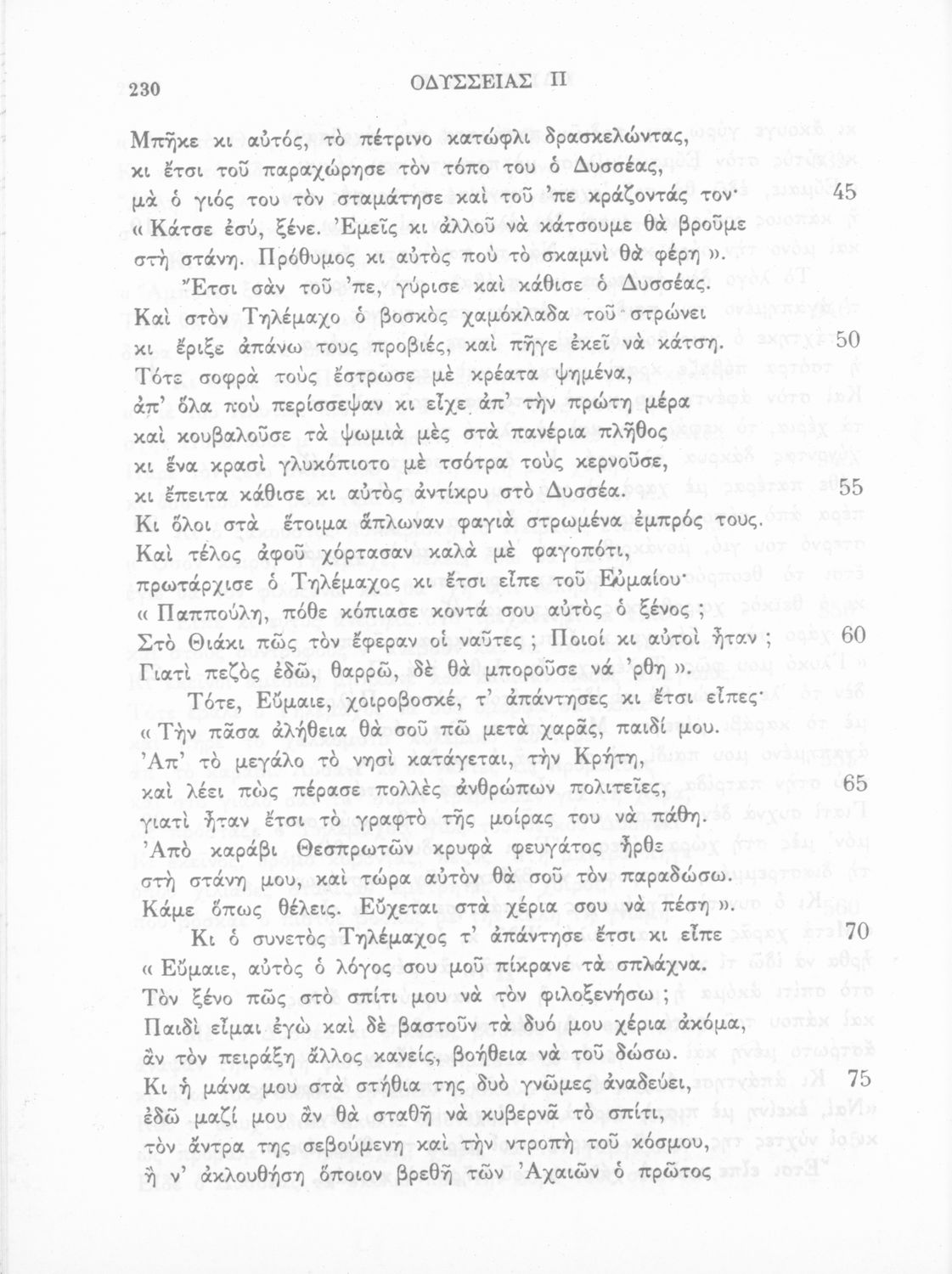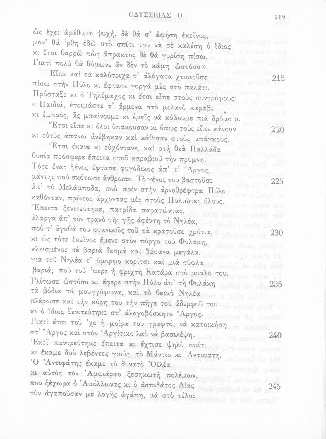 Σχολικό εγχειρίδιο Αρχαίων Ελληνικών. Πρόκειται για "ανάτυπον εμμέτρου μεταφράσεως εκ της σειράς τω ν227 τόμων ΑΡΧΑΙΩΝ ΕΛΛΗΝΩΝ ΣΥΓΓΡΑΦΕΩΝ ιδιοκτησίας του Εκδοτικού Οίκου Ιωάννου Ν. Ζαχαρόπουλου". Το βιβλίο περιλαμβάνει το έπος της Οδύσσειας σε μετάφραση του Ζήσιμου Σιδέρη. Ακολουθεί ενδεικτικό Λεξιλόγιο.