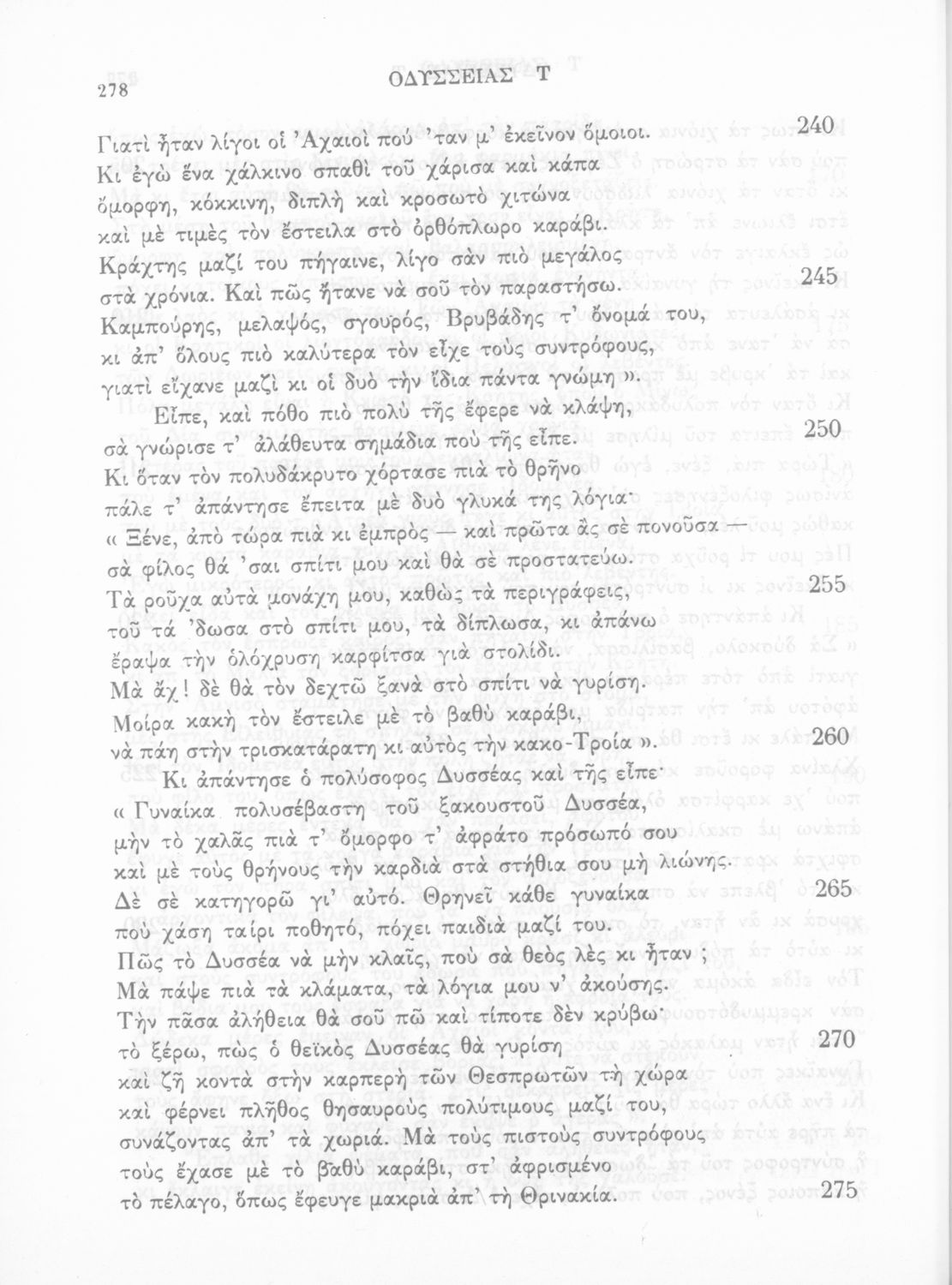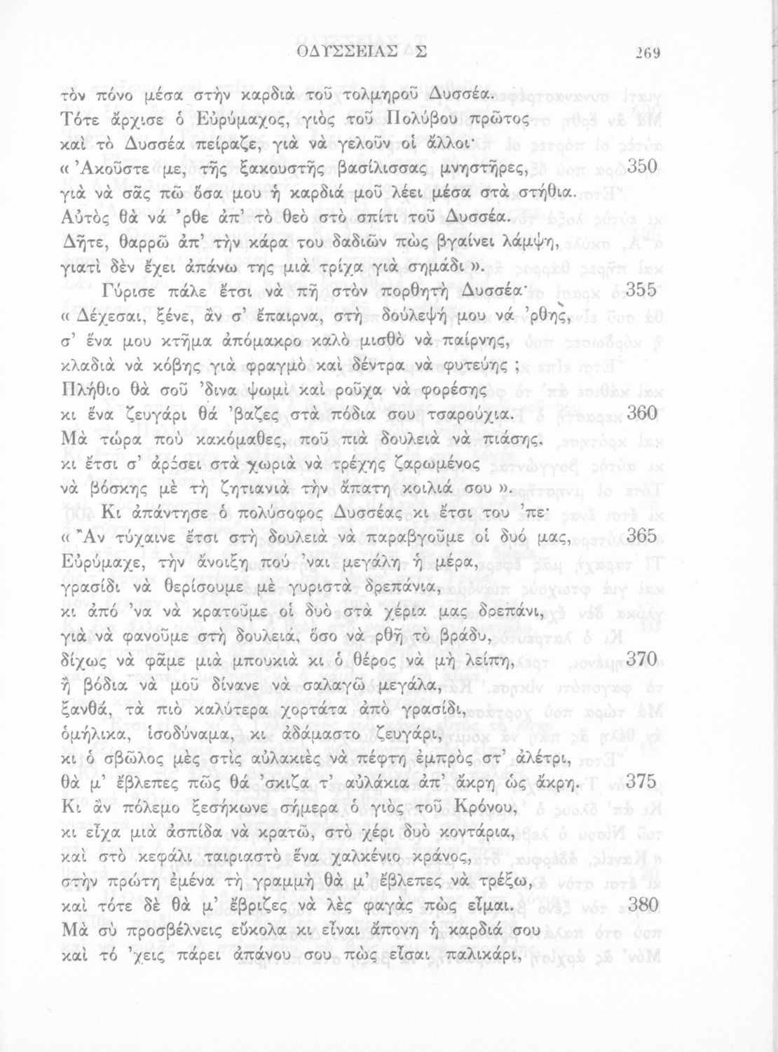 Σχολικό εγχειρίδιο του Γυμνασίου για το μάθημα των Αρχαίων Ελληνικών. Πρόκειται για το κείμενο της Οδύσσειας μεταφρασμένο στο τέλος περιλαμβάνει λεξιλόγιο.