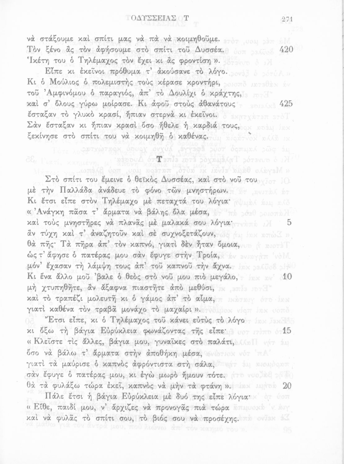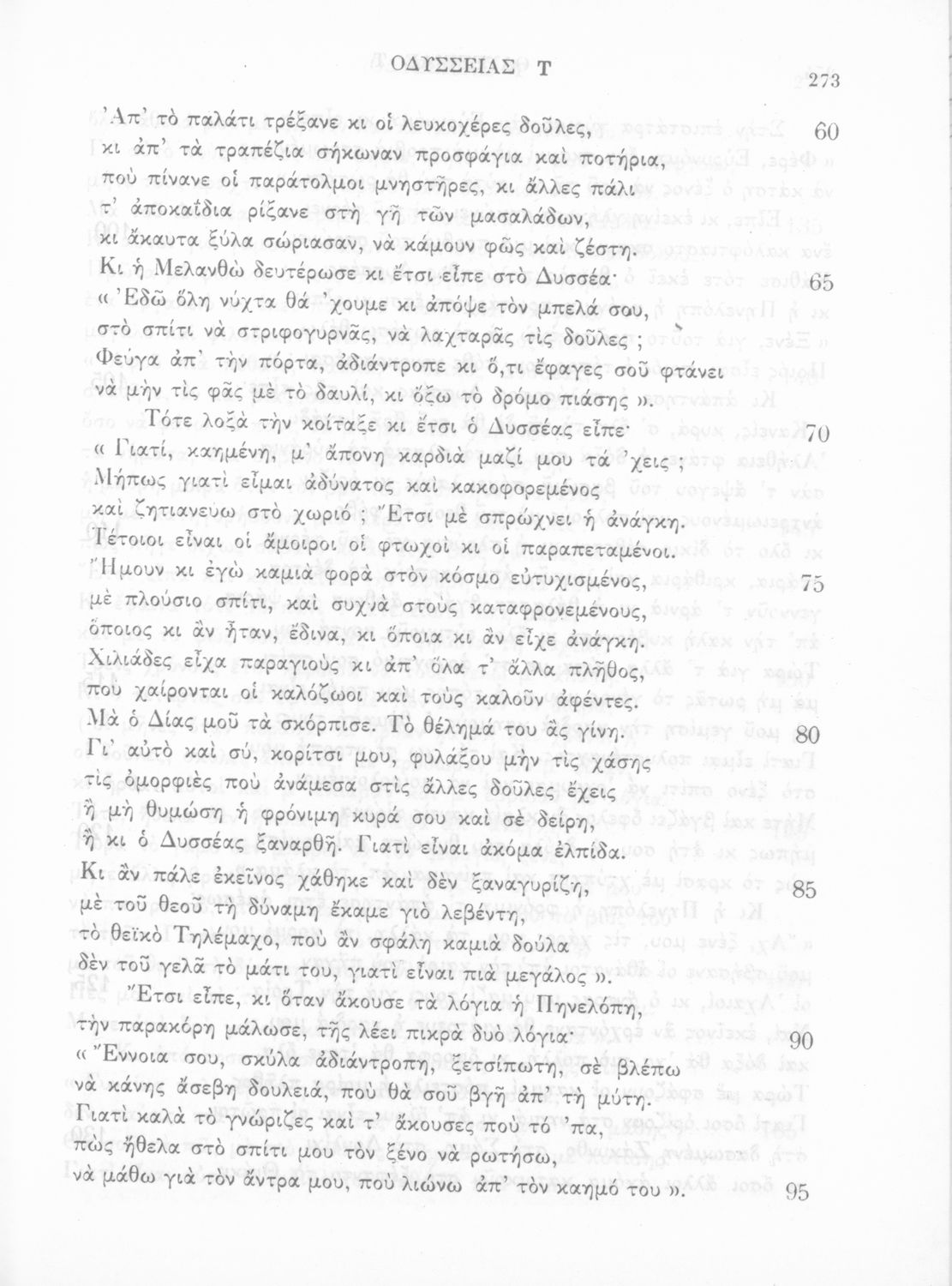 Παιδαγωγικό βοήθημα Αρχαίων Ελληνικών που περιλαμβάνει μετάφραση των ραψωδιών Ν-Ω της Οδύσσειας.