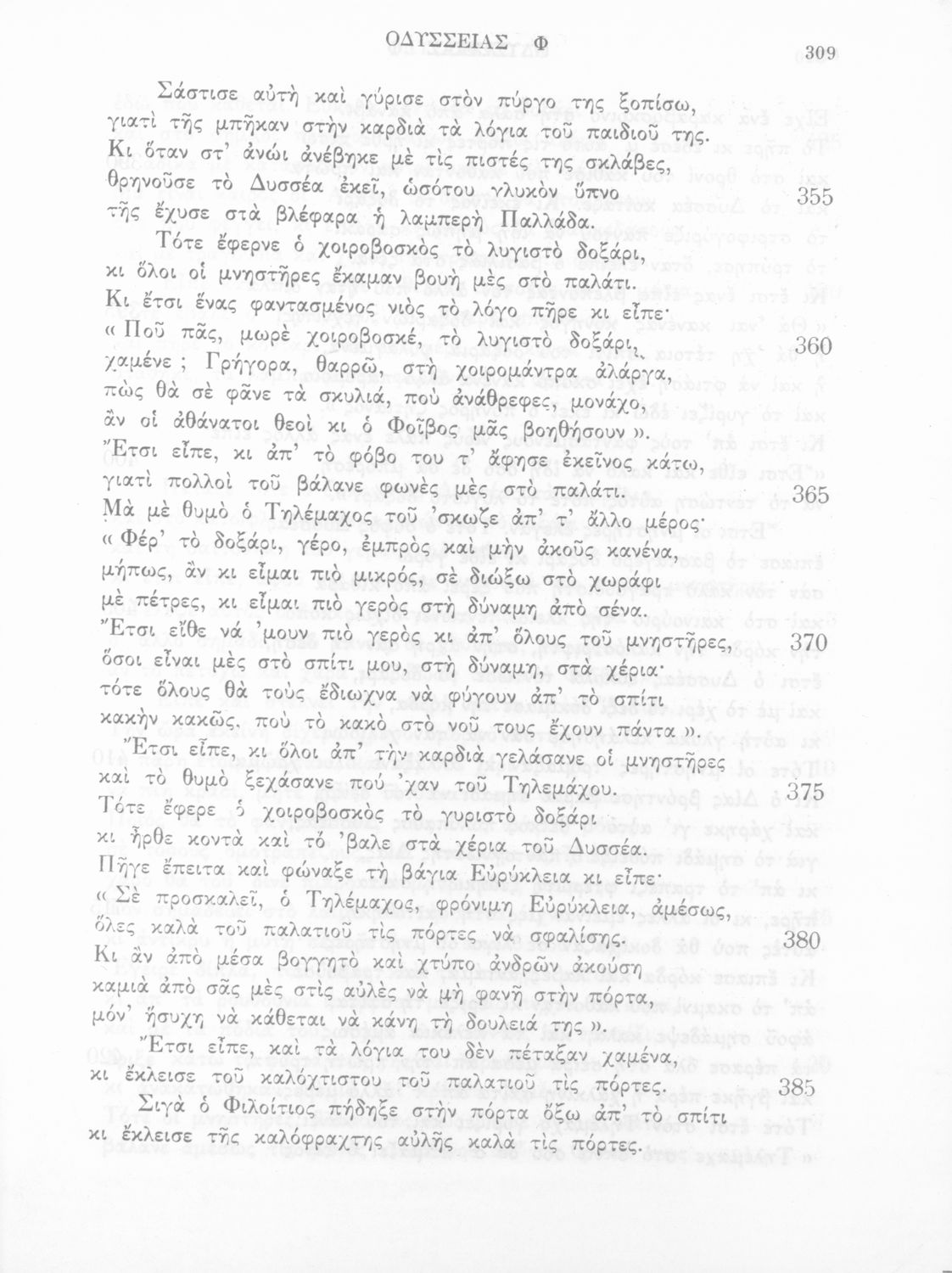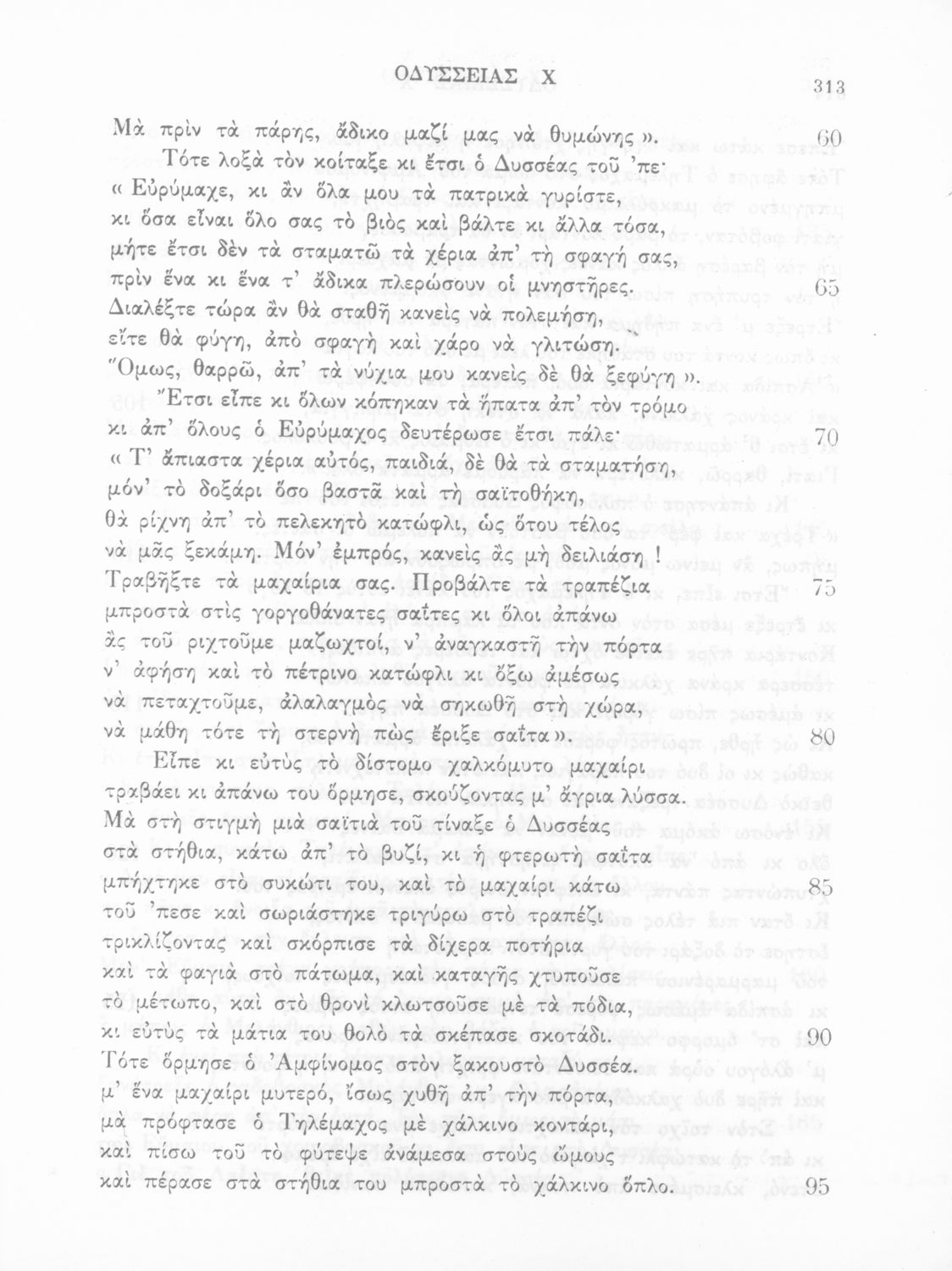 Παιδαγωγικό βοήθημα Αρχαίων Ελληνικών που περιλαμβάνει μετάφραση της Ομήρου Οδύσσειας στη νέα ελληνική, εισαγωγή στην επική ποίηση και στην Οδύσσεια, περιλήψεις και σημειώσεις.