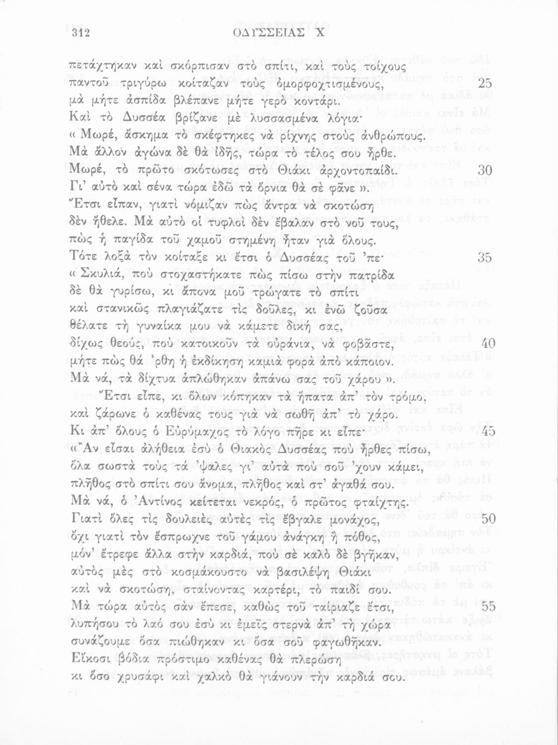Παιδαγωγικό βοήθημα Αρχαίων Ελληνικών που περιλαμβάνει μετάφραση των ραψωδιών Ν-Ω της Οδύσσειας.