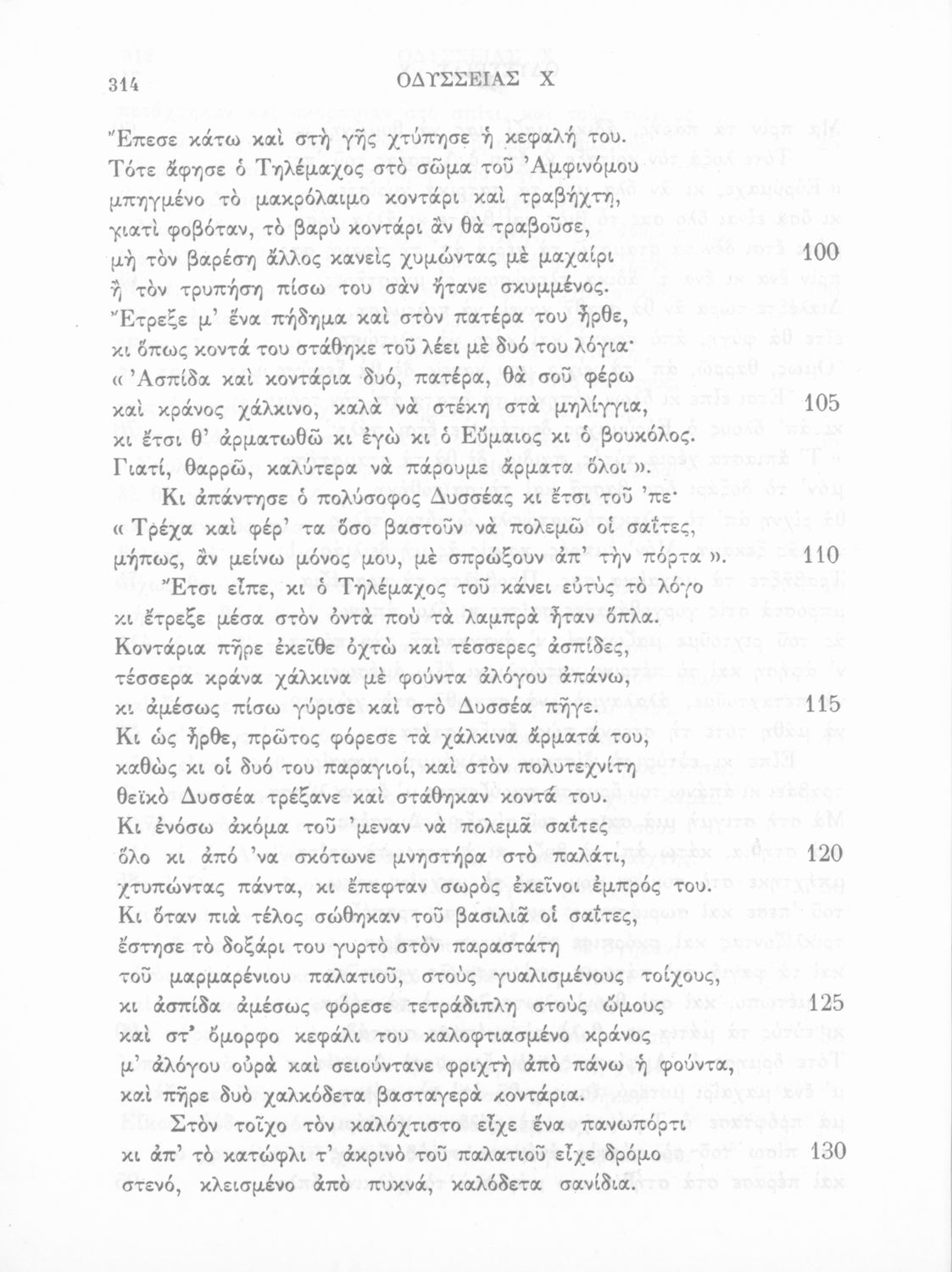Σχολικό εγχειρίδιο του Γυμνασίου για το μάθημα των Αρχαίων Ελληνικών. Πρόκειται για το κείμενο της Οδύσσειας μεταφρασμένο στο τέλος περιλαμβάνει λεξιλόγιο.