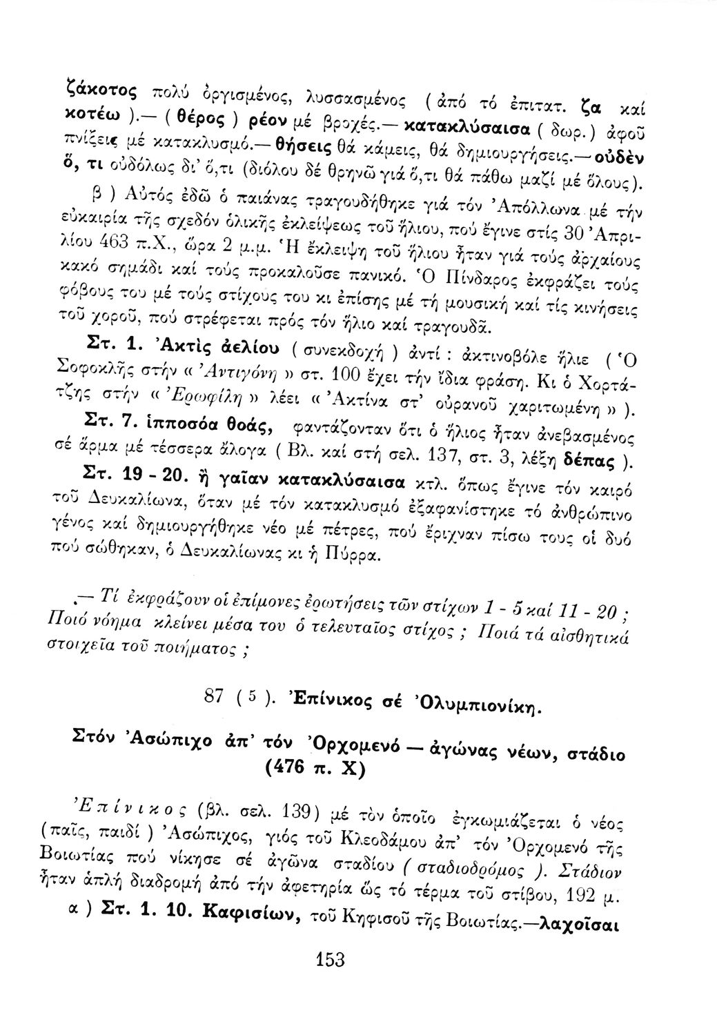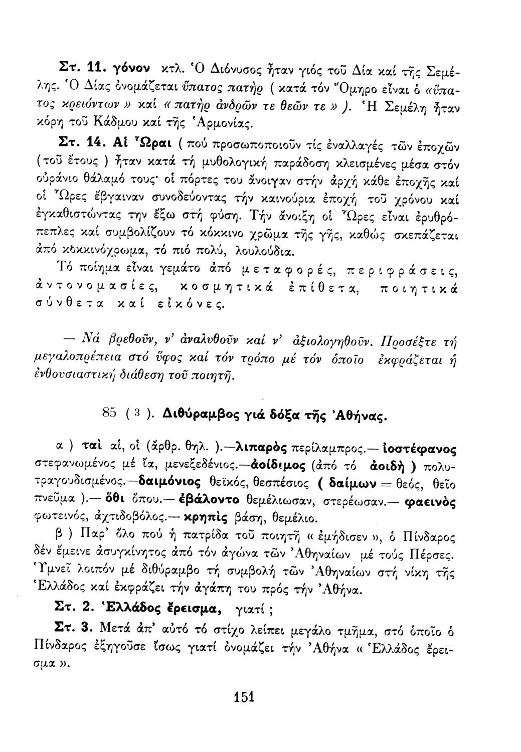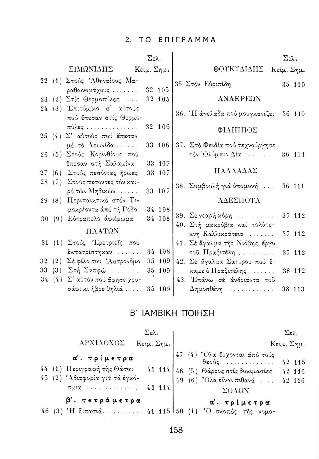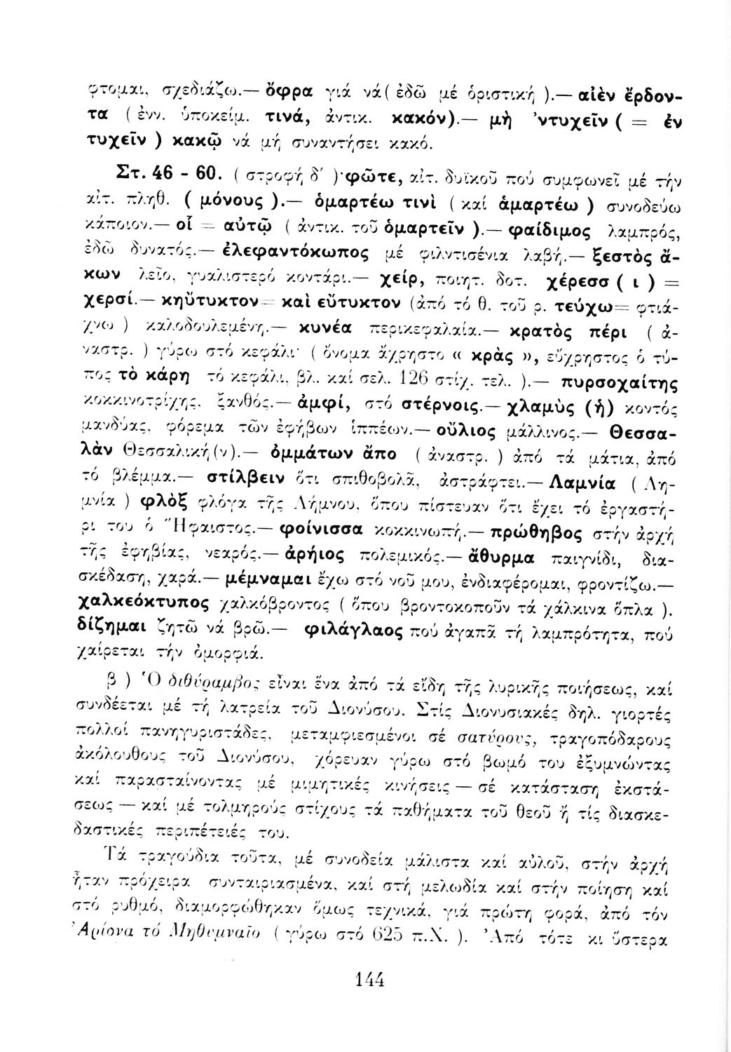 Σχολικό εγχειρίδιο Αρχαίων Ελληνικών Γ΄ Λυκείου που περιλαμβάνει εισαγωγή στη λυρική ποίηση, έργα αρχαίων Ελλήνων ποιητών, ερμηνευτικά και πραγματολογικά σχόλια, και λεξιλογικές παρατηρήσεις. Η εισαγωγή, τα σημειώματα και οι ερμηνευτικές σημειώσεις μεταγλωττίστηκαν από τον επ. Γεν. Επιθεωρητή Μ.Ε. Δορμπαράκη.