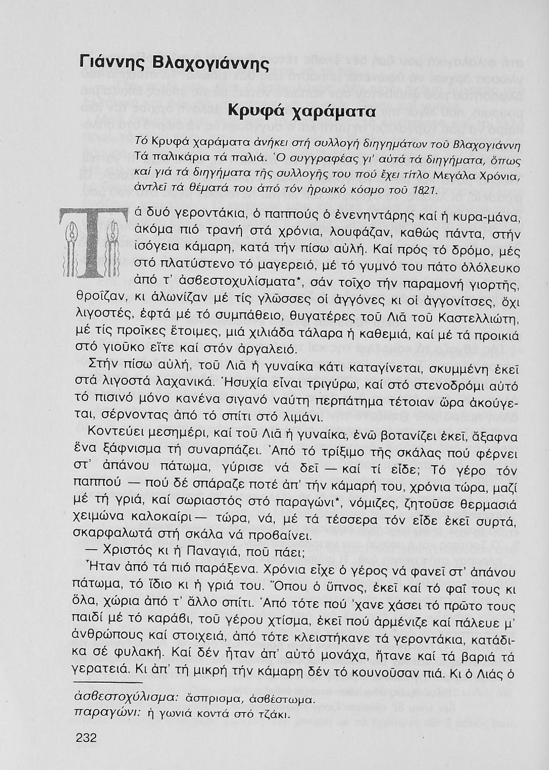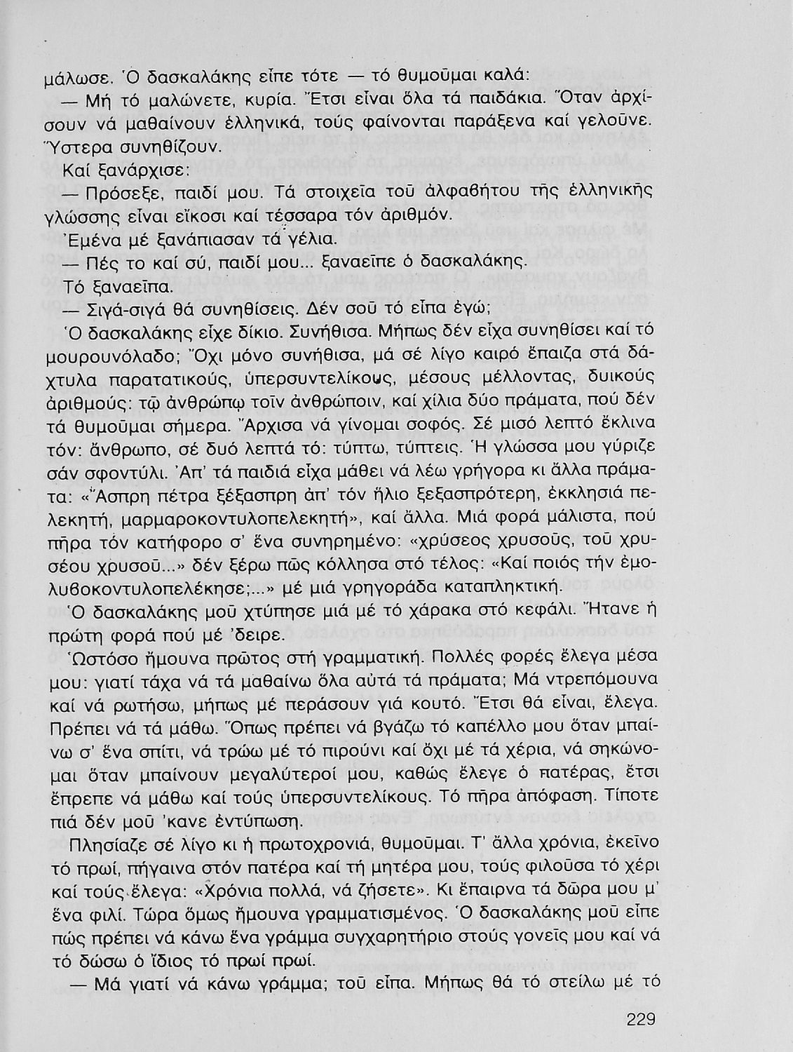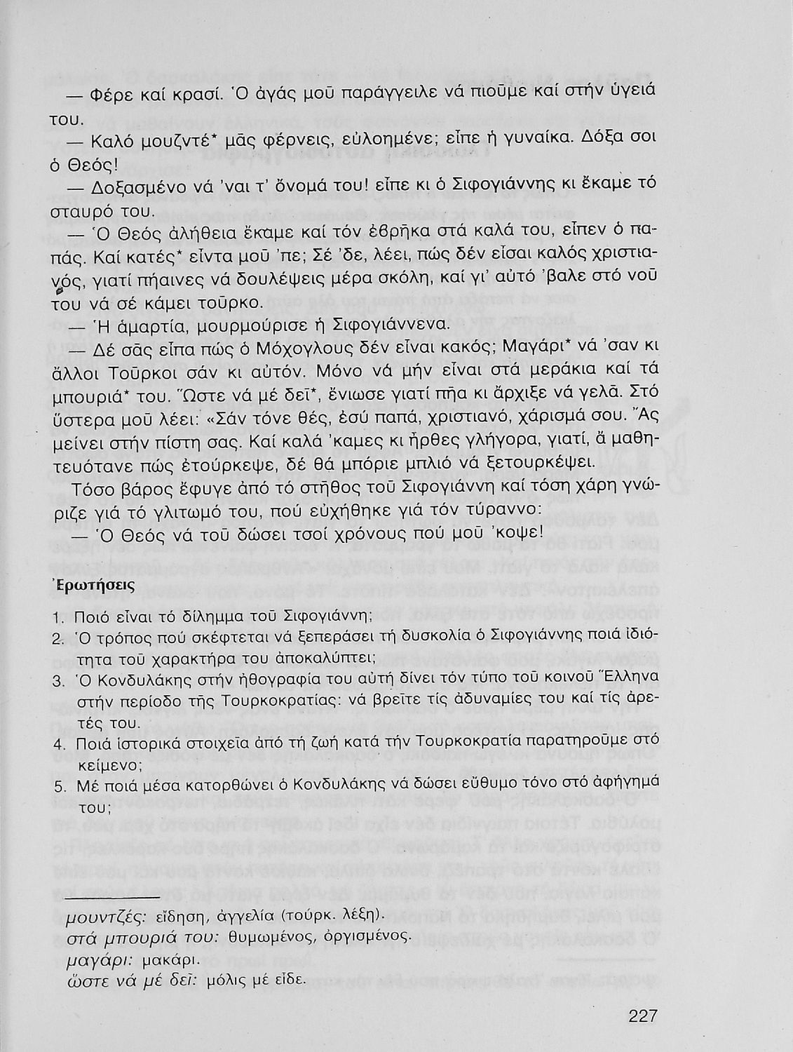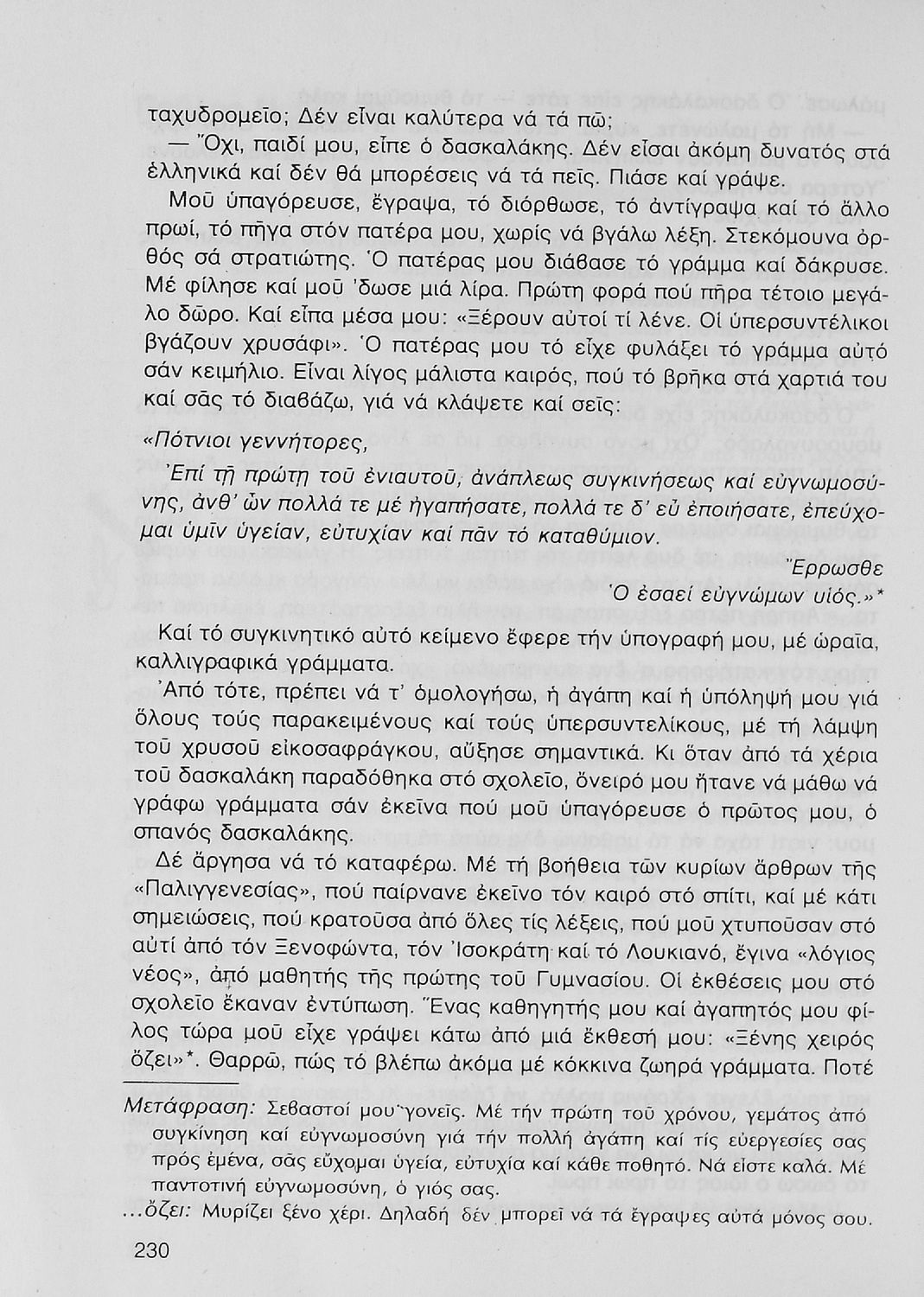 Σχολικό εγχειρίδιο Νέων Ελληνικών Γ΄ Γυμνασίου που περιλαμβάνει δημοτικά τραγούδια, και χαρακτηριστικά δείγματα της κρητικής λογοτεχνίας, της επτανησιακής και ρομαντικής σχολής, της Νέας Αθηναϊκής Σχολής και της νεότερης και μεταπολεμικής λογοτεχνίας. Περιέχει και έργα σύγχρονων ξένων συγγραφέων, βιογραφικά και εισαγωγικά σημειώματα.