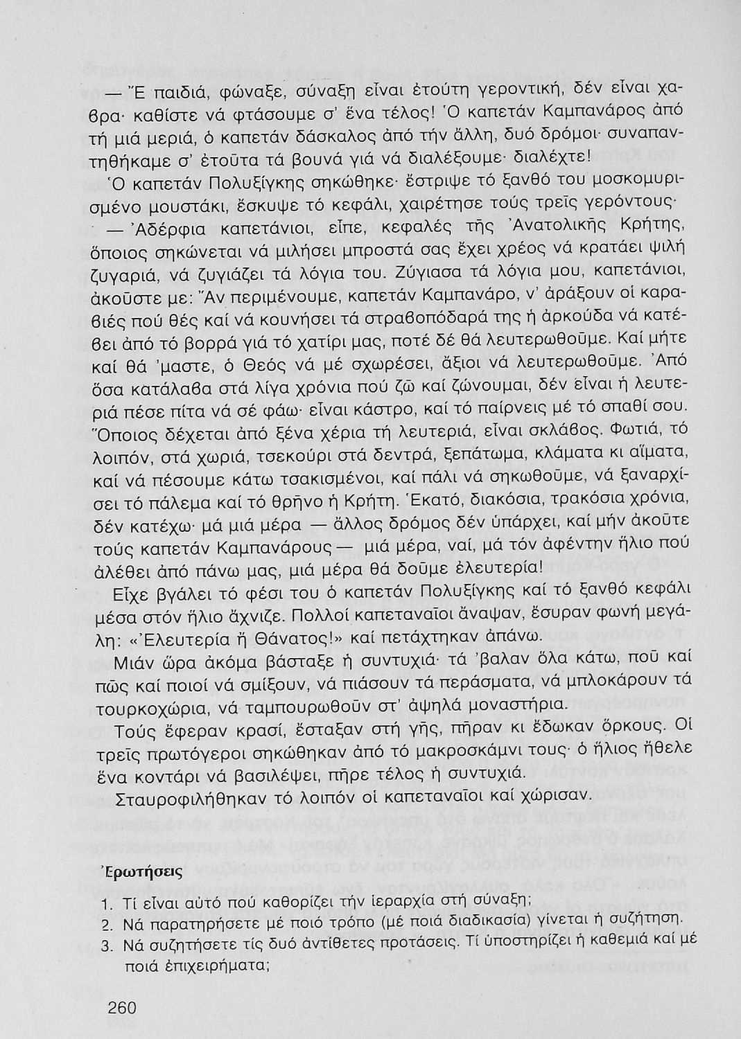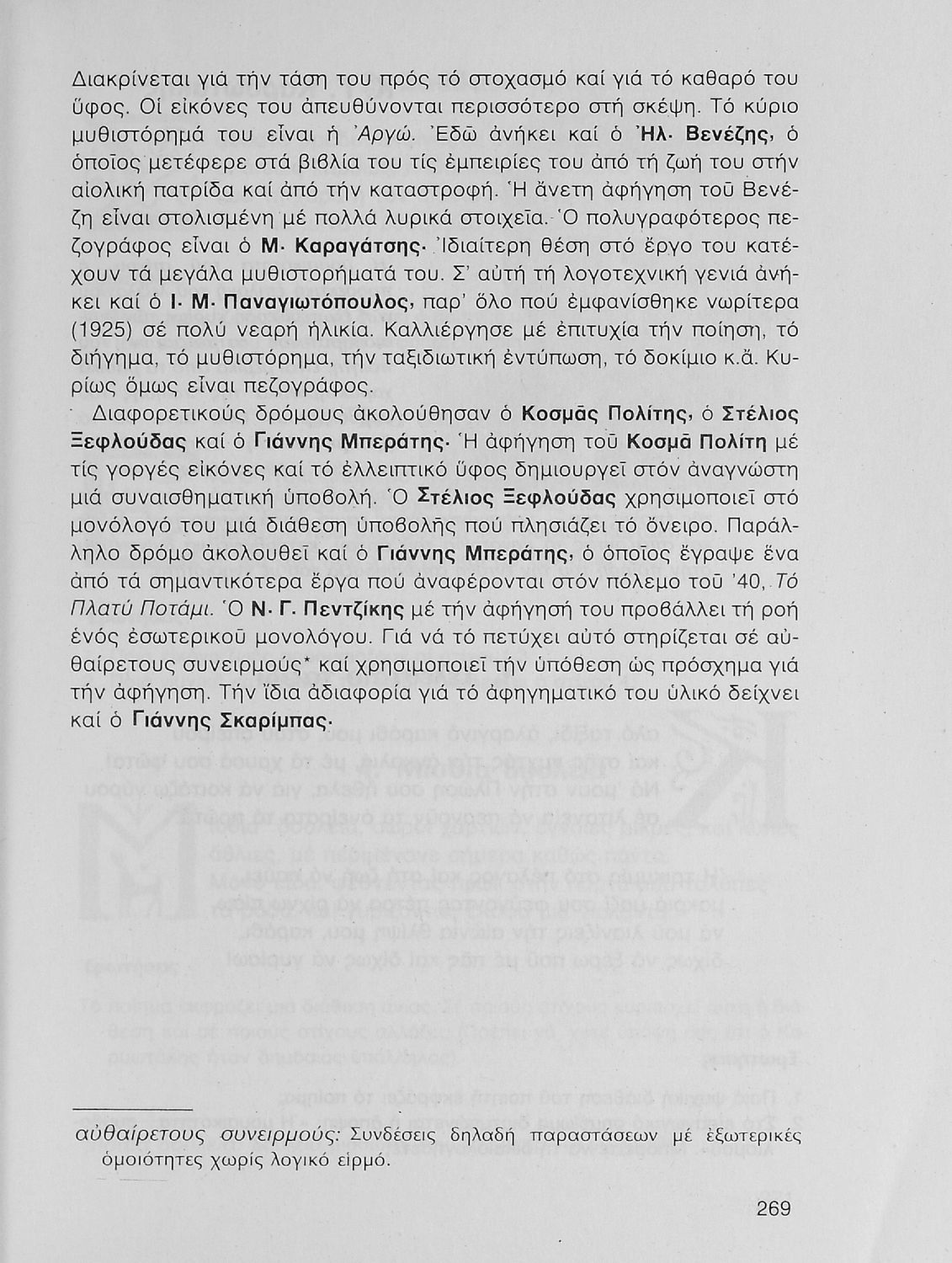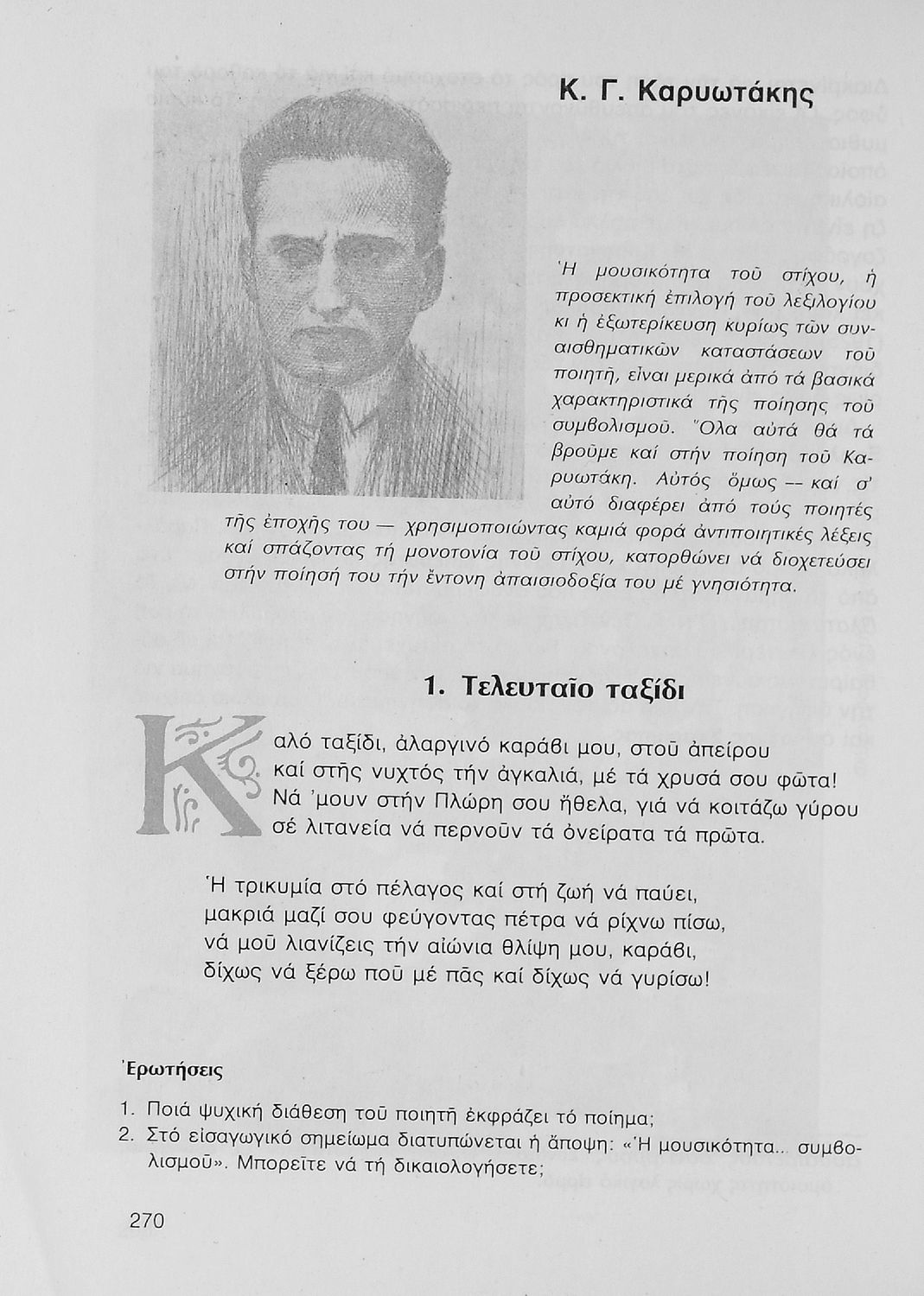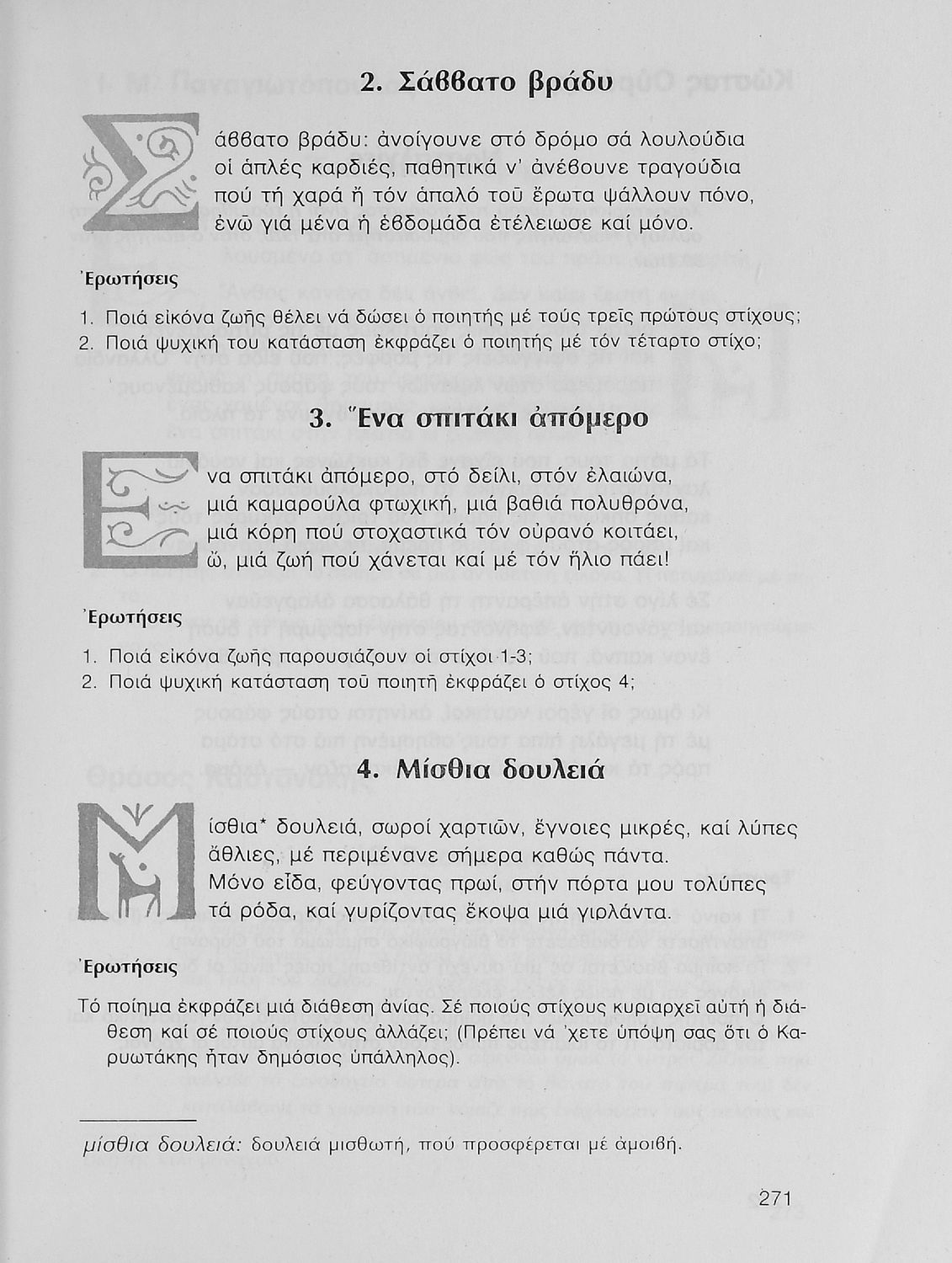 Σχολικό εγχειρίδιο Νέων Ελληνικών Γ΄ Γυμνασίου που περιλαμβάνει δημοτικά τραγούδια, και χαρακτηριστικά δείγματα της κρητικής λογοτεχνίας, της επτανησιακής και ρομαντικής σχολής, της Νέας Αθηναϊκής Σχολής και της νεότερης και μεταπολεμικής λογοτεχνίας. Περιέχει και έργα σύγχρονων ξένων συγγραφέων, βιογραφικά και εισαγωγικά σημειώματα.