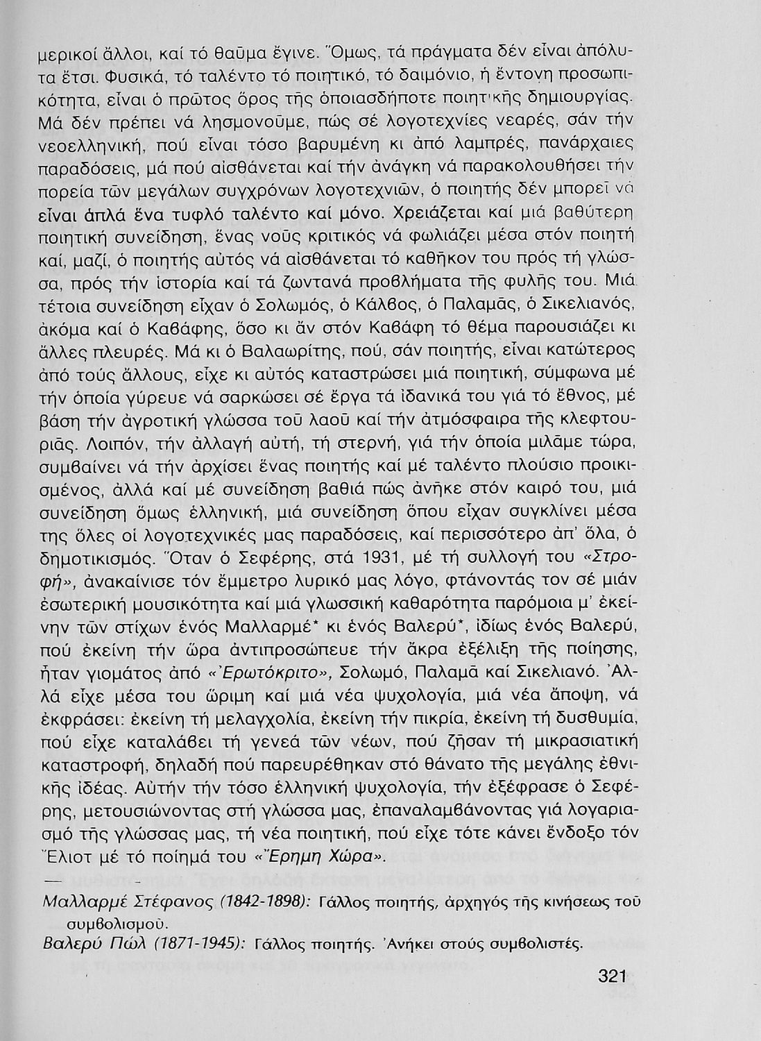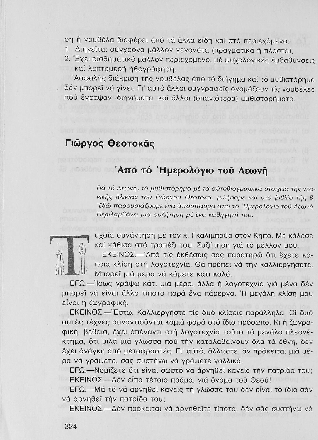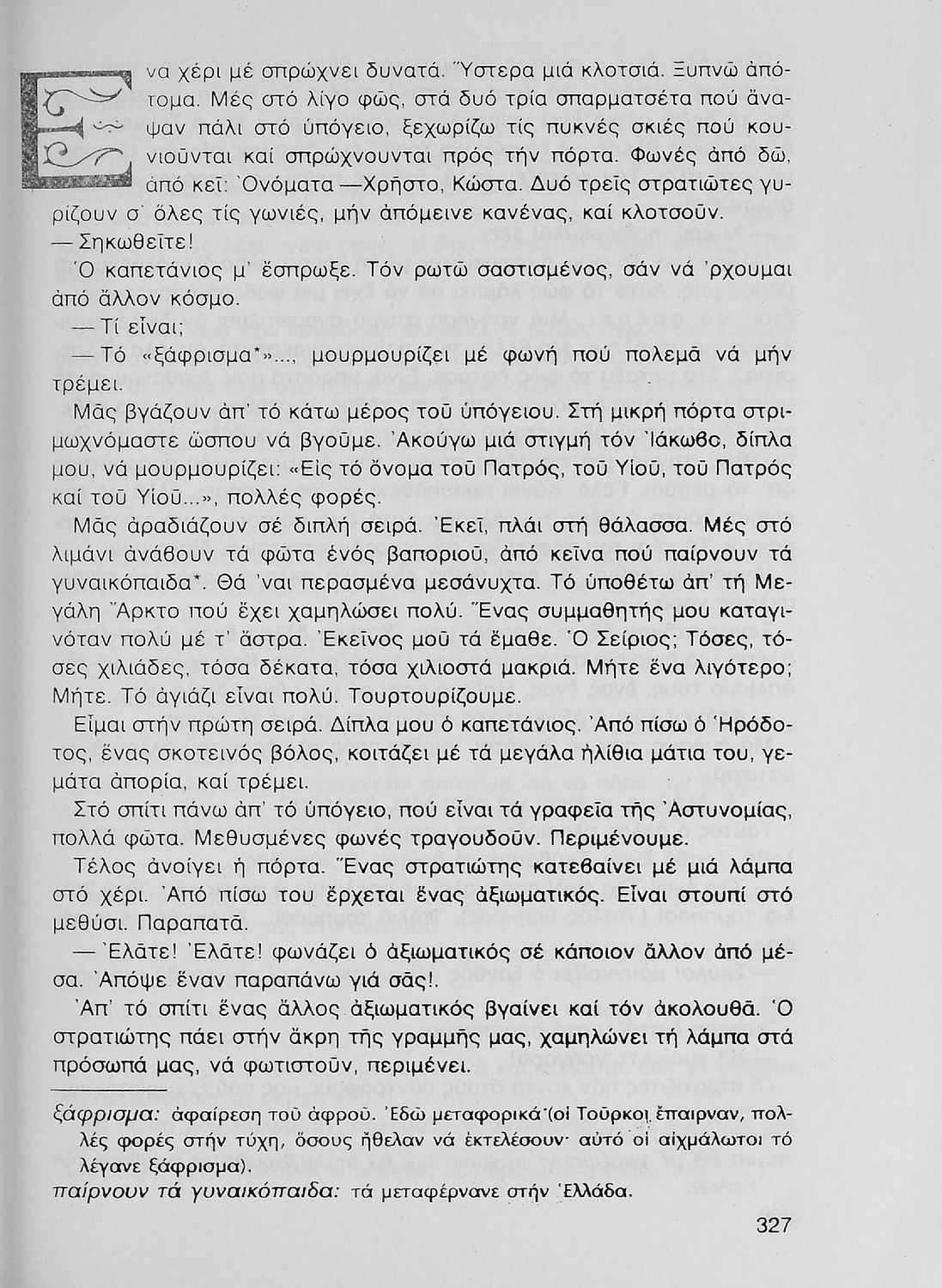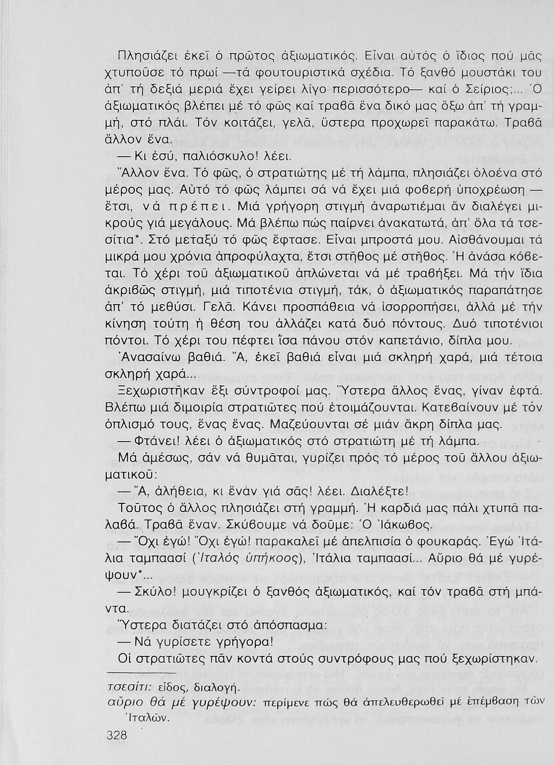 Σχολικό εγχειρίδιο Νέων Ελληνικών Γ΄ Γυμνασίου που περιλαμβάνει δημοτικά τραγούδια, και χαρακτηριστικά δείγματα της κρητικής λογοτεχνίας, της επτανησιακής και ρομαντικής σχολής, της Νέας Αθηναϊκής Σχολής και της νεότερης και μεταπολεμικής λογοτεχνίας. Περιέχει και έργα σύγχρονων ξένων συγγραφέων, βιογραφικά και εισαγωγικά σημειώματα.
