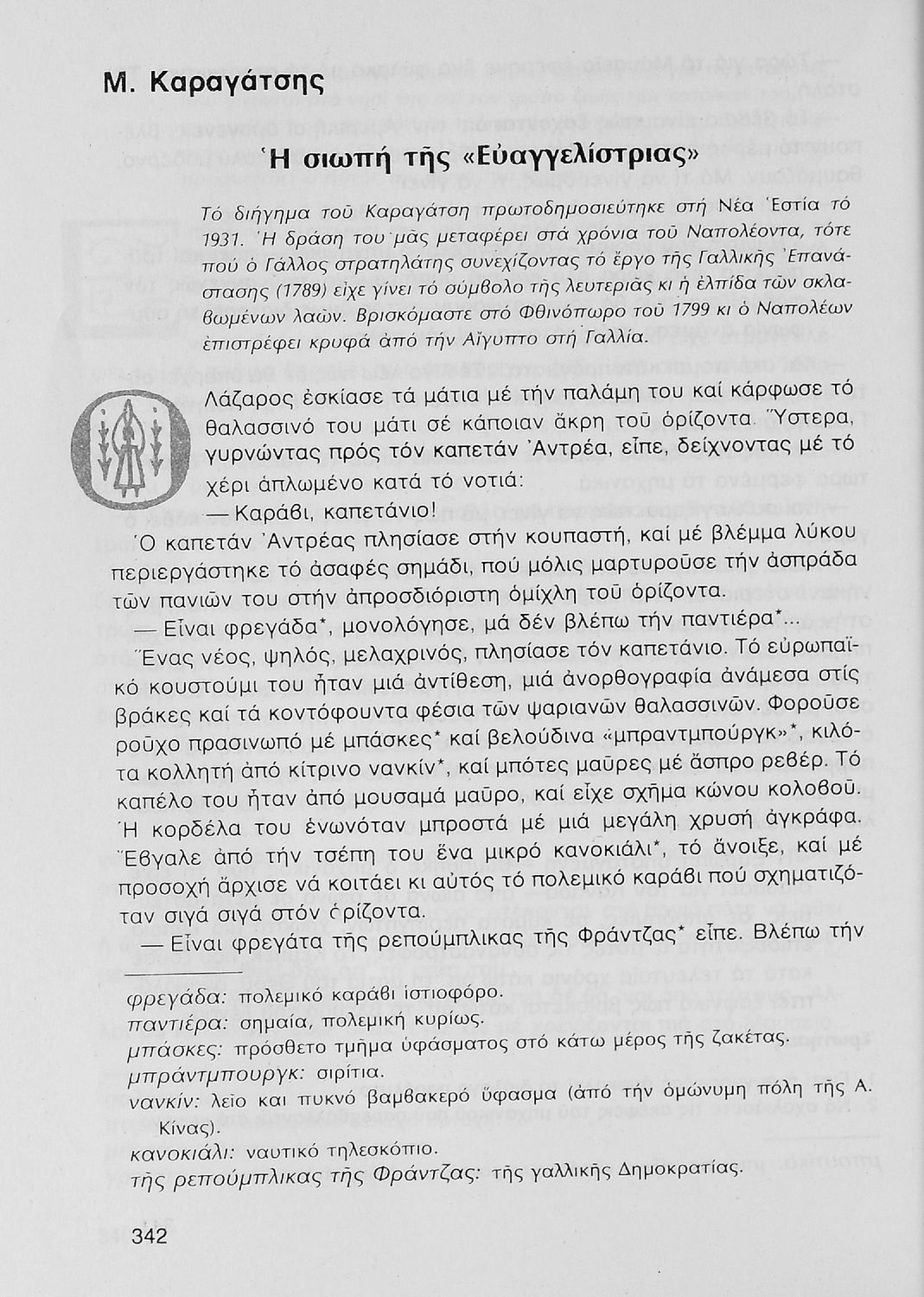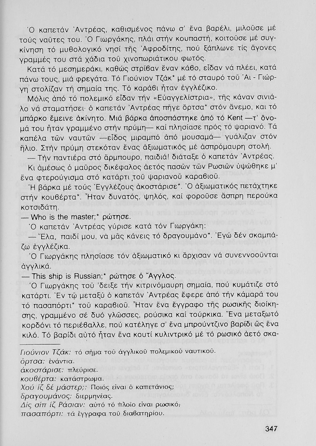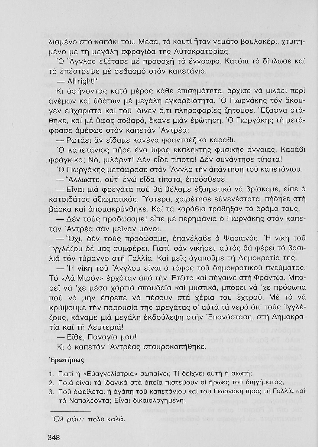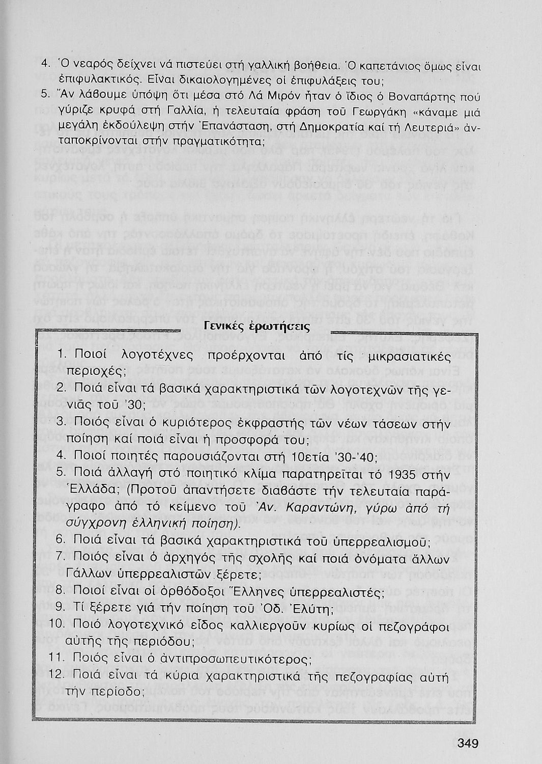 Σχολικό εγχειρίδιο Νέων Ελληνικών Γ΄ Γυμνασίου που περιλαμβάνει δημοτικά τραγούδια, και χαρακτηριστικά δείγματα της κρητικής λογοτεχνίας, της επτανησιακής και ρομαντικής σχολής, της Νέας Αθηναϊκής Σχολής και της νεότερης και μεταπολεμικής λογοτεχνίας. Περιέχει και έργα σύγχρονων ξένων συγγραφέων, βιογραφικά και εισαγωγικά σημειώματα.