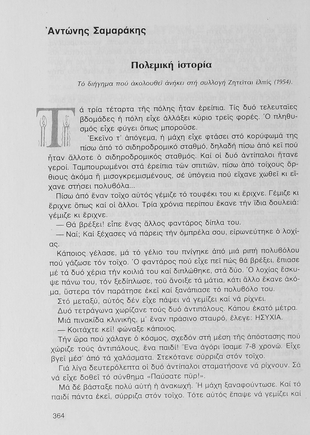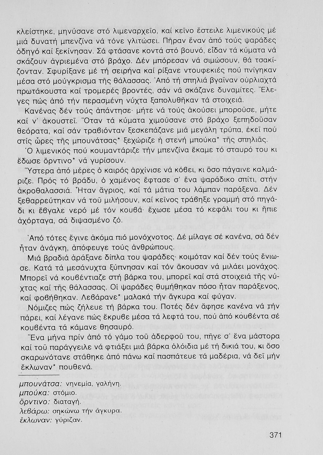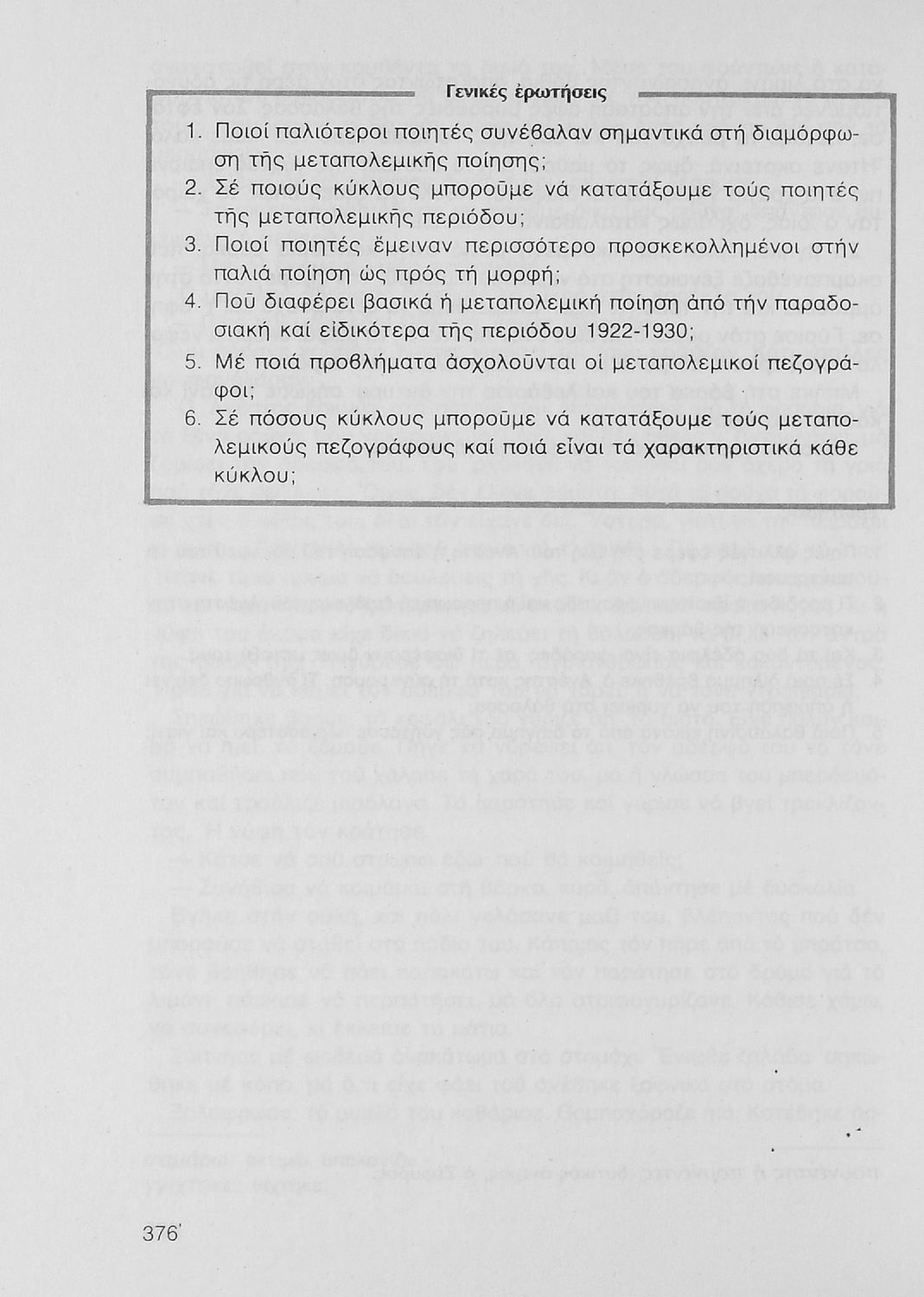 Σχολικό εγχειρίδιο Νέων Ελληνικών Γ΄ Γυμνασίου που περιλαμβάνει δημοτικά τραγούδια, και χαρακτηριστικά δείγματα της κρητικής λογοτεχνίας, της επτανησιακής και ρομαντικής σχολής, της Νέας Αθηναϊκής Σχολής και της νεότερης και μεταπολεμικής λογοτεχνίας. Περιέχει και έργα σύγχρονων ξένων συγγραφέων, βιογραφικά και εισαγωγικά σημειώματα.