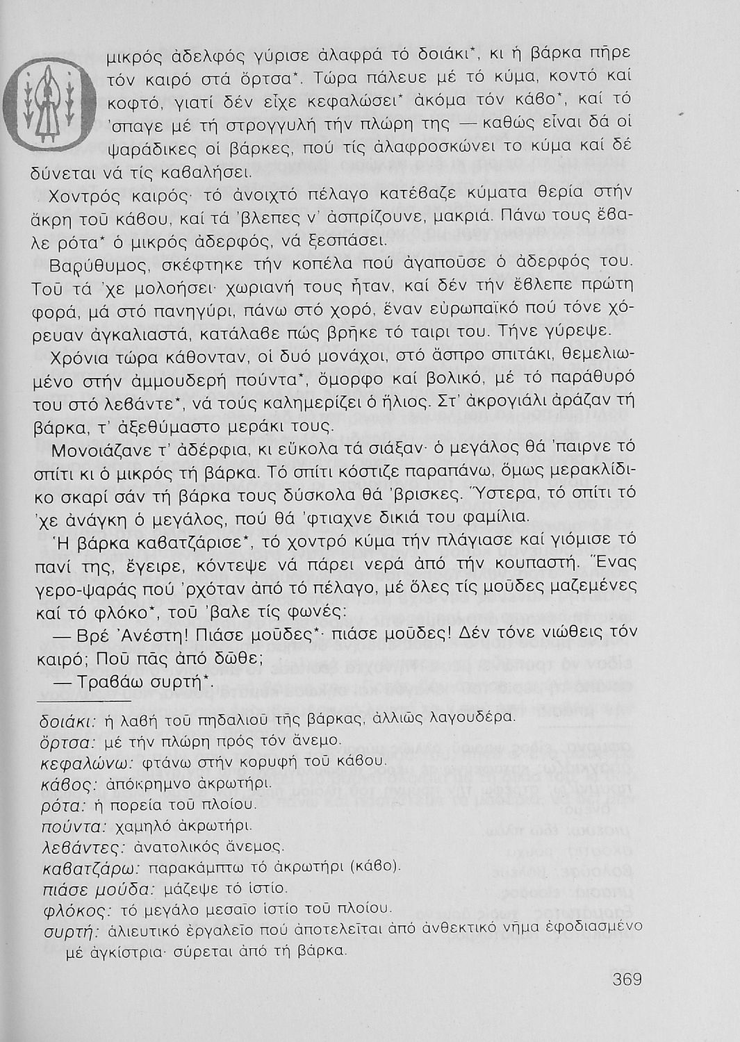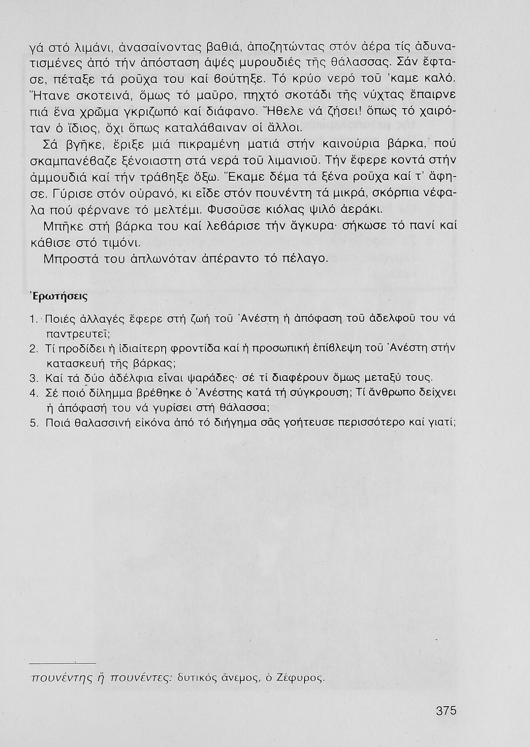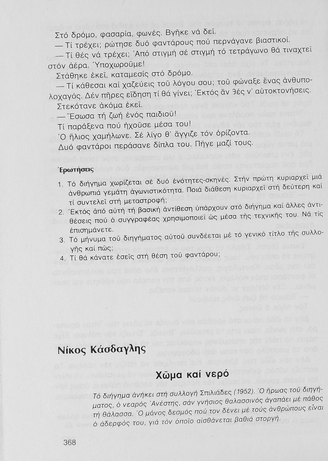 Σχολικό εγχειρίδιο Νέων Ελληνικών Α΄ Γυμνασίου που περιλαμβάνει δοκίμια, πεζά και ποιήματα Ελλήνων συγγραφέων και δημοτικά τραγούδια εμπνευσμένα από τη θρησκευτική, εθνική και κοινωνική ζωή, τη "δοκιμασία της ...
