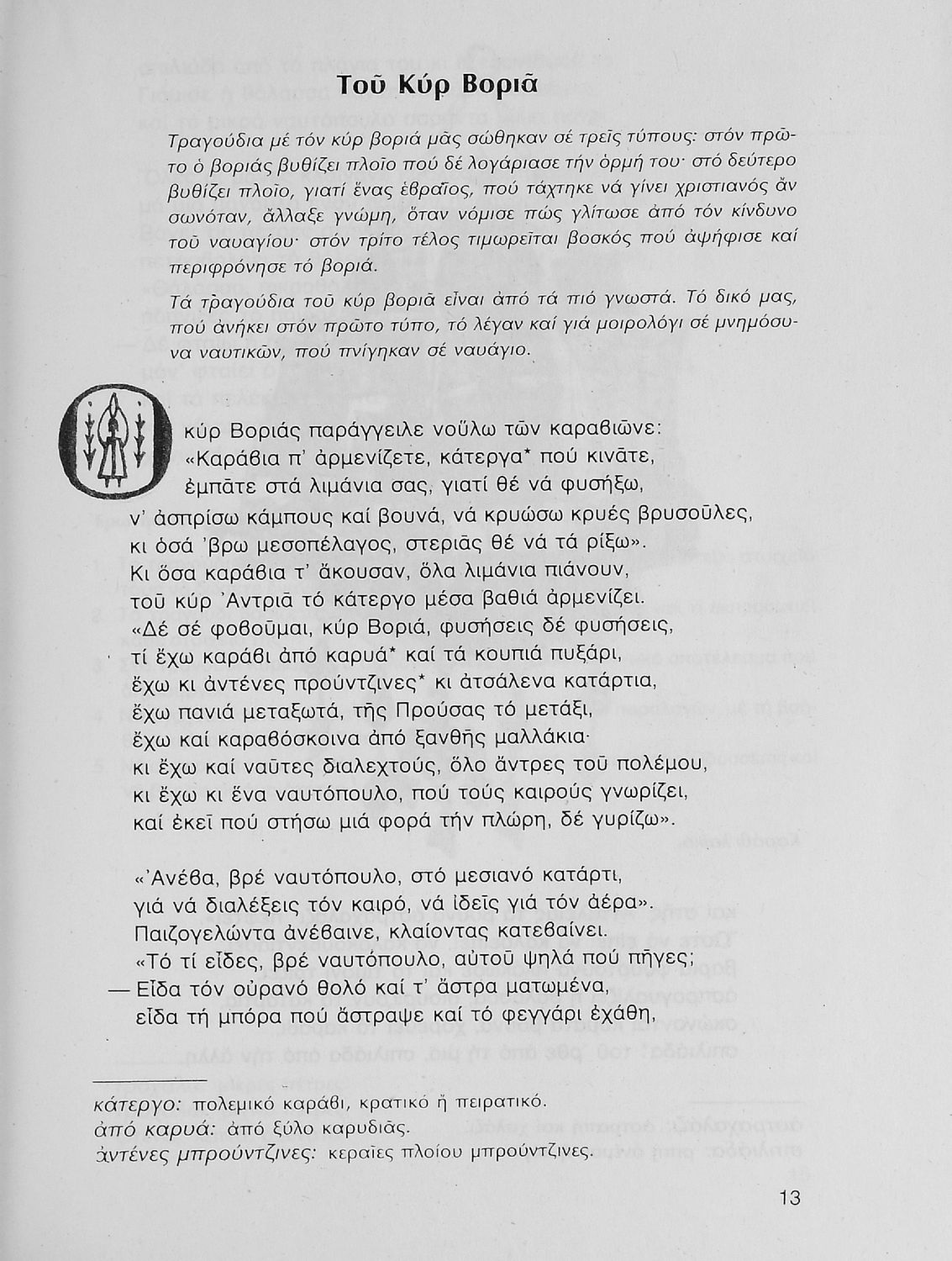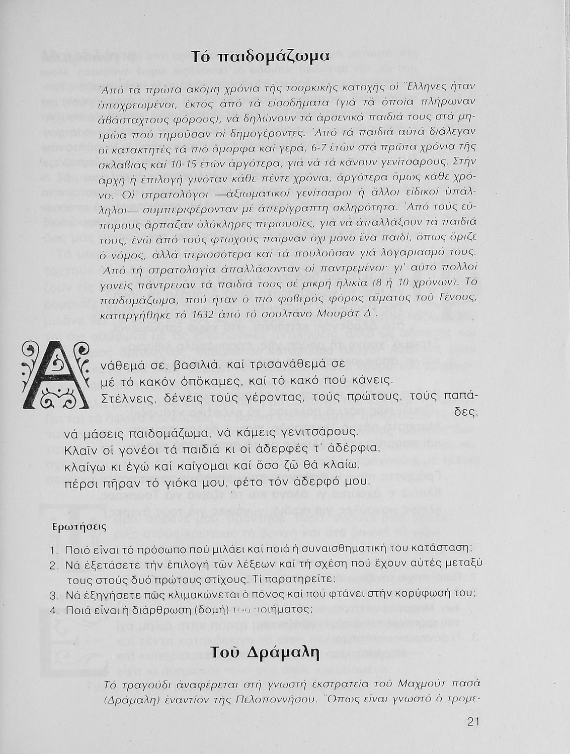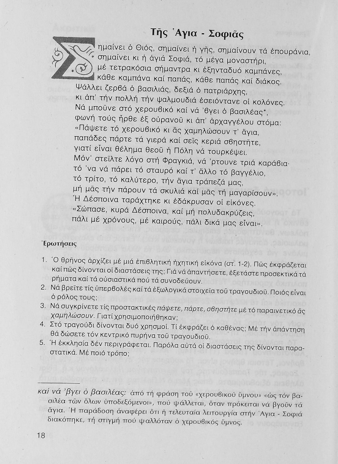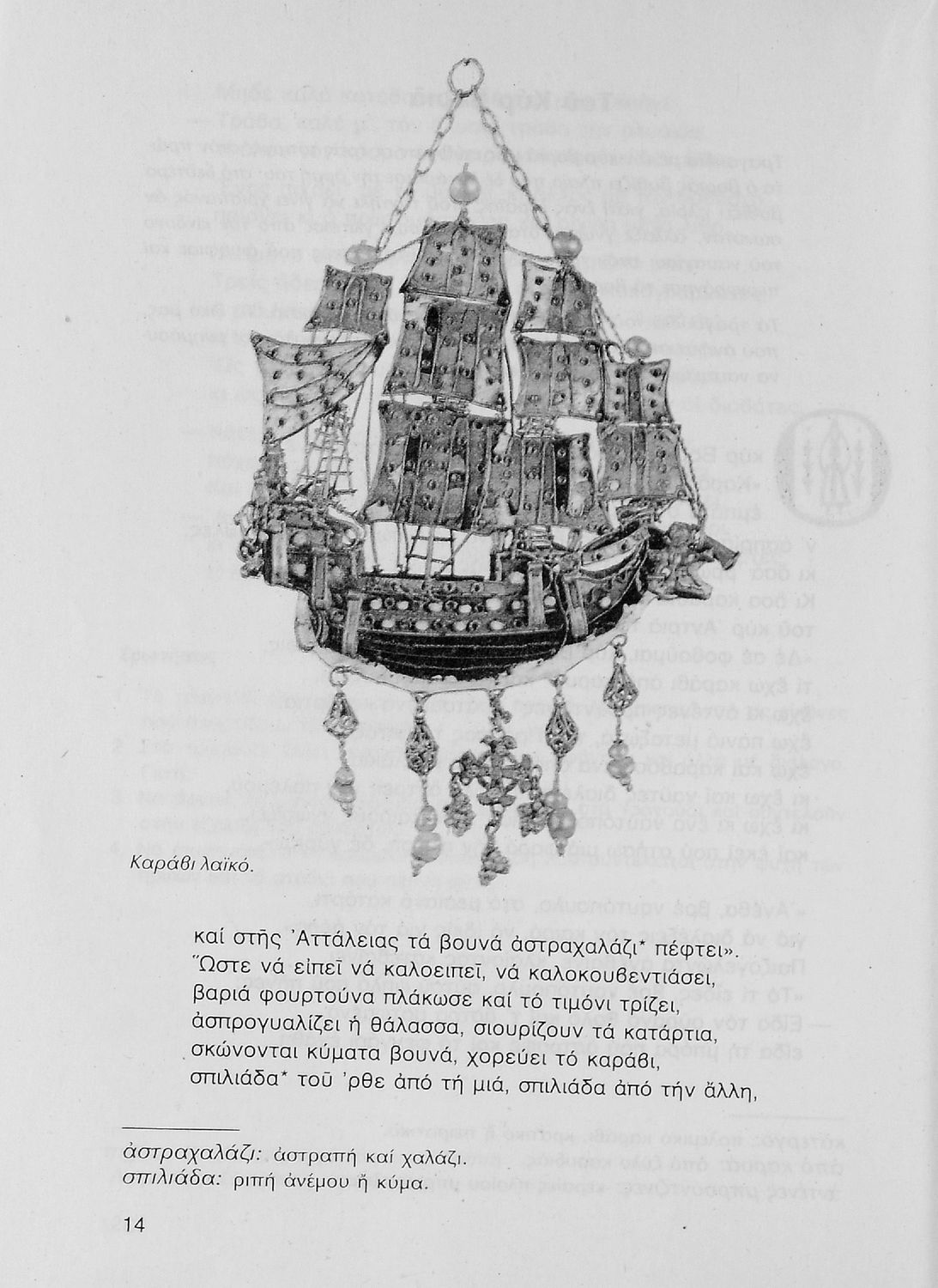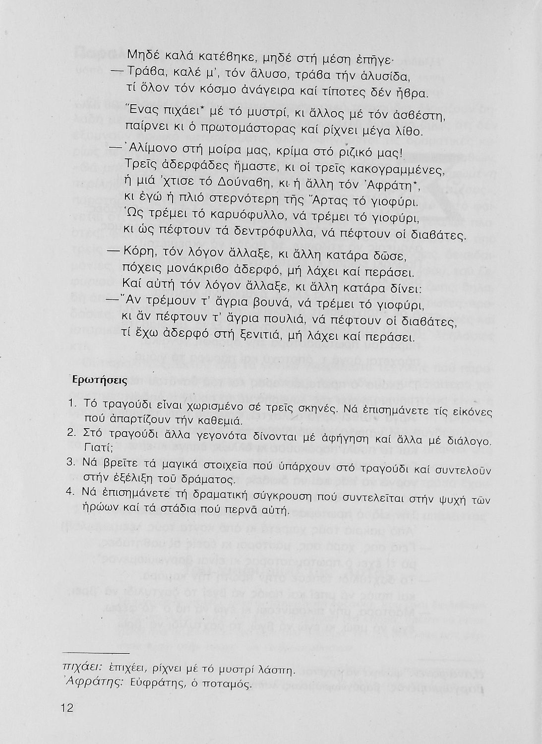 Σχολικό εγχειρίδιο Νέων Ελληνικών Γ΄ Γυμνασίου που περιλαμβάνει δημοτικά τραγούδια, και χαρακτηριστικά δείγματα της κρητικής λογοτεχνίας, της επτανησιακής και ρομαντικής σχολής, της Νέας Αθηναϊκής Σχολής και της νεότερης και μεταπολεμικής λογοτεχνίας. Περιέχει και έργα σύγχρονων ξένων συγγραφέων, βιογραφικά και εισαγωγικά σημειώματα.
