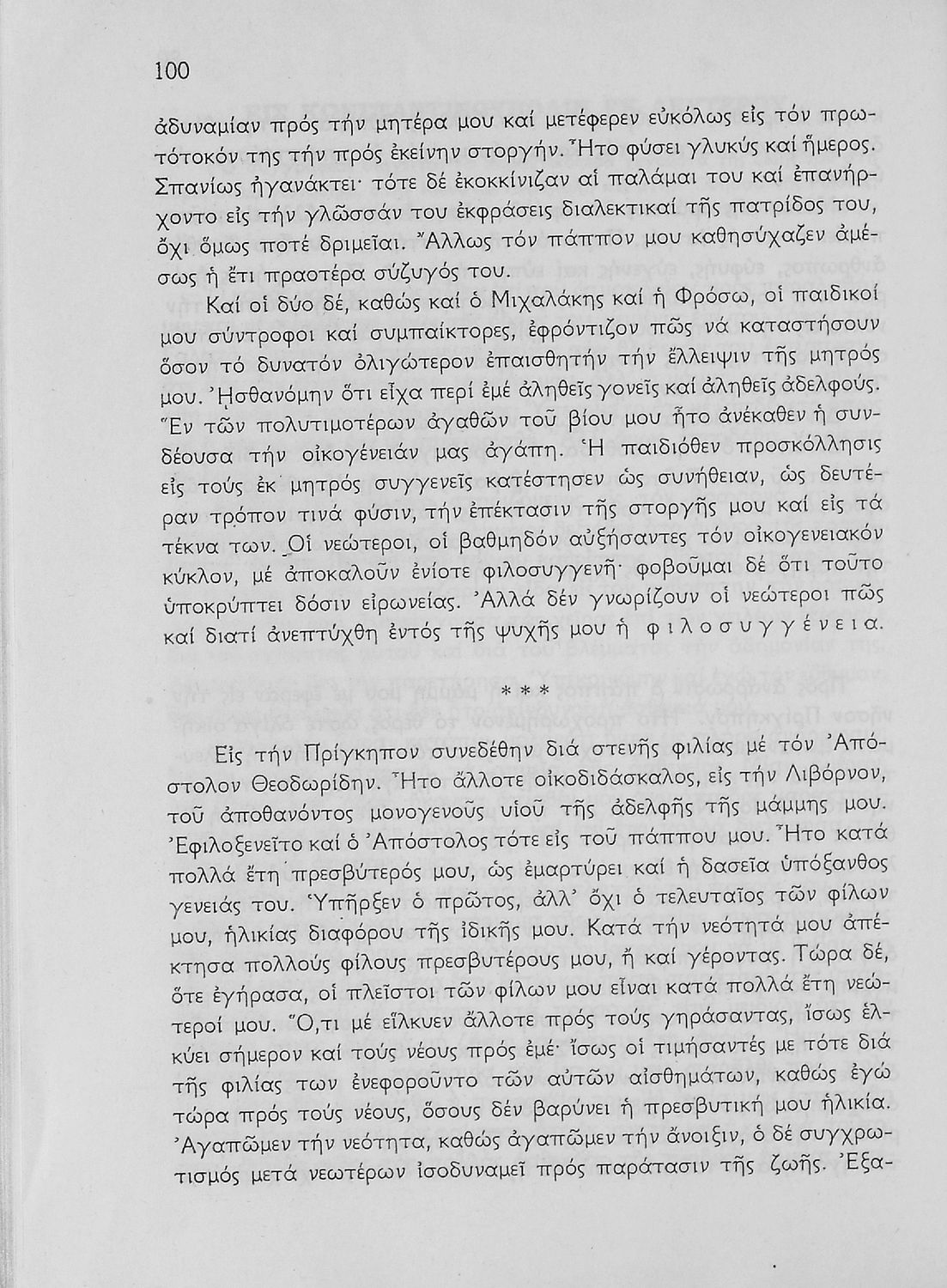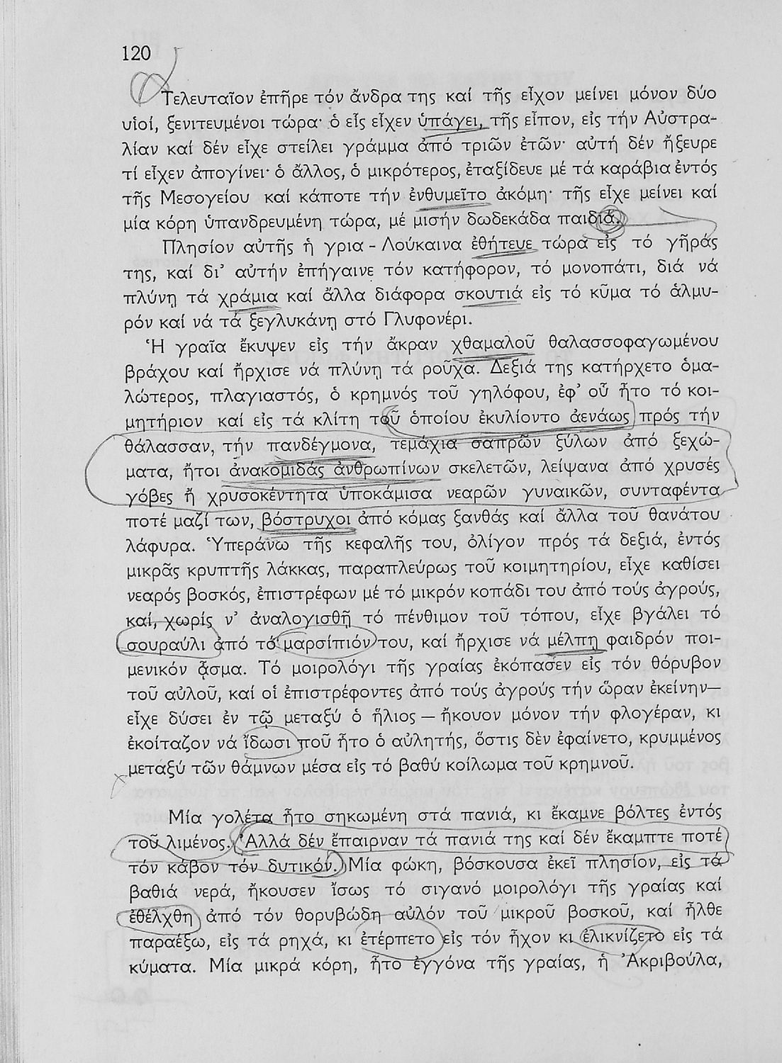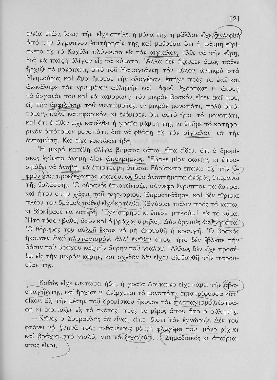 Σχολικό εγχειρίδιο Νέων Ελληνικών της Γ΄ Γυμνασίου με κείμενα και ποιήματα από το πρόσφατο και παλαιότερο ιστορικό παρελθόν της χώρας καθώς και από τη θρησκευτική και κοινωνική ζωή του τόπου και την οργάνωση του κράτους. Σχόλια και σχέδια της μαθήτριας στις σελίδες του βιβλίου. Στο τέλος του βιβλίου υπάρχει λεξιλόγιο και βιογραφίες των συγγραφέων.