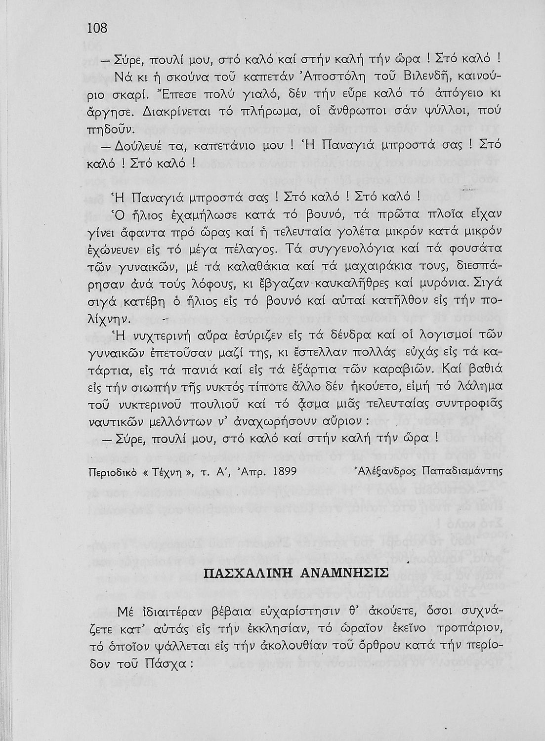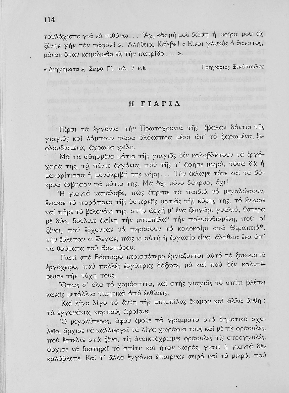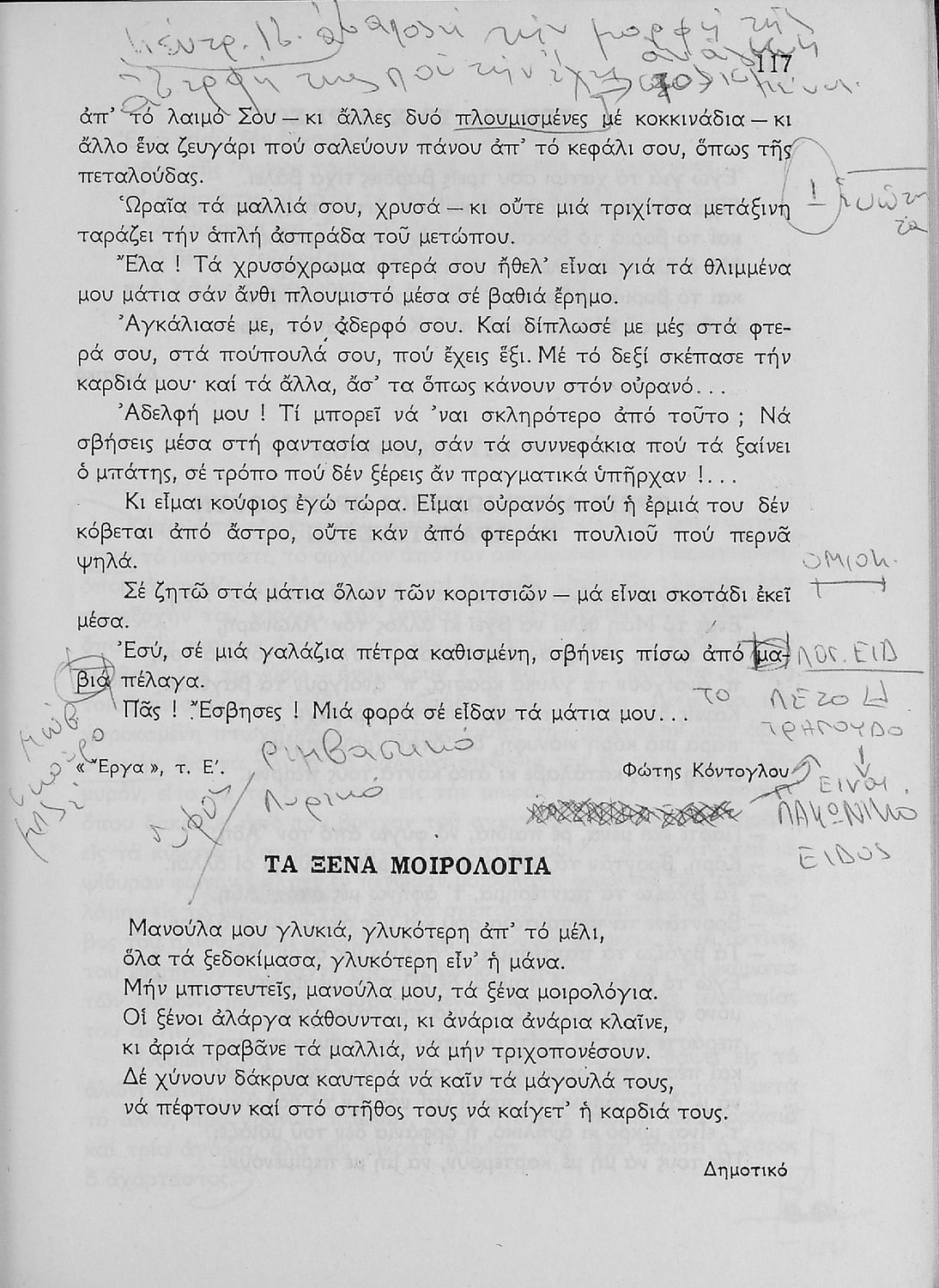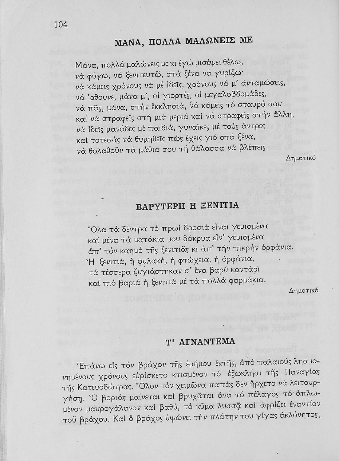 Σχολικό εγχειρίδιο Νέων Ελληνικών Γ΄ Γυμνασίου και Α' Αστικού Σχολείου που περιέχει πεζά και ποιήματα Ελλήνων συγγραφέων εμπνευσμένα από τη θρησκευτική και κοινωνική ζωή, την ελληνική μυθολογία, την αρχαία και