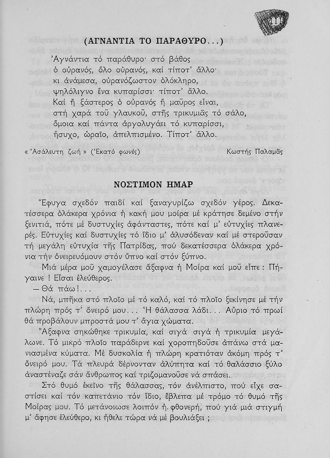 Σχολικό εγχειρίδιο Νέων Ελληνικών Γ΄ Γυμνασίου που περιέχει ποιήματα και πεζά Ελλήνων συγγραφέων εμπνευσμένα από τη θρησκευτική, οικογενειακή και κοινωνική ζωή, την σύγχρονή ελληνική ιστορία και την ελληνική ...