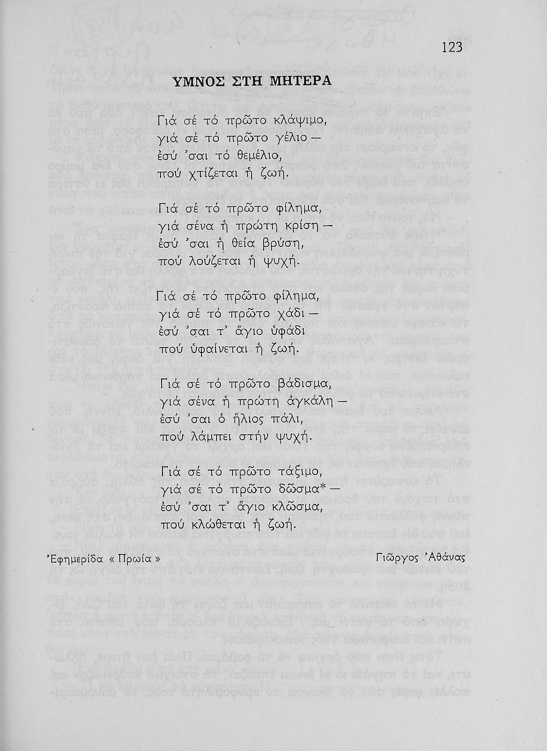 Σχολικό εγχειρίδιο Νέων Ελληνικών Γ΄ Γυμνασίου που περιέχει ποιήματα και πεζά Ελλήνων συγγραφέων εμπνευσμένα από τη θρησκευτική, οικογενειακή και κοινωνική ζωή, την σύγχρονή ελληνική ιστορία και την ελληνική ...