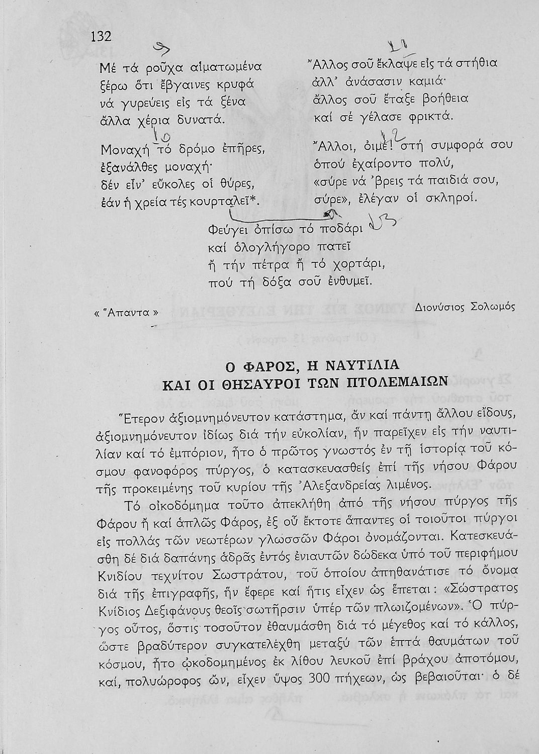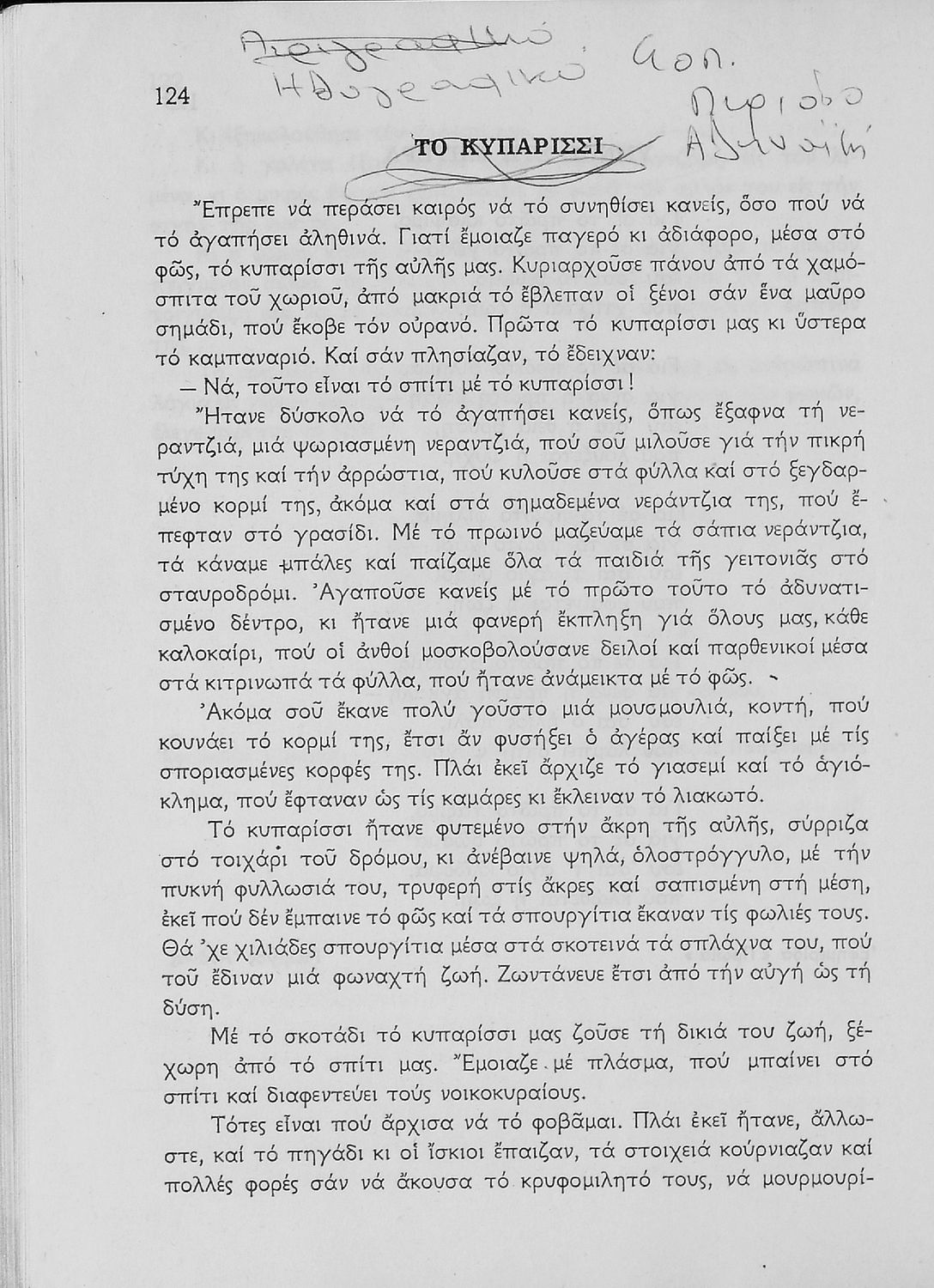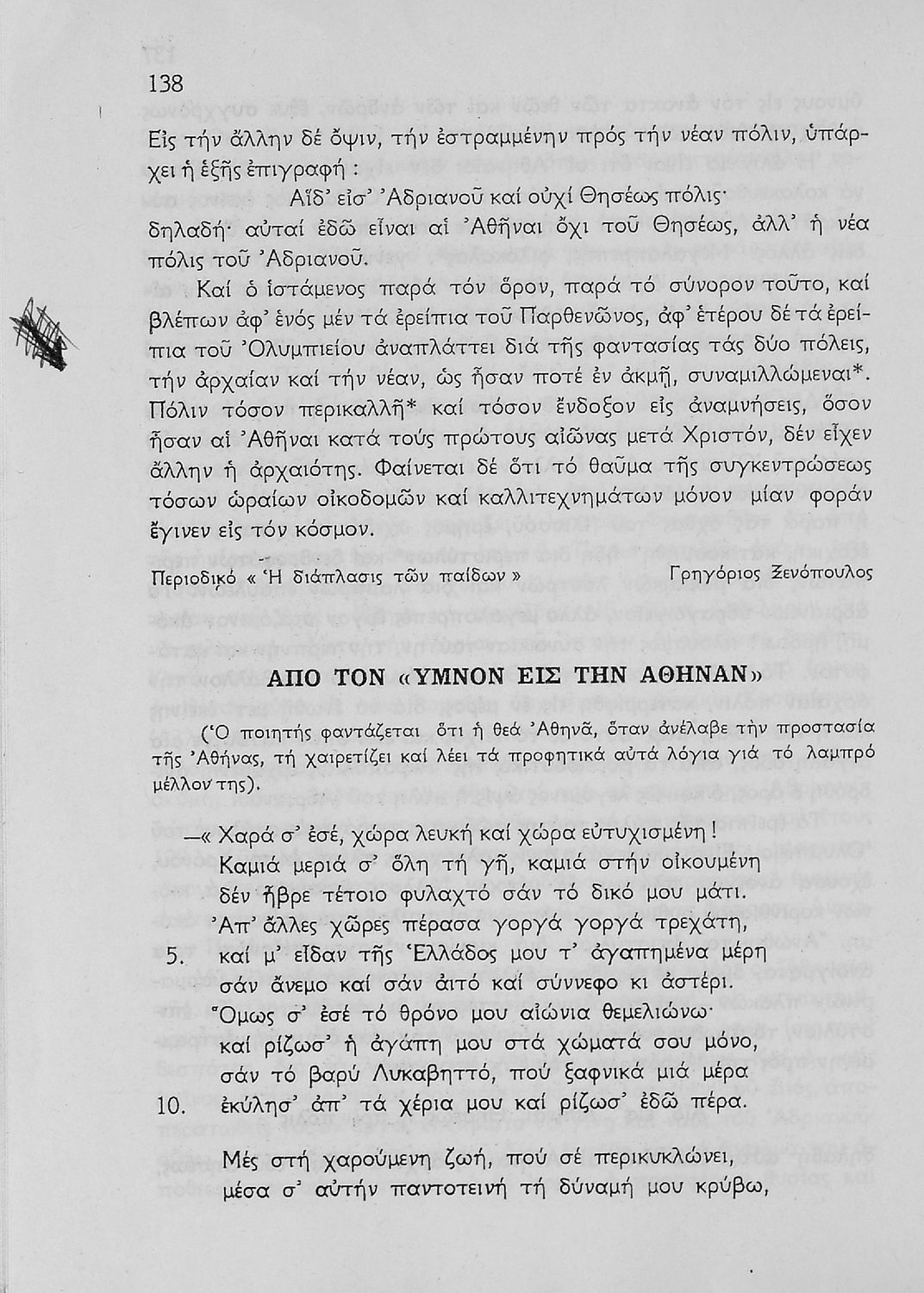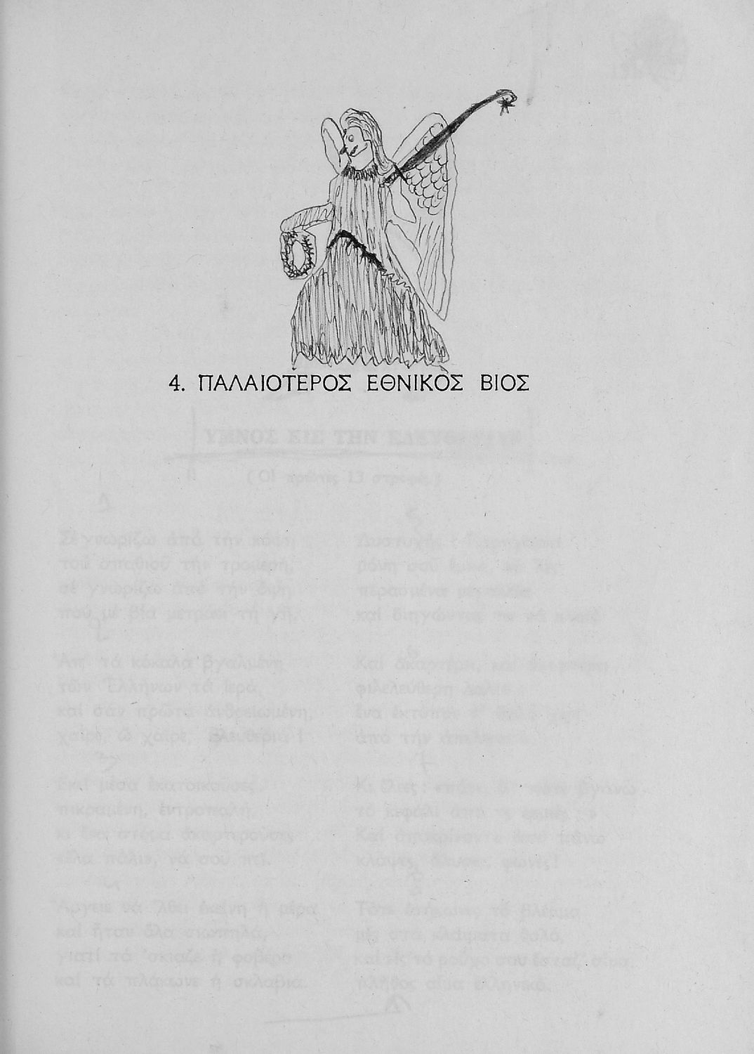 Σχολικό εγχειρίδιο Νέων Ελληνικών Γ΄ Γυμνασίου και Α' Αστικού Σχολείου που περιέχει πεζά και ποιήματα Ελλήνων συγγραφέων εμπνευσμένα από τη θρησκευτική και κοινωνική ζωή, την ελληνική μυθολογία, την αρχαία και