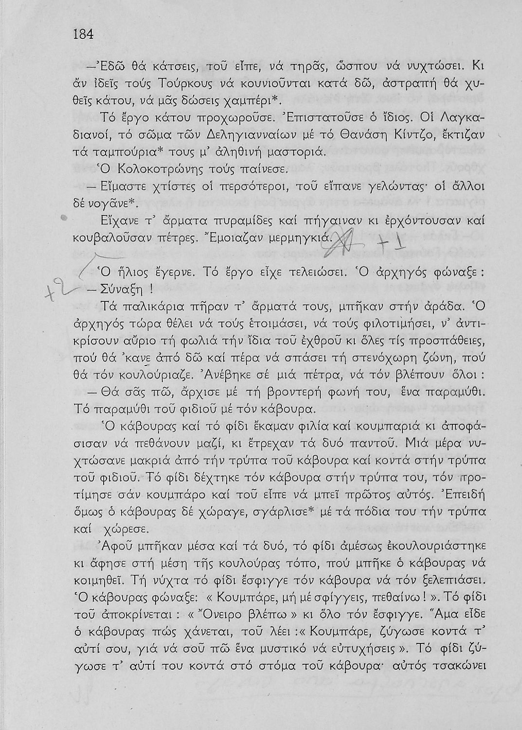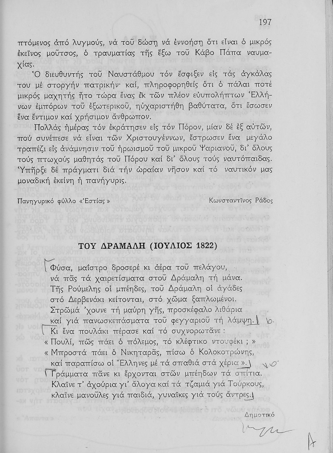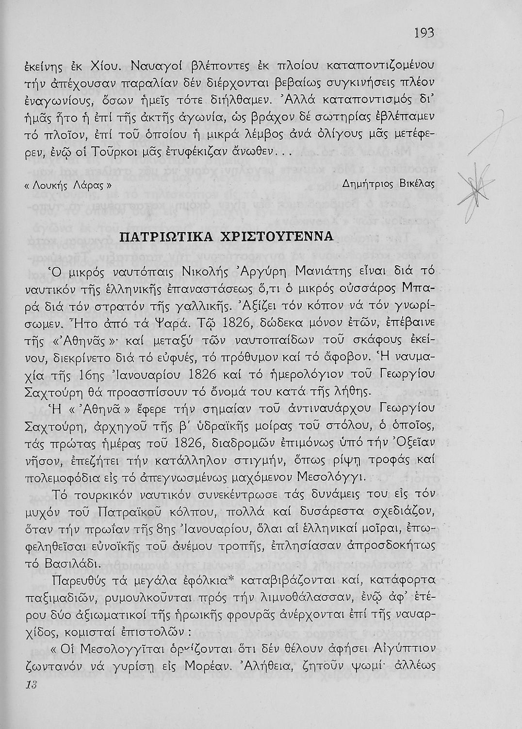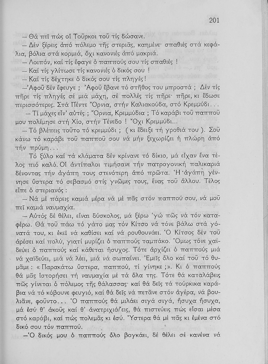 Σχολικό εγχειρίδιο Νέων Ελληνικών της Γ΄ Γυμνασίου με κείμενα και ποιήματα από το πρόσφατο και παλαιότερο ιστορικό παρελθόν της χώρας καθώς και από τη θρησκευτική και κοινωνική ζωή του τόπου και την οργάνωση του κράτους. Σχόλια και σχέδια της μαθήτριας στις σελίδες του βιβλίου. Στο τέλος του βιβλίου υπάρχει λεξιλόγιο και βιογραφίες των συγγραφέων.