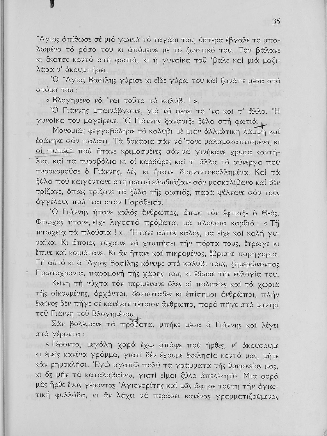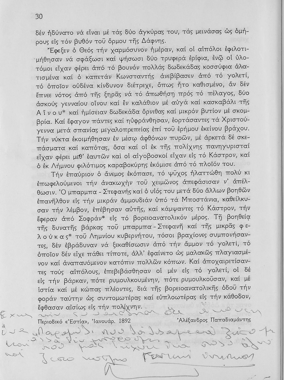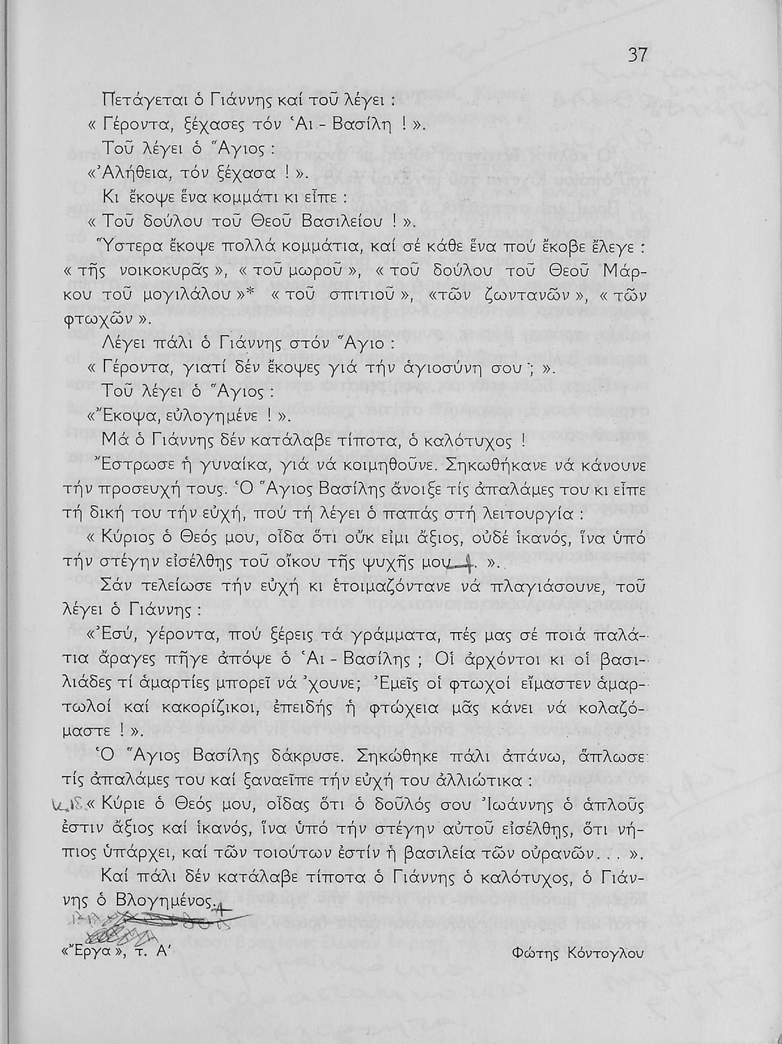 Σχολικό εγχειρίδιο Νέων Ελληνικών της Γ΄ Γυμνασίου με κείμενα και ποιήματα από το πρόσφατο και παλαιότερο ιστορικό παρελθόν της χώρας καθώς και από τη θρησκευτική και κοινωνική ζωή του τόπου και την οργάνωση του κράτους. Σχόλια και σχέδια της μαθήτριας στις σελίδες του βιβλίου. Στο τέλος του βιβλίου υπάρχει λεξιλόγιο και βιογραφίες των συγγραφέων.