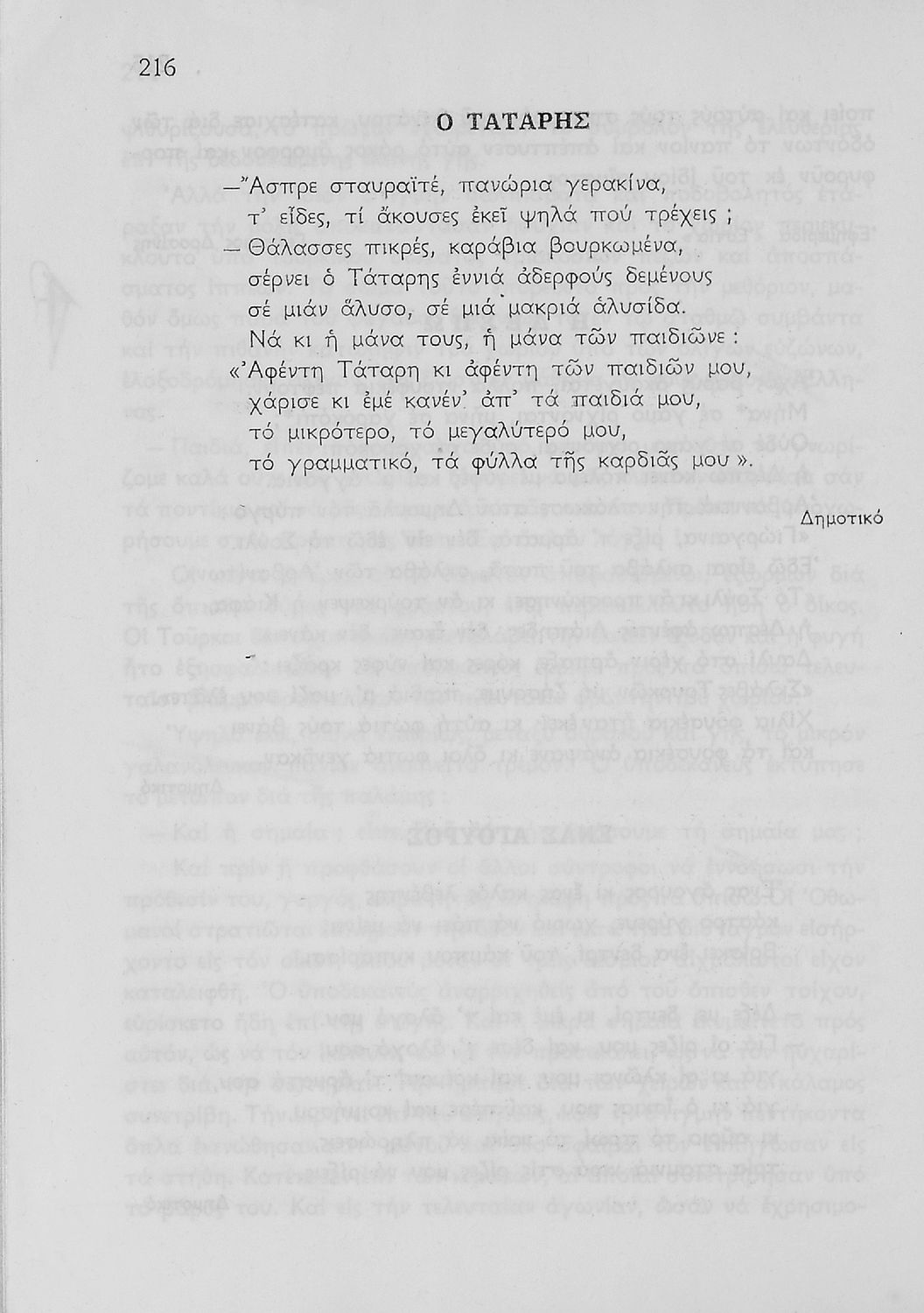 Σχολικό εγχειρίδιο Νέων Ελληνικών Γ΄ Γυμνασίου και Α' Αστικού Σχολείου που περιέχει πεζά και ποιήματα Ελλήνων συγγραφέων εμπνευσμένα από τη θρησκευτική και κοινωνική ζωή, την ελληνική μυθολογία, την αρχαία και