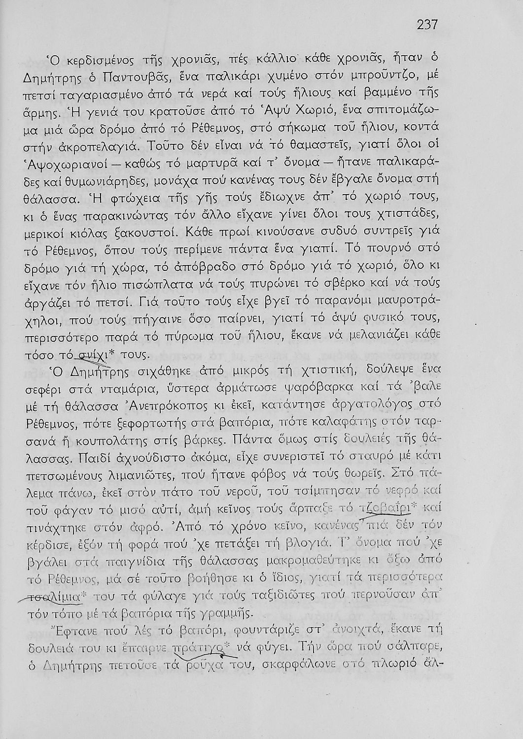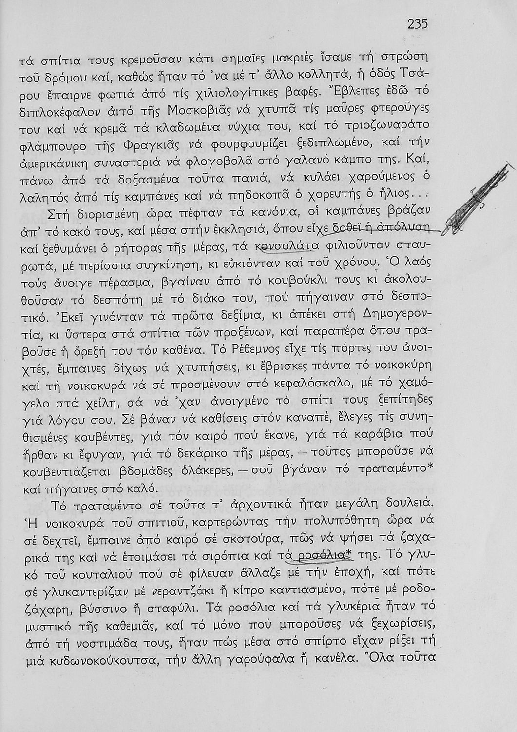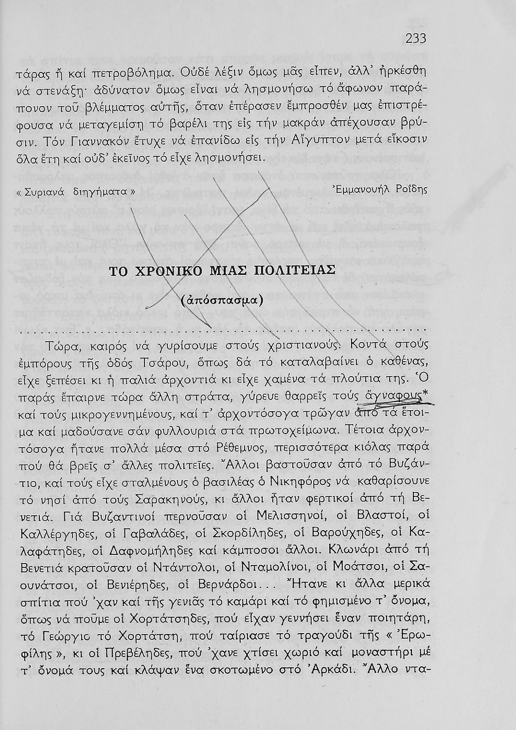 Σχολικό εγχειρίδιο Νέων Ελληνικών της Γ΄ Γυμνασίου με κείμενα και ποιήματα από το πρόσφατο και παλαιότερο ιστορικό παρελθόν της χώρας καθώς και από τη θρησκευτική και κοινωνική ζωή του τόπου και την οργάνωση του κράτους. Σχόλια και σχέδια της μαθήτριας στις σελίδες του βιβλίου. Στο τέλος του βιβλίου υπάρχει λεξιλόγιο και βιογραφίες των συγγραφέων.