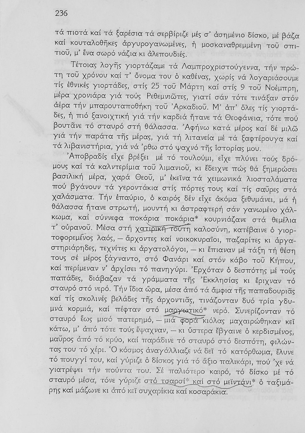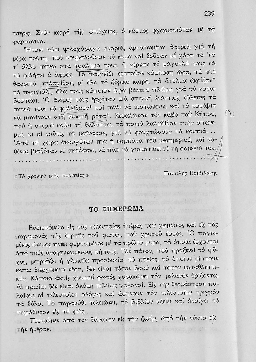 Σχολικό εγχειρίδιο Νέων Ελληνικών Γ΄ Γυμνασίου και Α' Αστικού Σχολείου που περιέχει πεζά και ποιήματα Ελλήνων συγγραφέων εμπνευσμένα από τη θρησκευτική και κοινωνική ζωή, την ελληνική μυθολογία, την αρχαία και