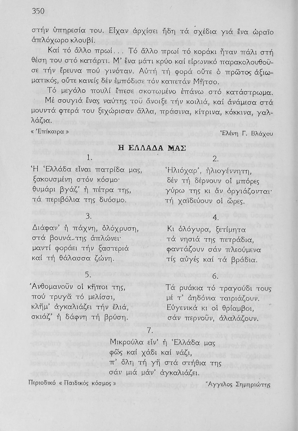 Σχολικό εγχειρίδιο Νέων Ελληνικών Γ΄ Γυμνασίου που περιέχει ποιήματα και πεζά Ελλήνων συγγραφέων εμπνευσμένα από τη θρησκευτική, οικογενειακή και κοινωνική ζωή, την σύγχρονή ελληνική ιστορία και την ελληνική ...