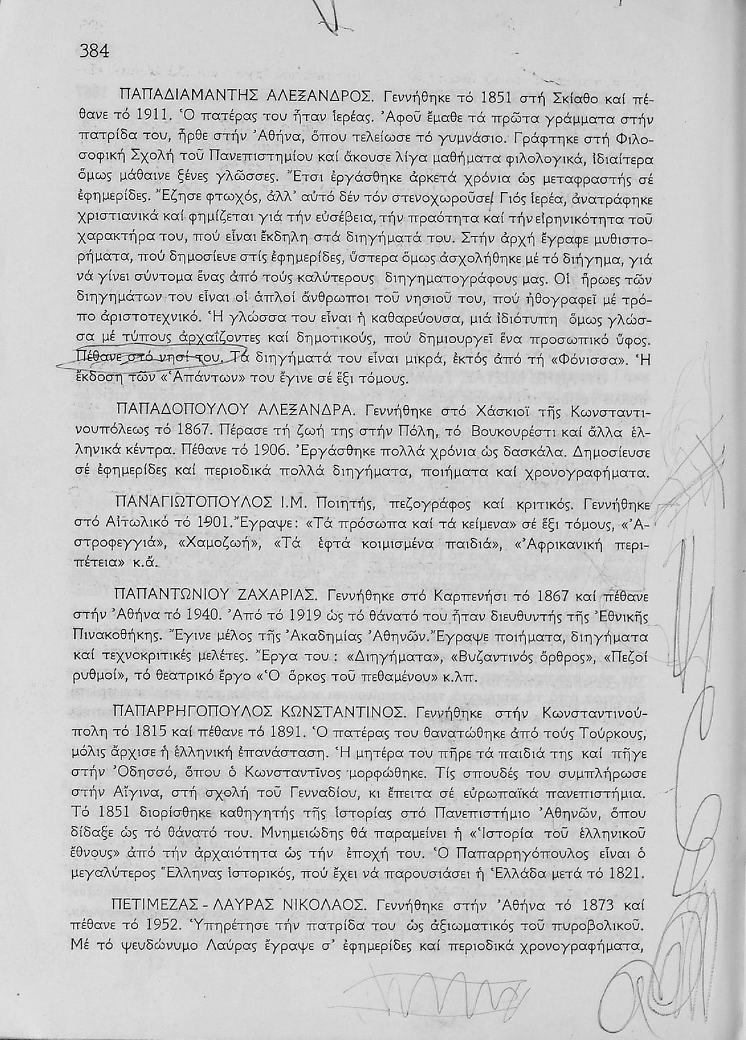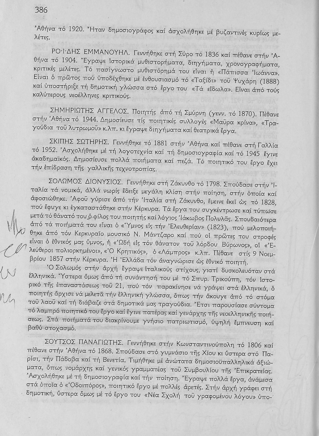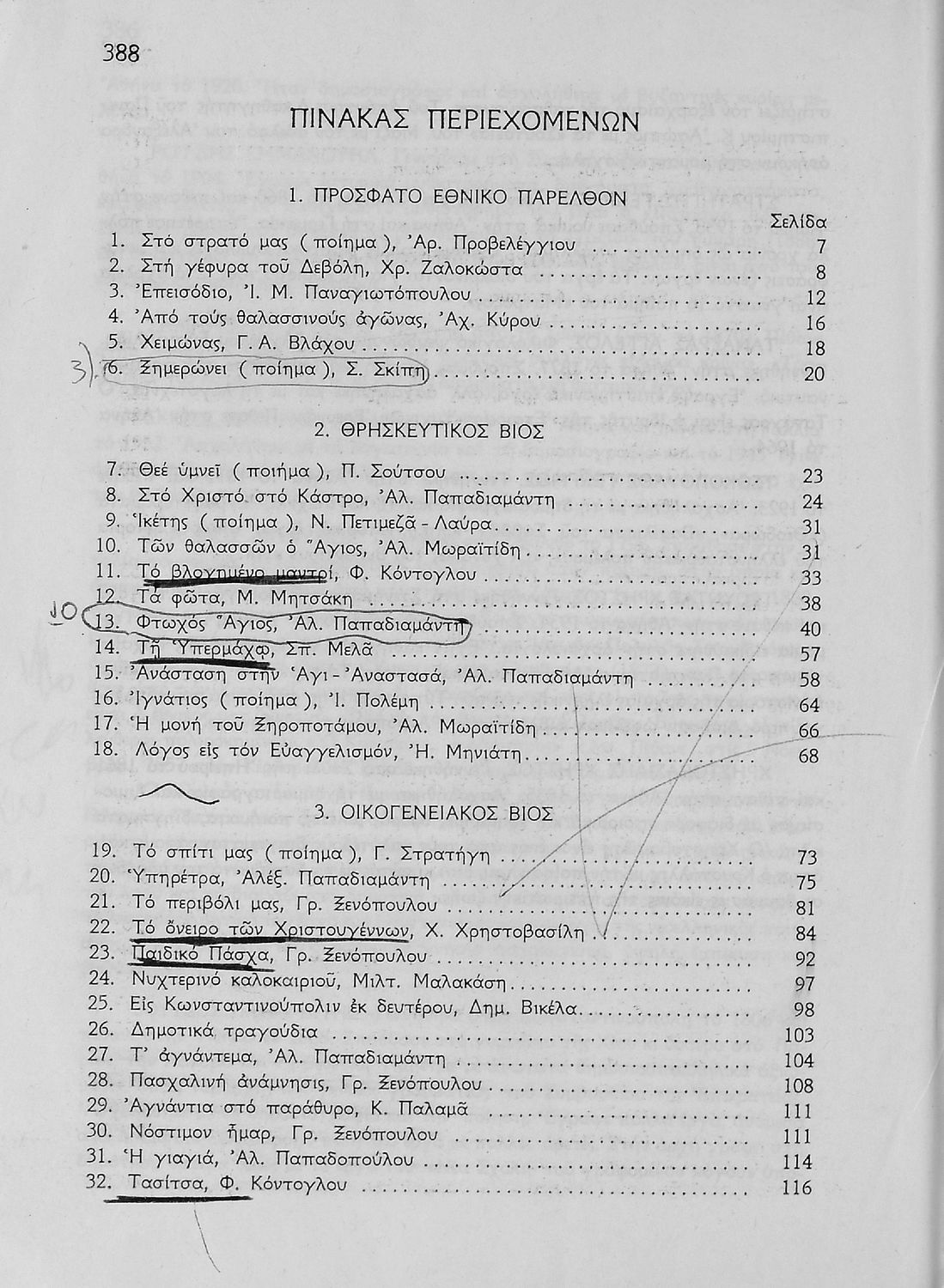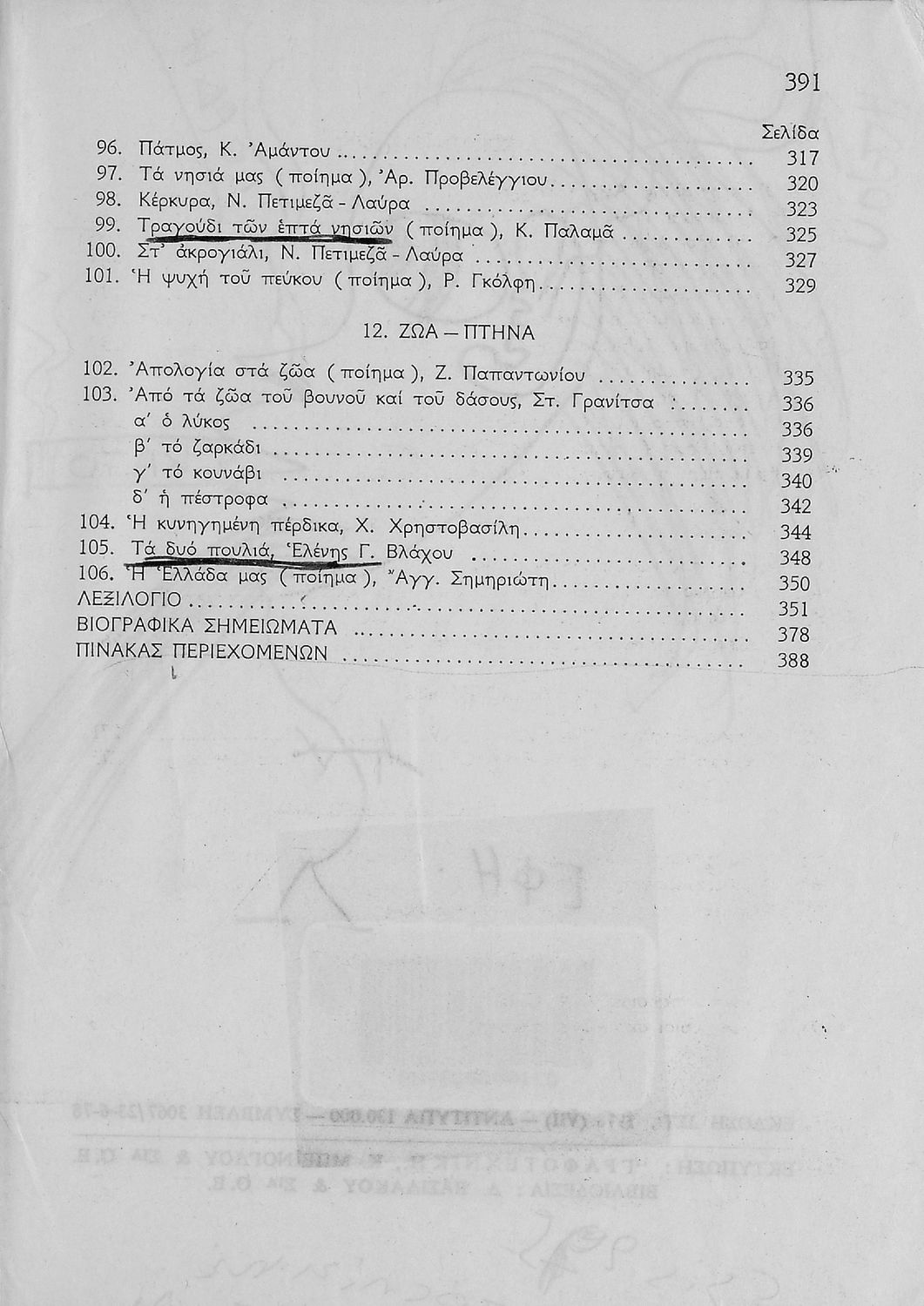 Σχολικό εγχειρίδιο Νέων Ελληνικών της Γ΄ Γυμνασίου με κείμενα και ποιήματα από το πρόσφατο και παλαιότερο ιστορικό παρελθόν της χώρας καθώς και από τη θρησκευτική και κοινωνική ζωή του τόπου και την οργάνωση του κράτους. Σχόλια και σχέδια της μαθήτριας στις σελίδες του βιβλίου. Στο τέλος του βιβλίου υπάρχει λεξιλόγιο και βιογραφίες των συγγραφέων.