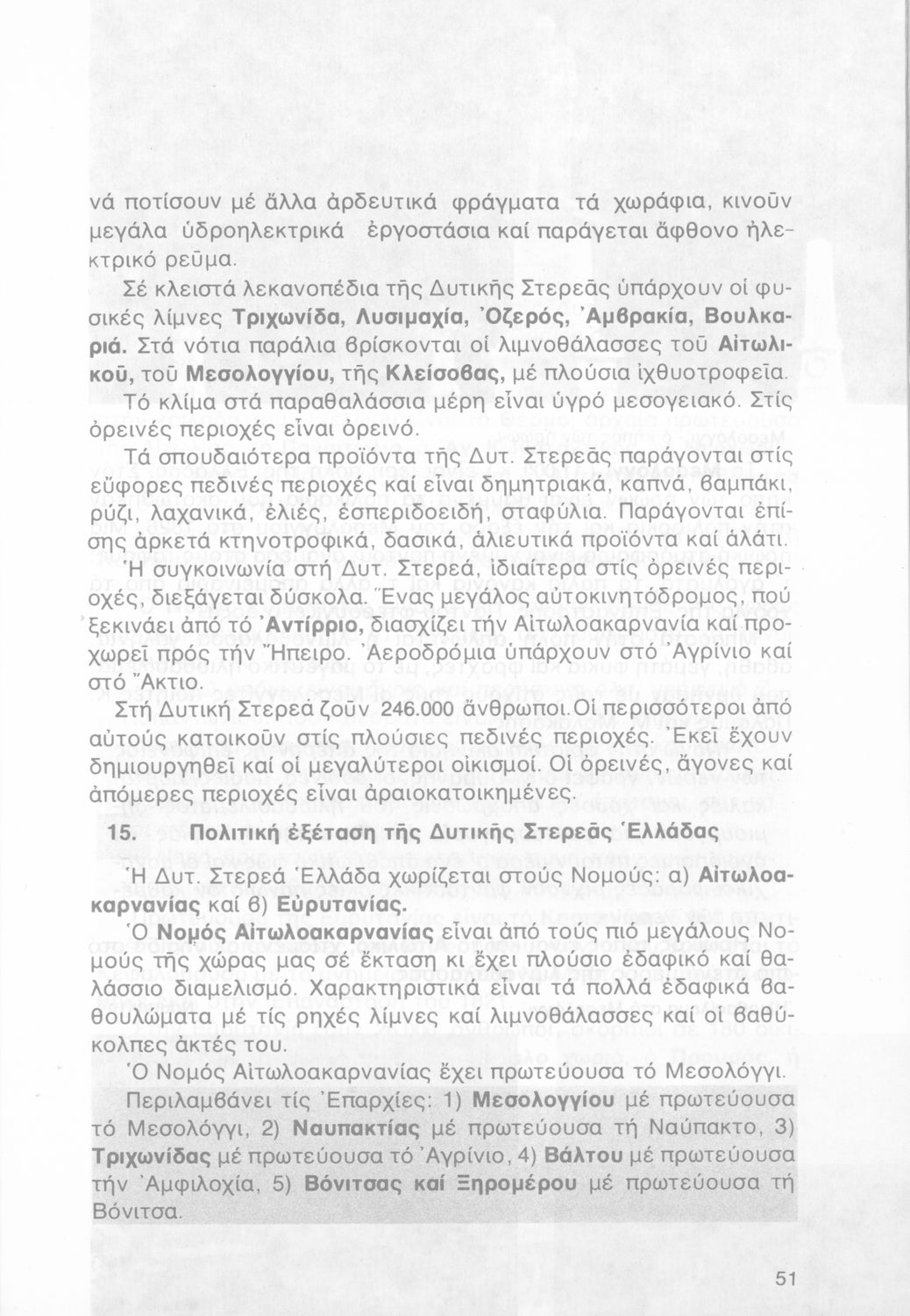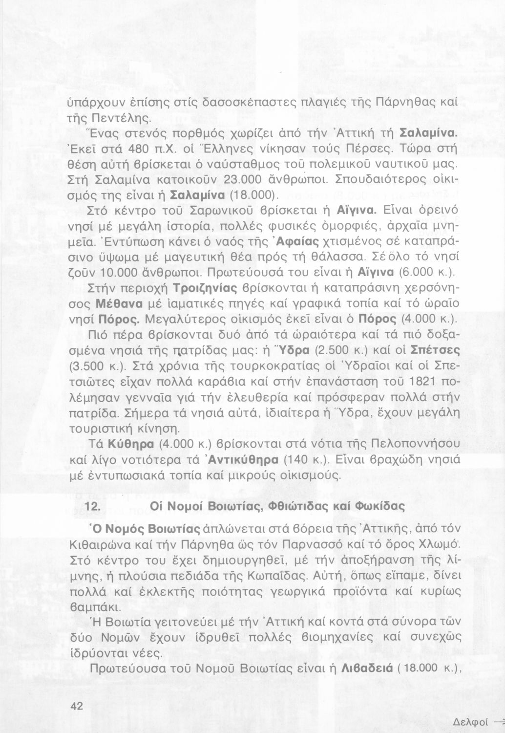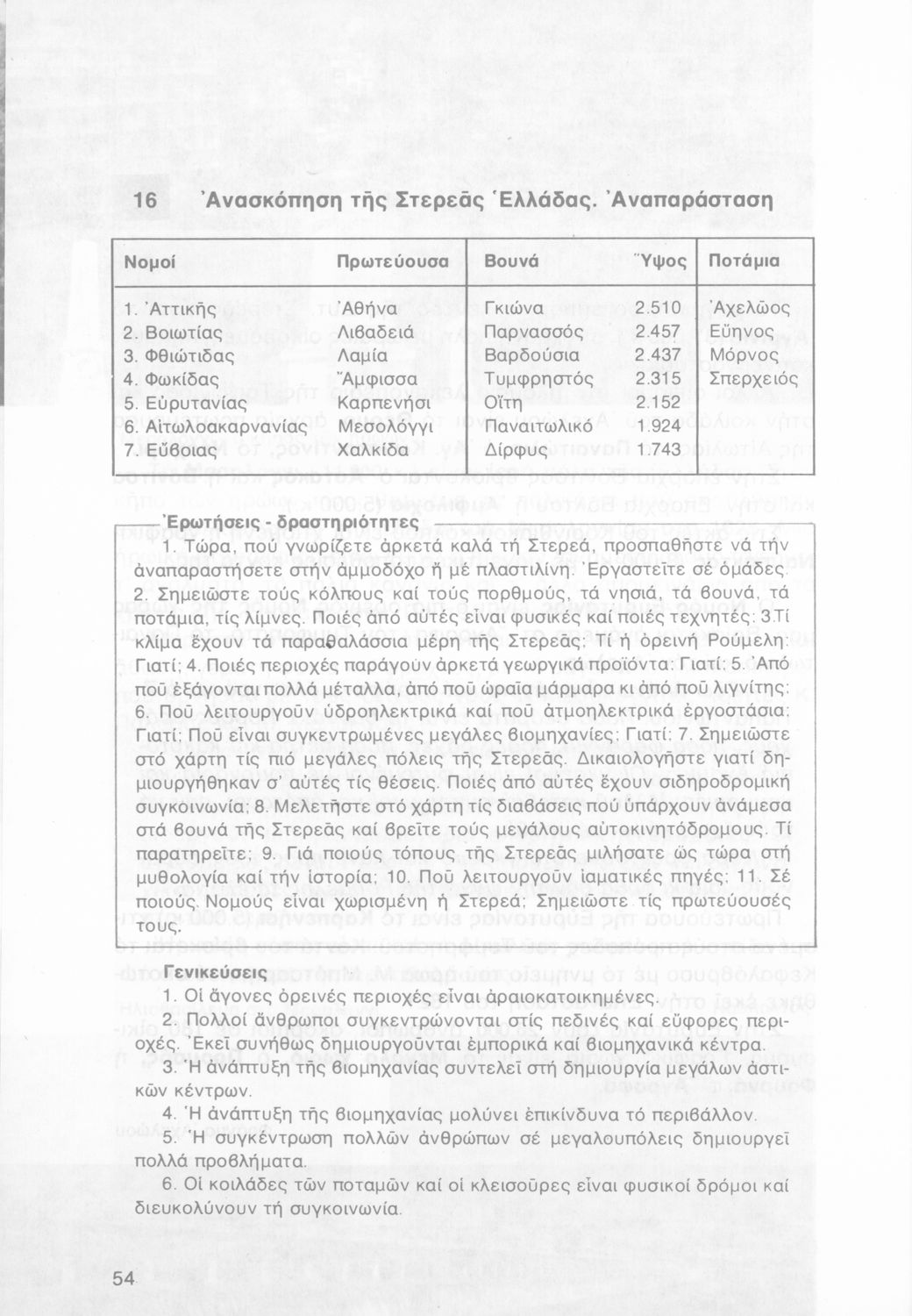 Σχολικό εγχειρίδιο Γεωγραφίας για τη Γ΄, Δ΄ Δημοτικού. Μελετά την Ελλάδα ανά γεωγραφικό νομό με πληροφορίες από το χάρτη της περιοχής και στοιχεία της ιστορίας και της οικονομικής ζωής.