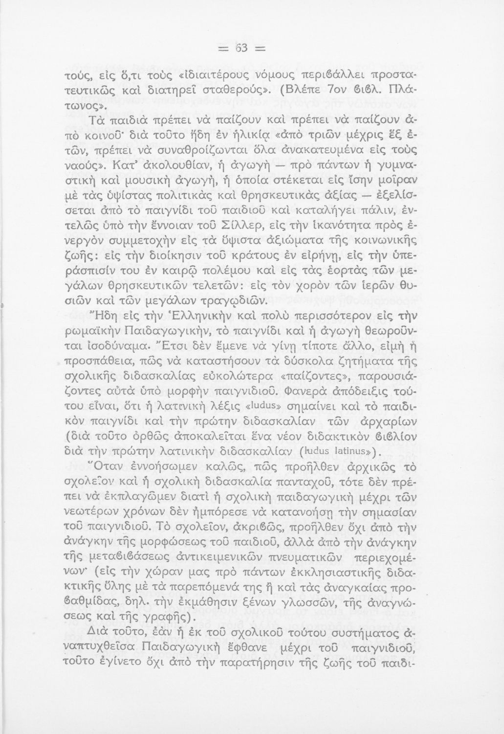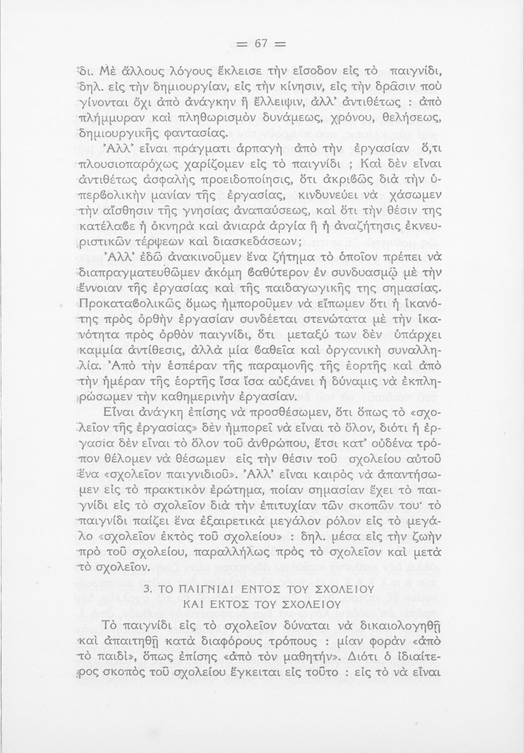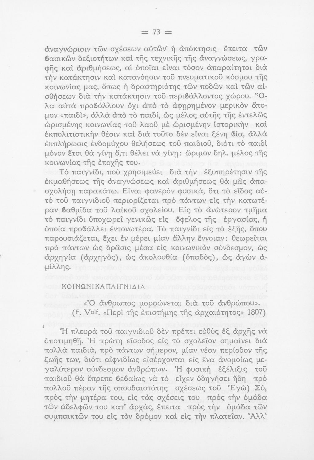 Παιδαγωγικό βοήθημα που αναφέρεται στην αγωγή ως πρωταρχική λειτουργία κάθε κοινωνίας η οποία εκφράζεται μέσα από το παιχνίδι, την εργασία, το λόγο και την γιορτή.