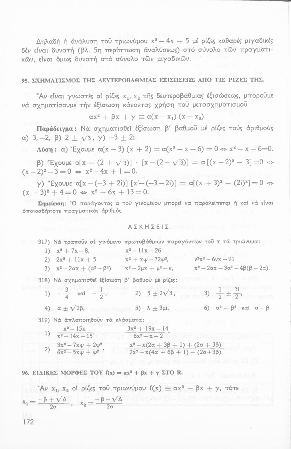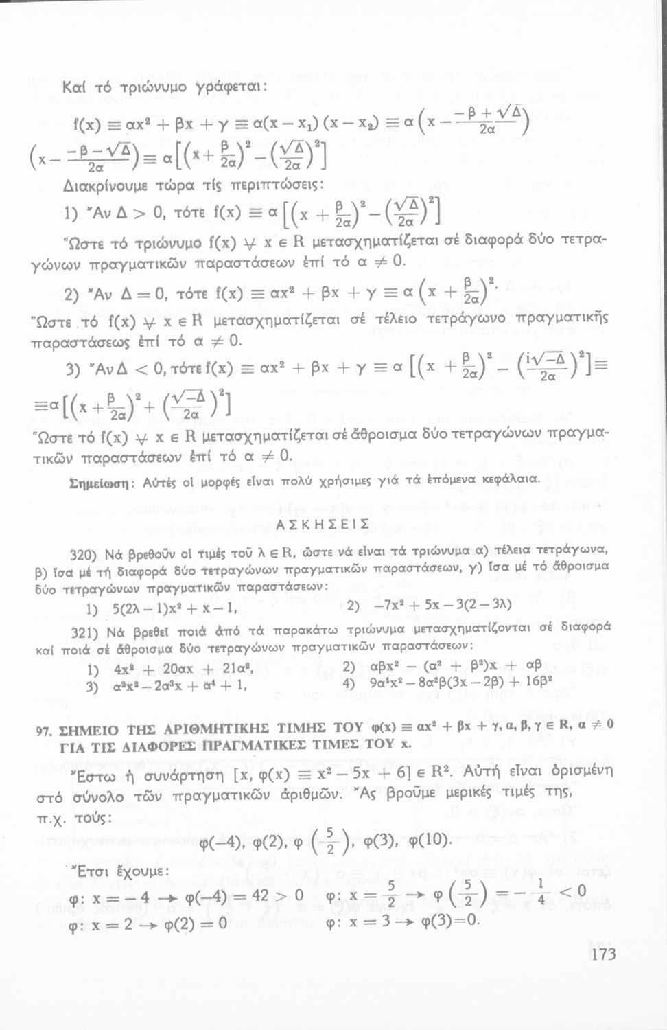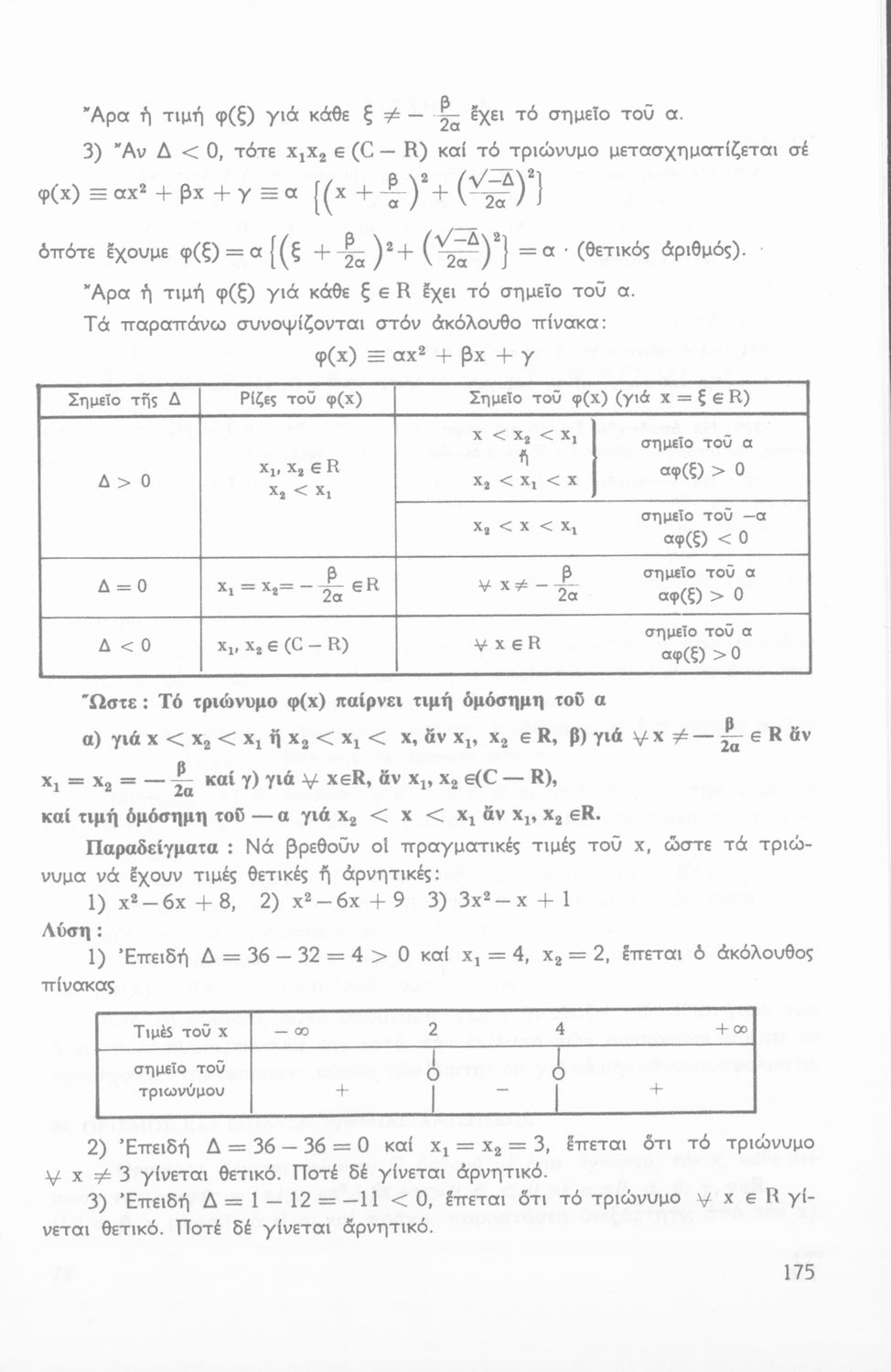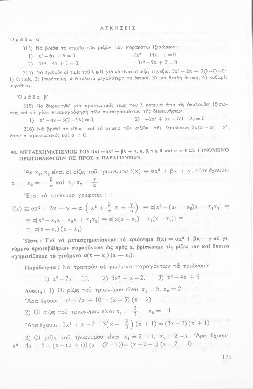 Σχολικό εγχειρίδιο Μαθηματικών Γυμνασίου που είναι χωρισμένο σε θεωρήματα, παραδείγματα και ασκήσεις και περιλαμβάνει στοιχεία Ανώτερης Άλγεβρας και Μαθηματικής Ανάλυσης.