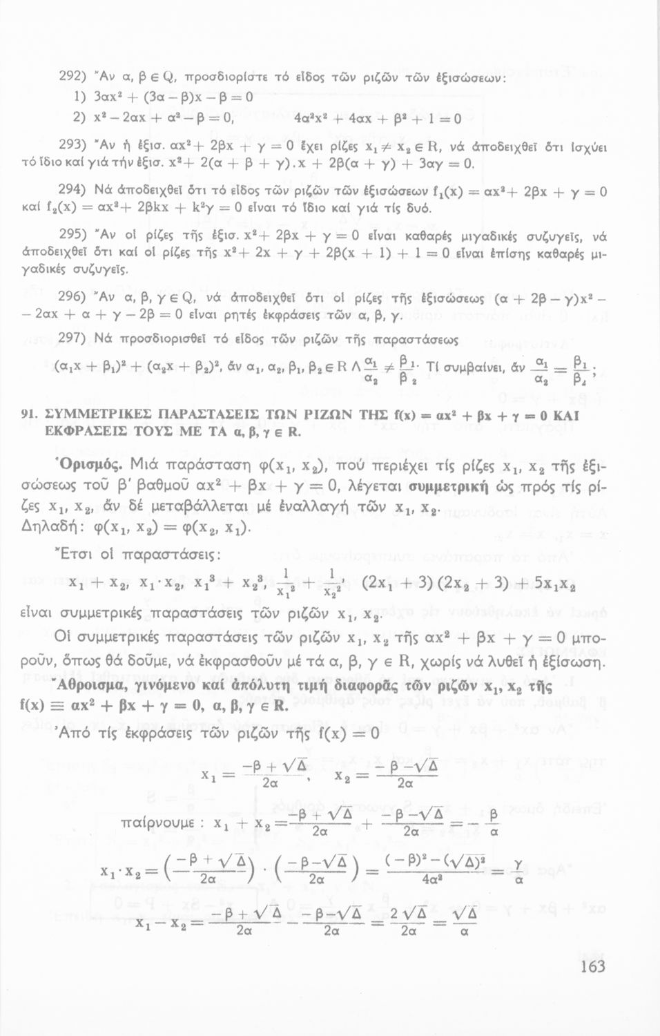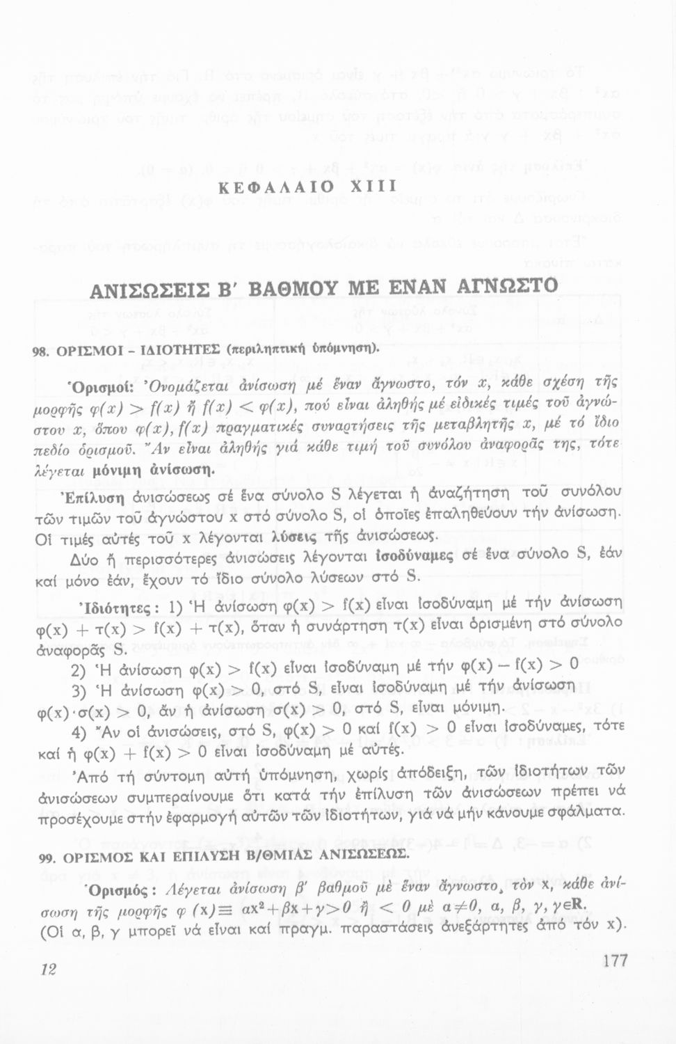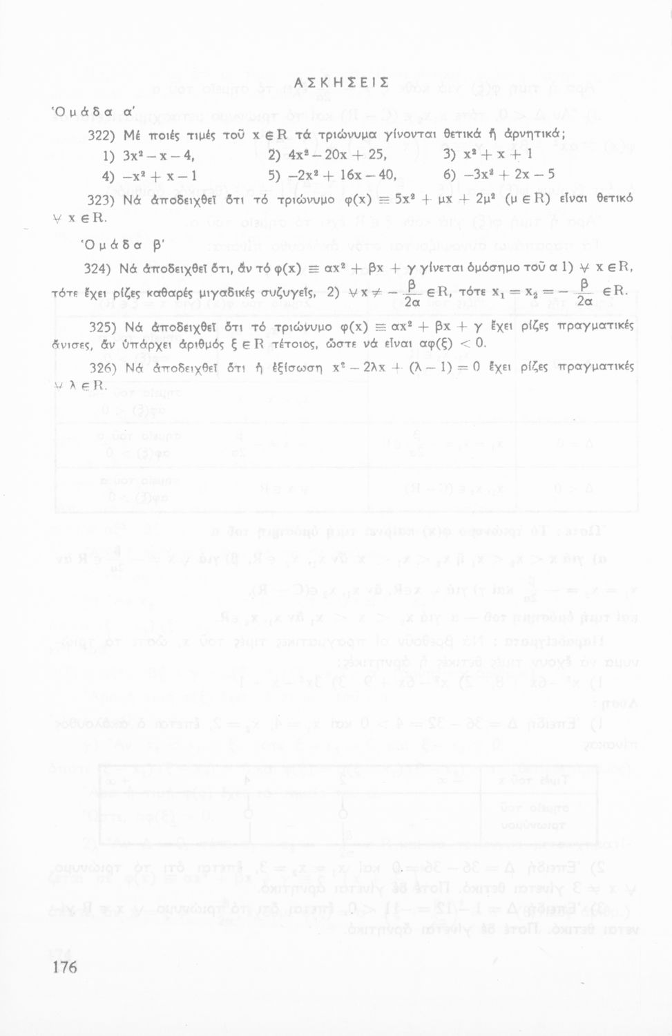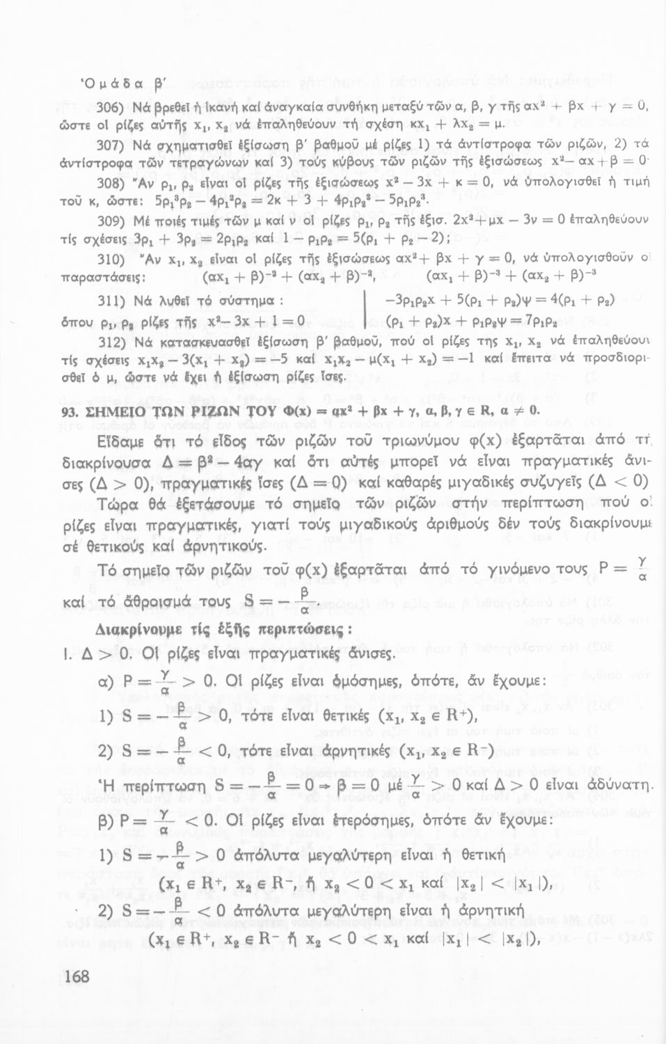 Σχολικό εγχειρίδιο Μαθηματικών Γυμνασίου που είναι χωρισμένο σε θεωρήματα, παραδείγματα και ασκήσεις και περιλαμβάνει στοιχεία Ανώτερης Άλγεβρας και Μαθηματικής Ανάλυσης.