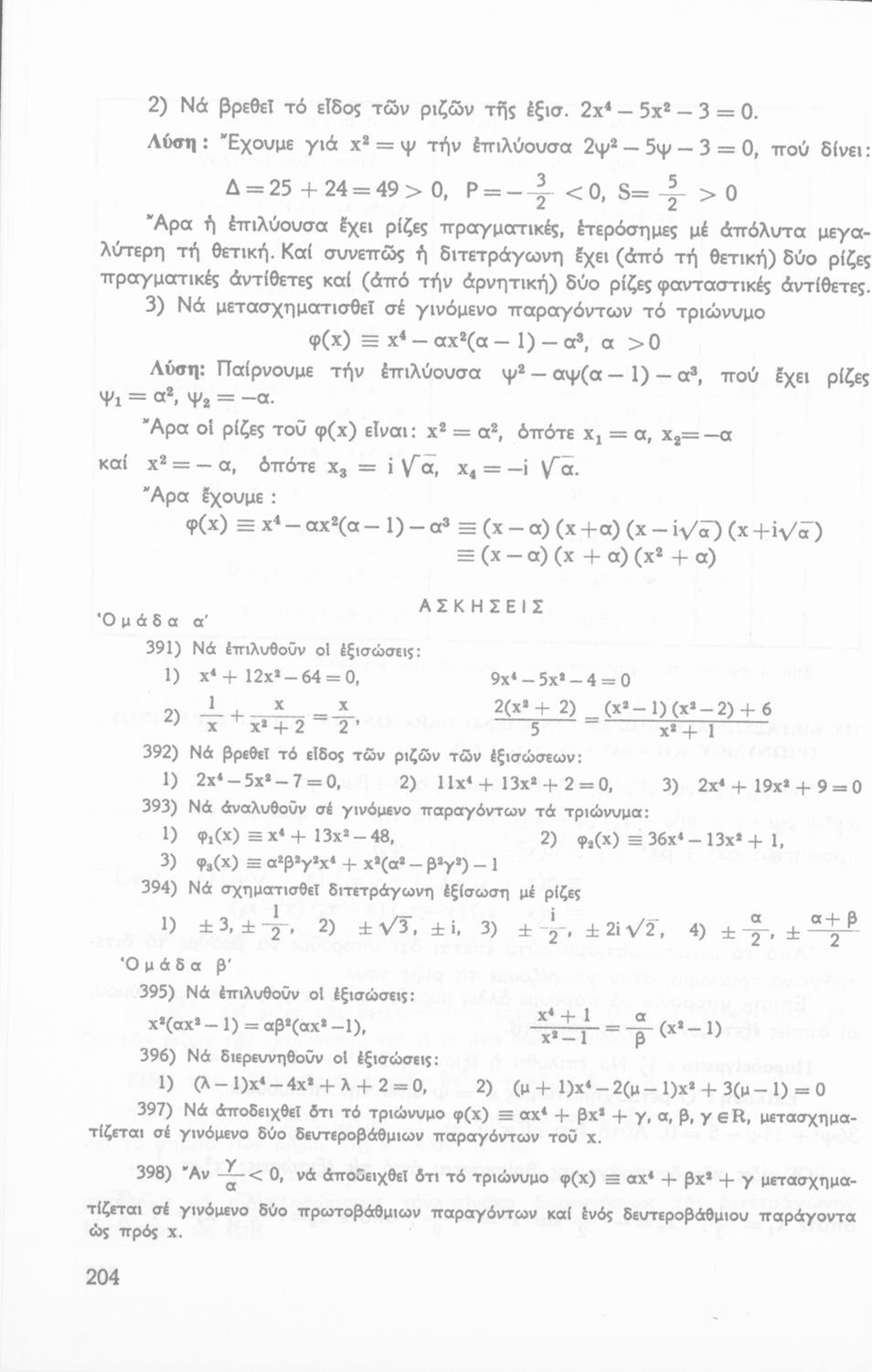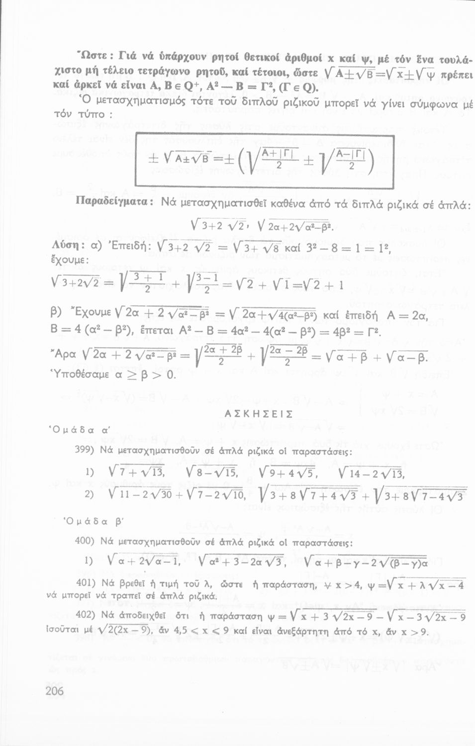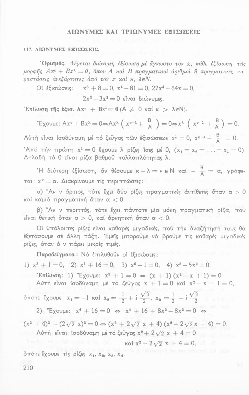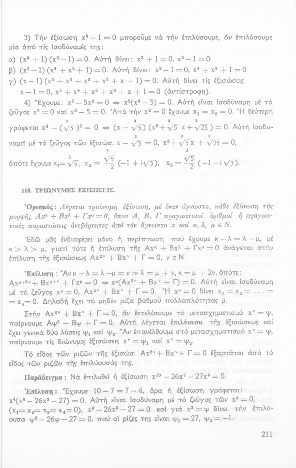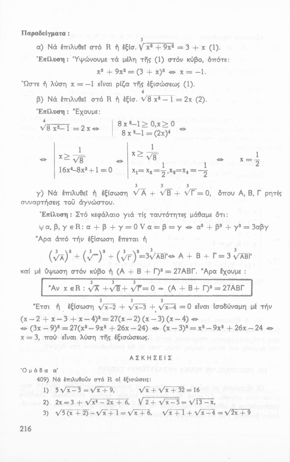 Σχολικό εγχειρίδιο Μαθηματικών Γυμνασίου που είναι χωρισμένο σε θεωρήματα, παραδείγματα και ασκήσεις και περιλαμβάνει στοιχεία Ανώτερης Άλγεβρας και Μαθηματικής Ανάλυσης.