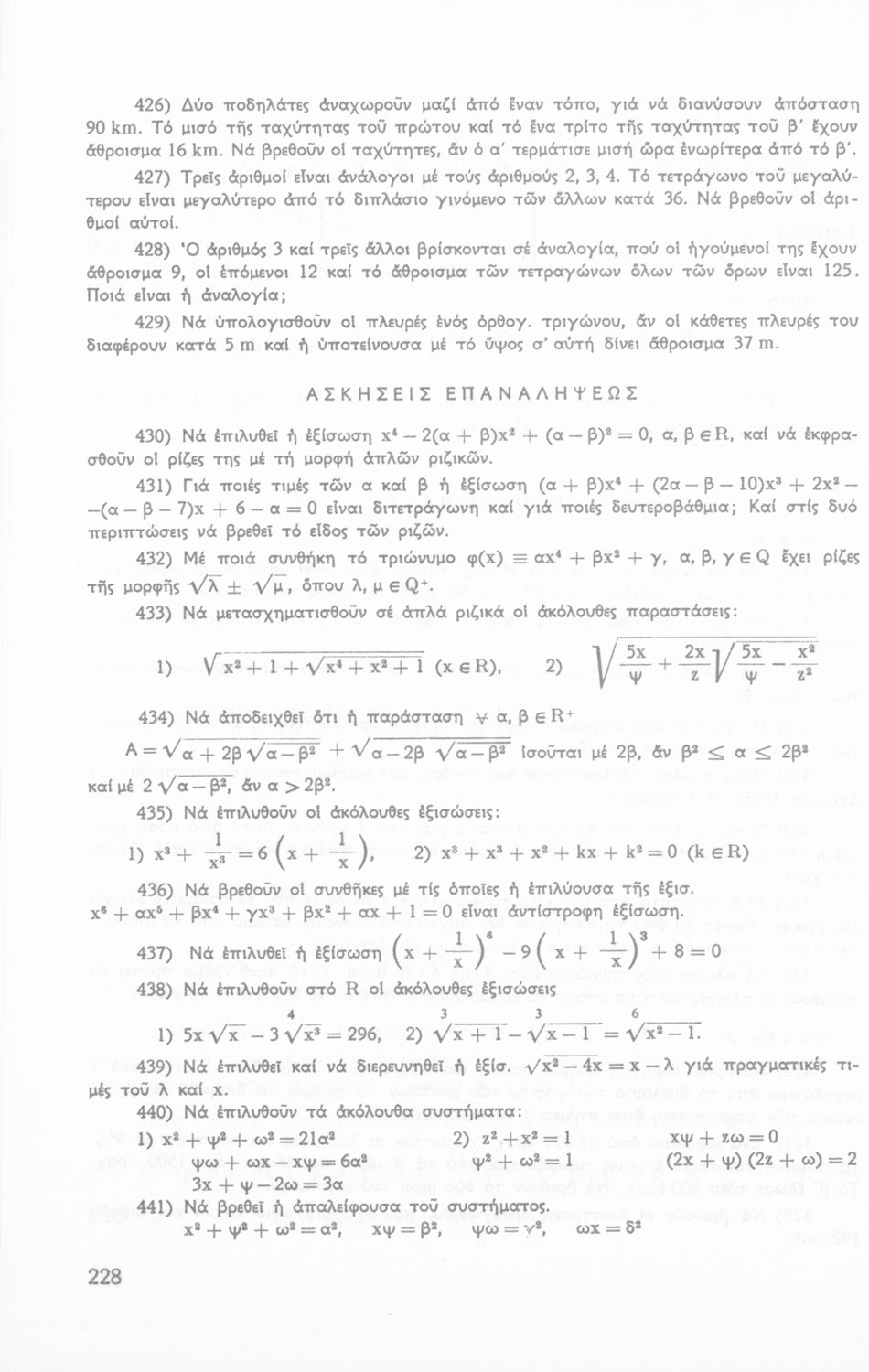 Σχολικό εγχειρίδιο Μαθηματικών Α΄ Λυκείου χωρισμένο σε ορισμούς, παραδείγματα και ασκήσεις που εστιάζει στην Άλγεβρα. Περιέχει στοιχεία Περιγραφικής Στατιστικής και Τριγωνομετρίας.