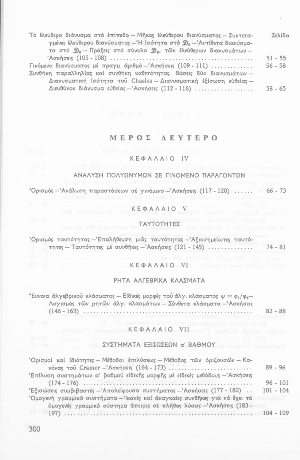 Σχολικό εγχειρίδιο Μαθηματικών ΣΤ΄ Γυμνασίου που είναι χωρισμένο σε θεωρήματα, παραδείγματα και ασκήσεις και περιλαμβάνει στοιχεία Ανώτερης Άλγεβρας και Μαθηματικής Ανάλυσης.