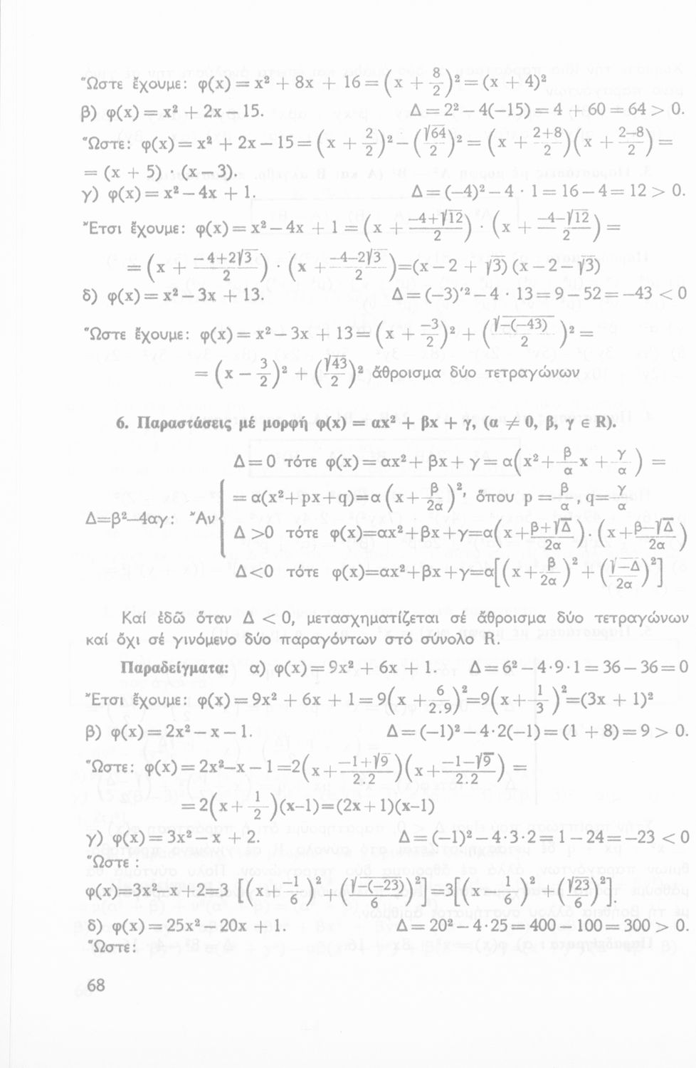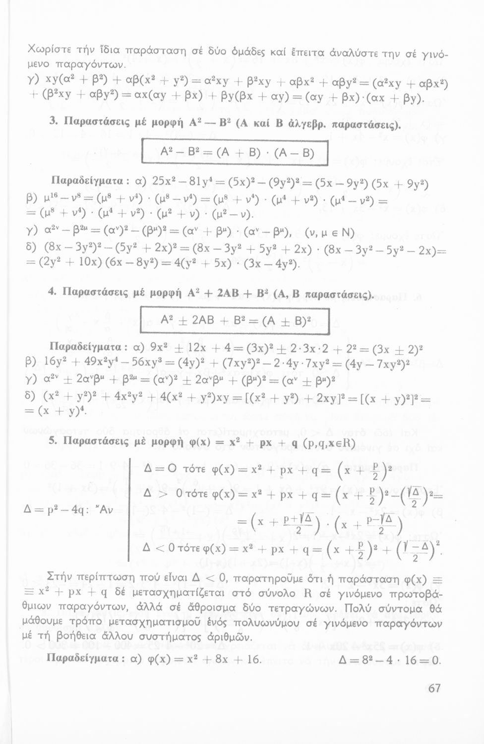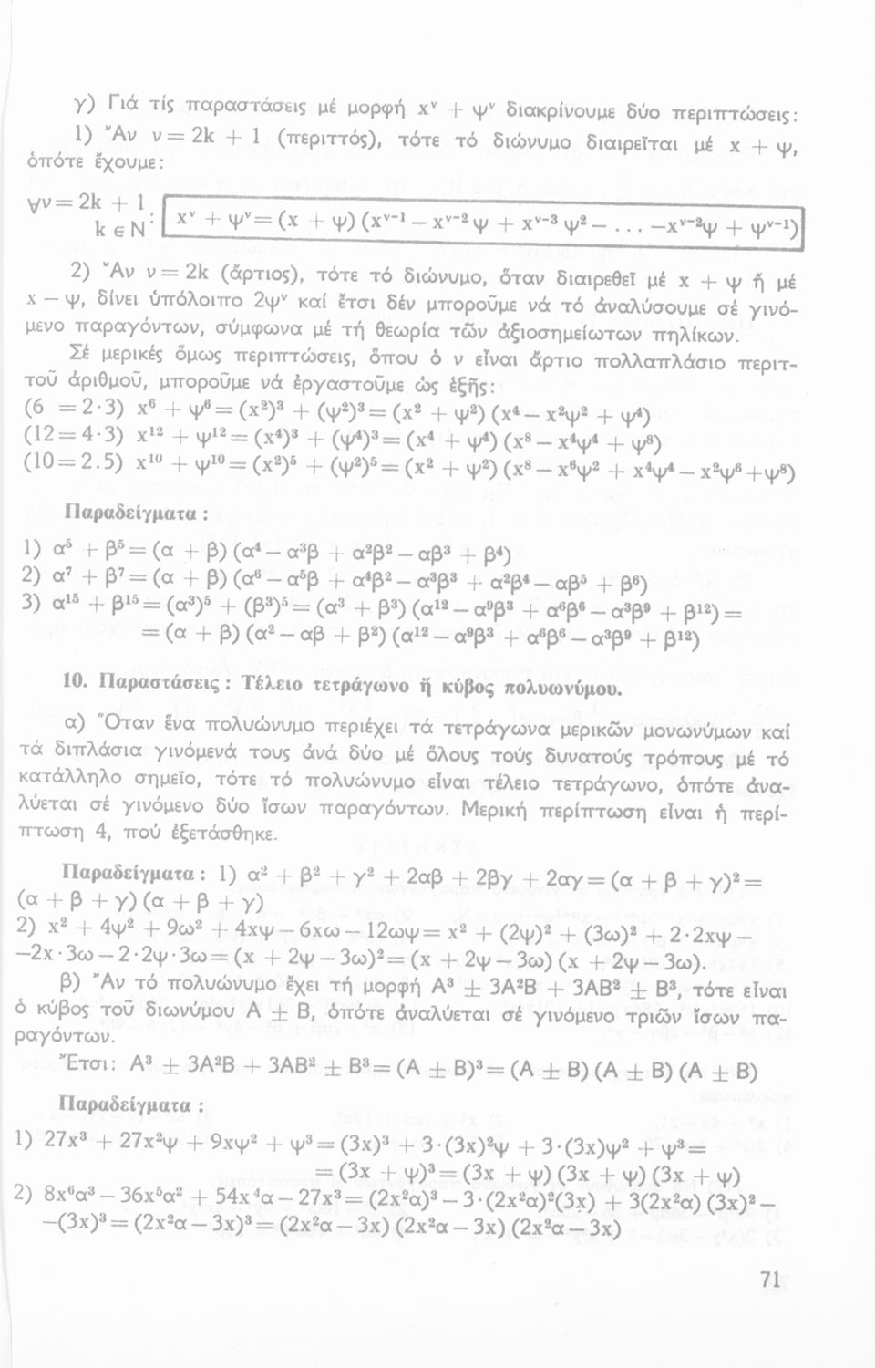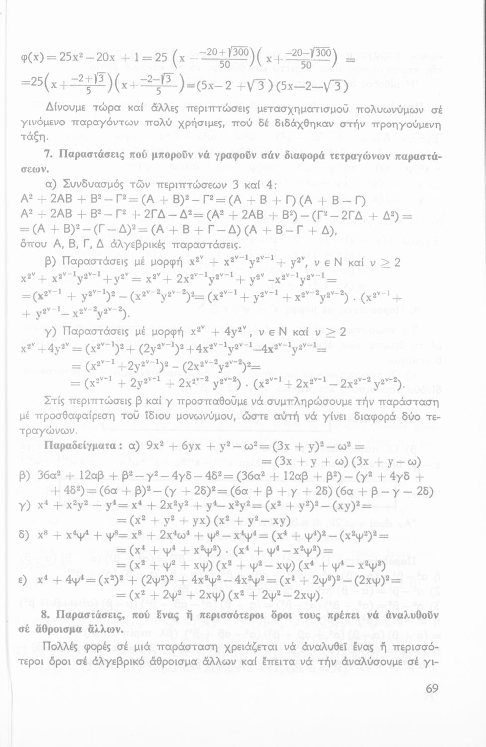Σχολικό εγχειρίδιο Μαθηματικών Γυμνασίου που είναι χωρισμένο σε θεωρήματα, παραδείγματα και ασκήσεις και περιλαμβάνει στοιχεία Ανώτερης Άλγεβρας και Μαθηματικής Ανάλυσης.