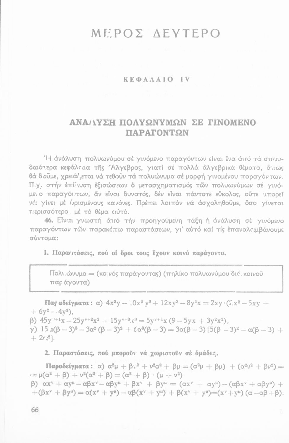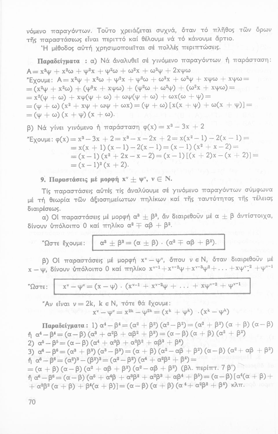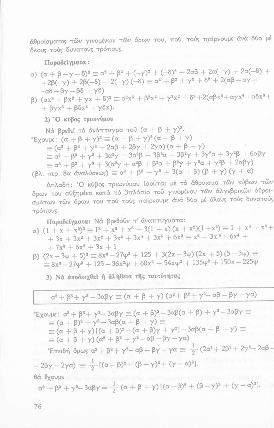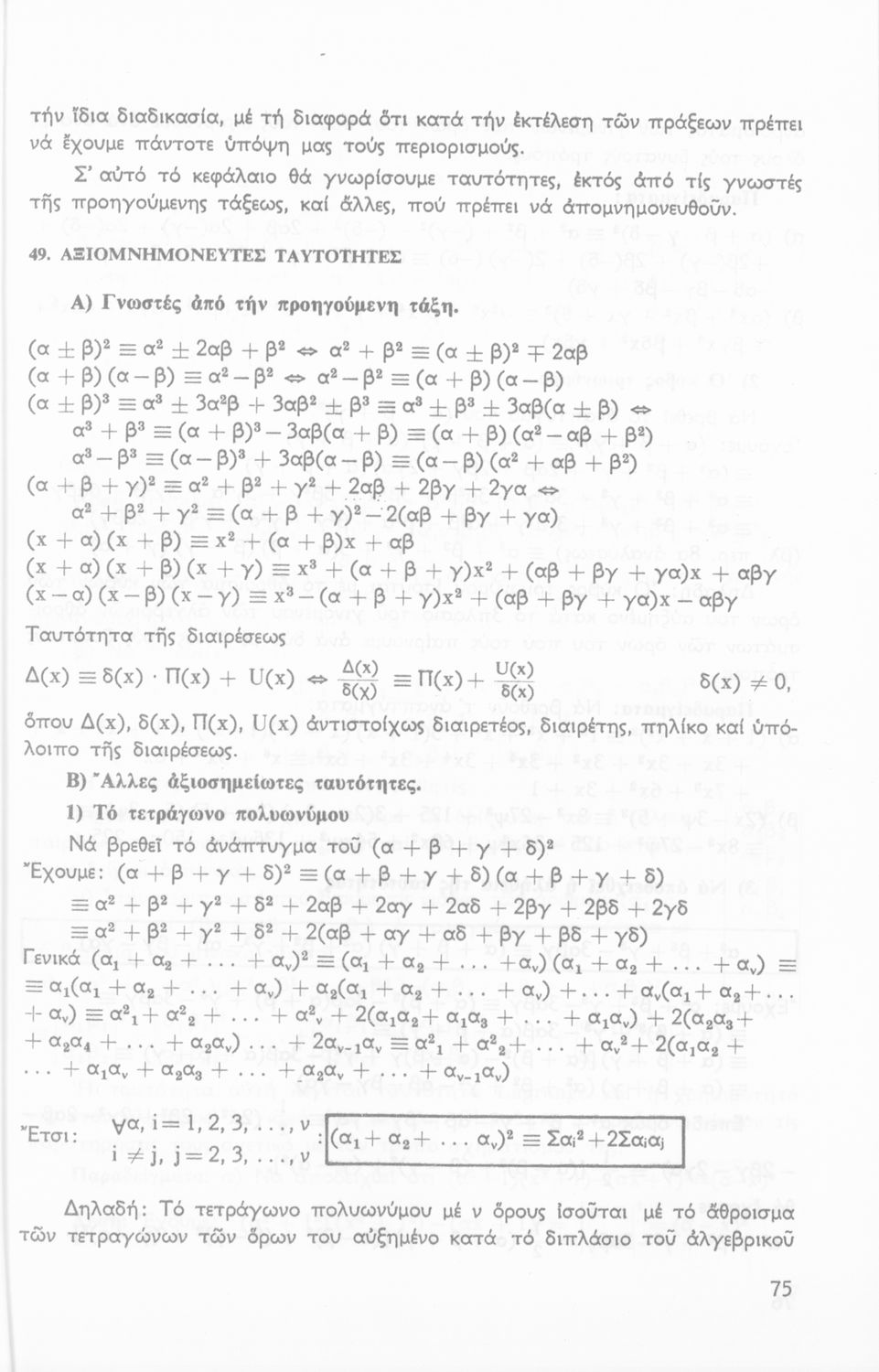 Σχολικό εγχειρίδιο Μαθηματικών Γυμνασίου που είναι χωρισμένο σε θεωρήματα, παραδείγματα και ασκήσεις και περιλαμβάνει στοιχεία Ανώτερης Άλγεβρας και Μαθηματικής Ανάλυσης.