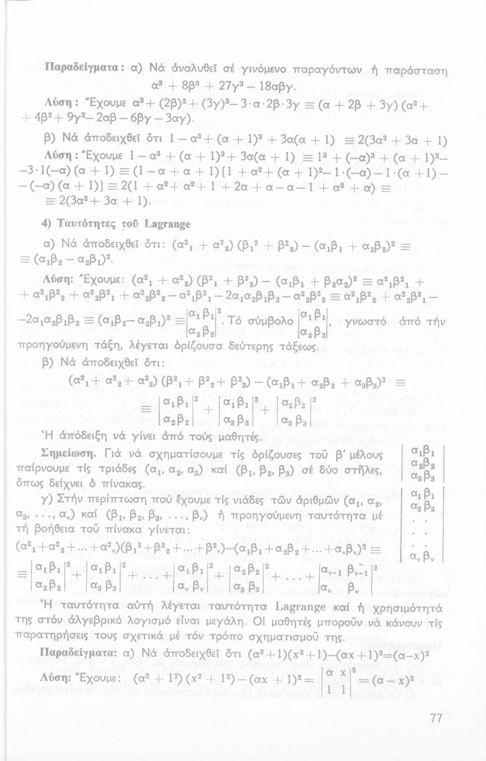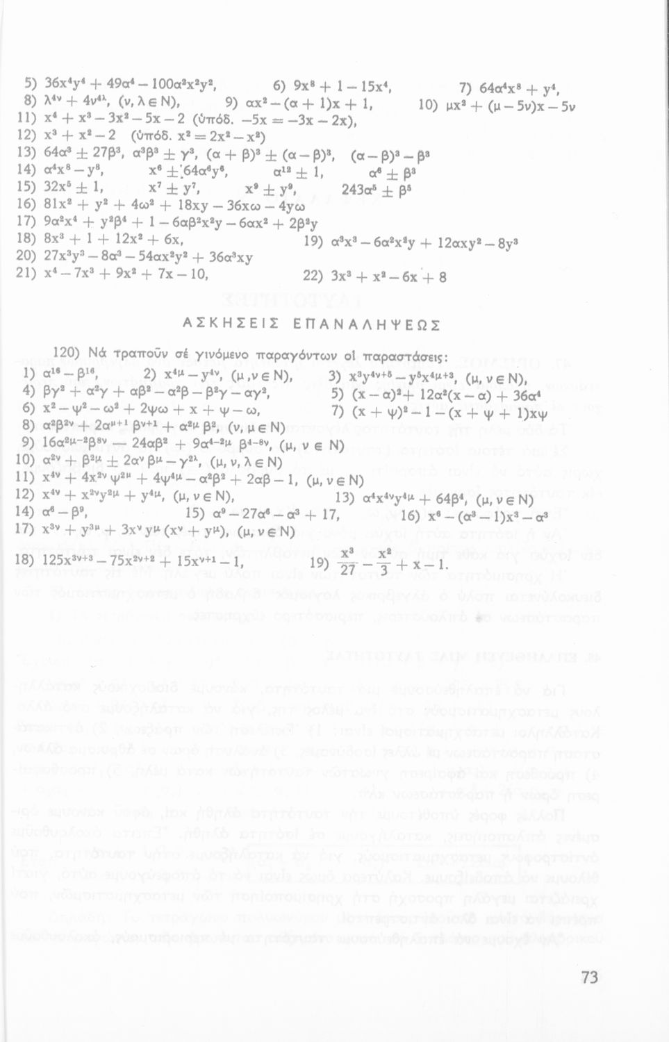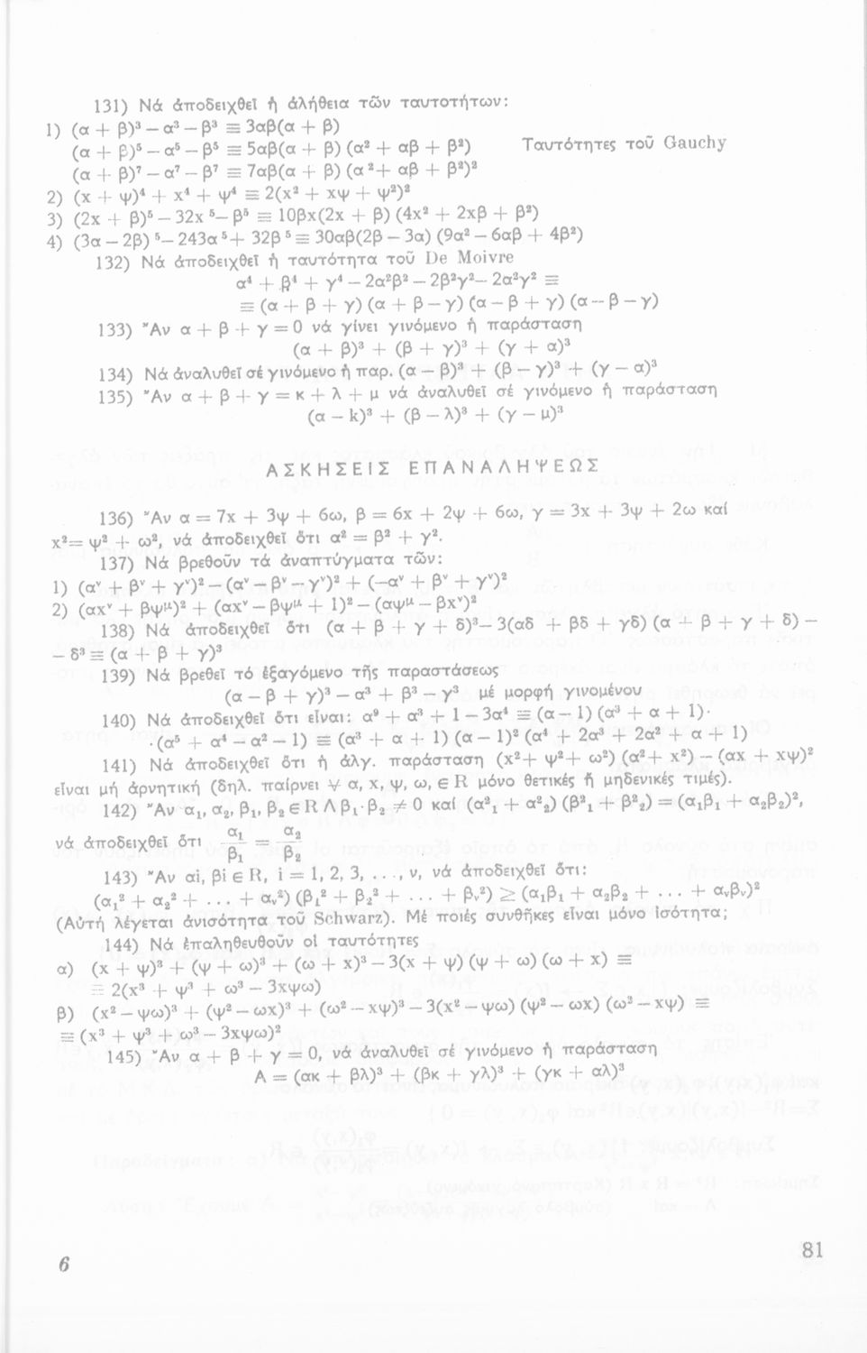Σχολικό εγχειρίδιο Μαθηματικών ΣΤ΄ Γυμνασίου που είναι χωρισμένο σε θεωρήματα, παραδείγματα και ασκήσεις και περιλαμβάνει στοιχεία Ανώτερης Άλγεβρας και Μαθηματικής Ανάλυσης.