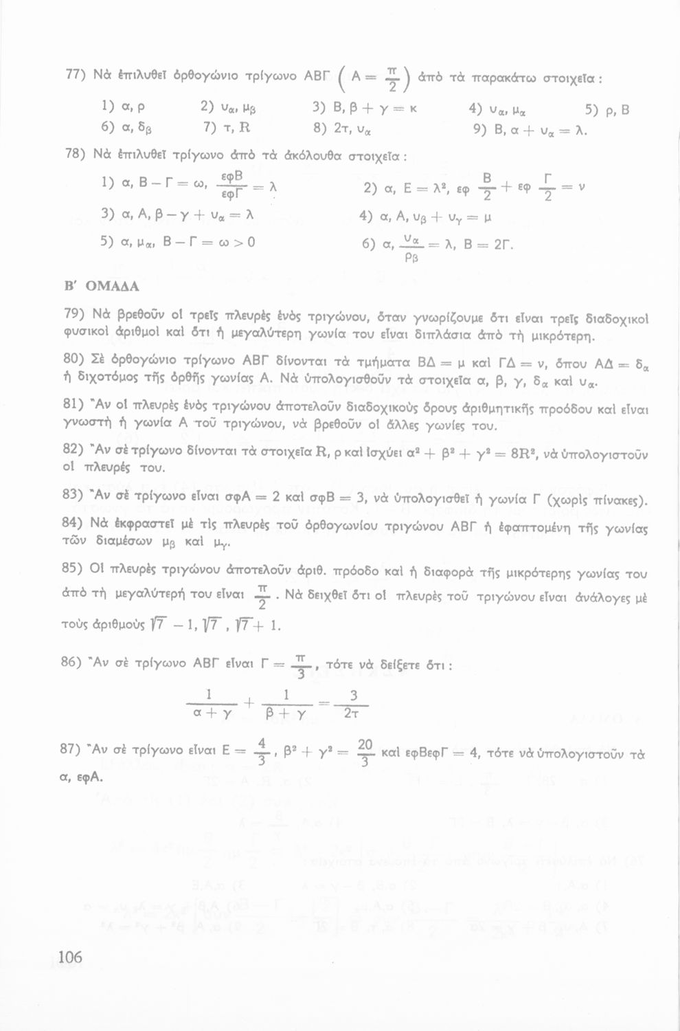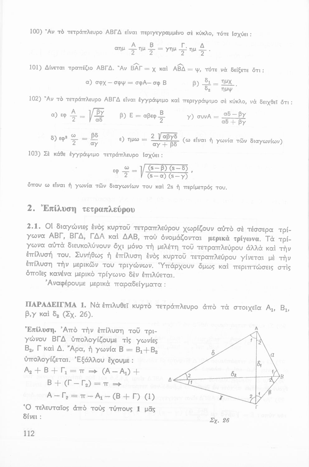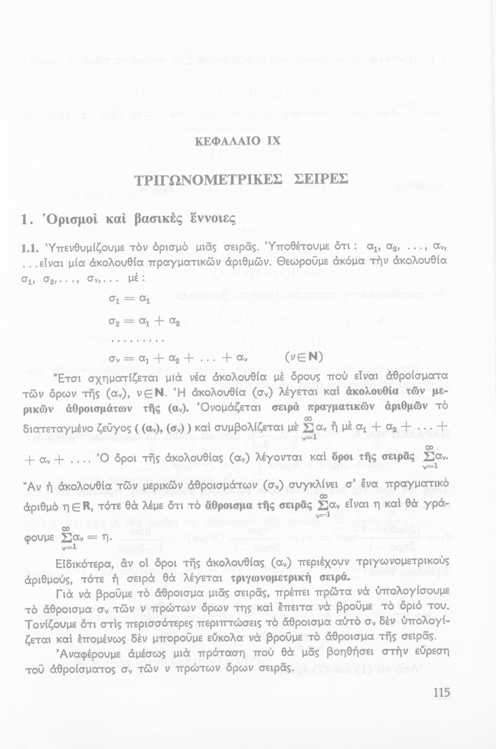Σχολικό εγχειρίδιο Τριγωνομετρίας Γ΄ Λυκείου χωρισμένο σε ορισμούς, θεωρία, παραδείγματα και ασκήσεις.