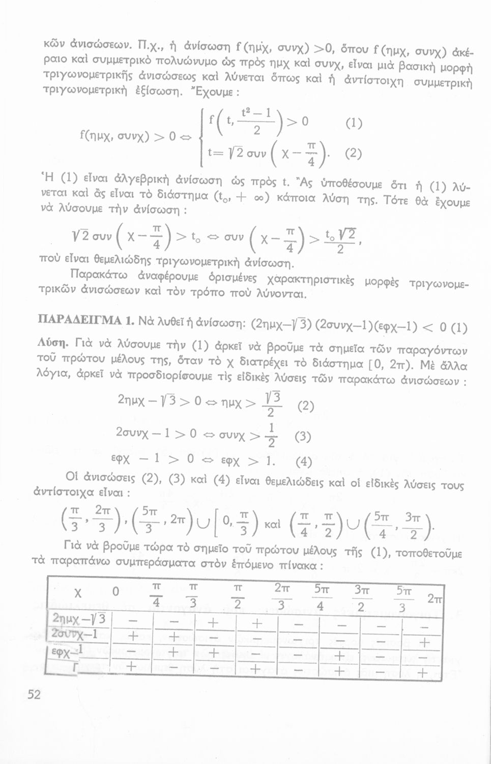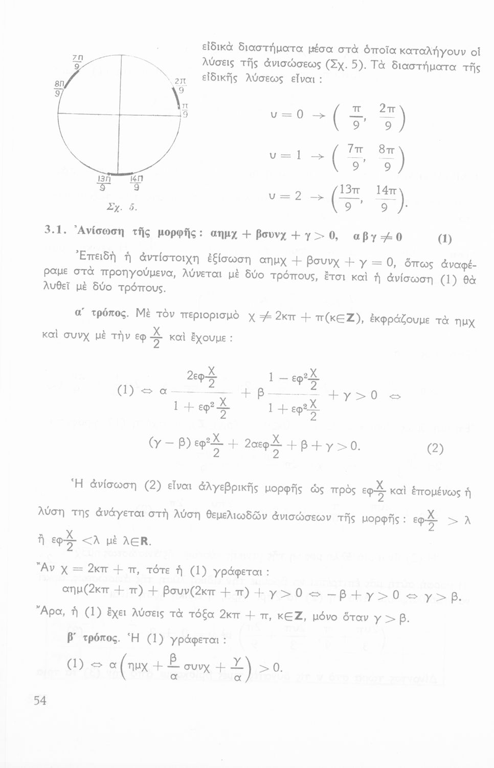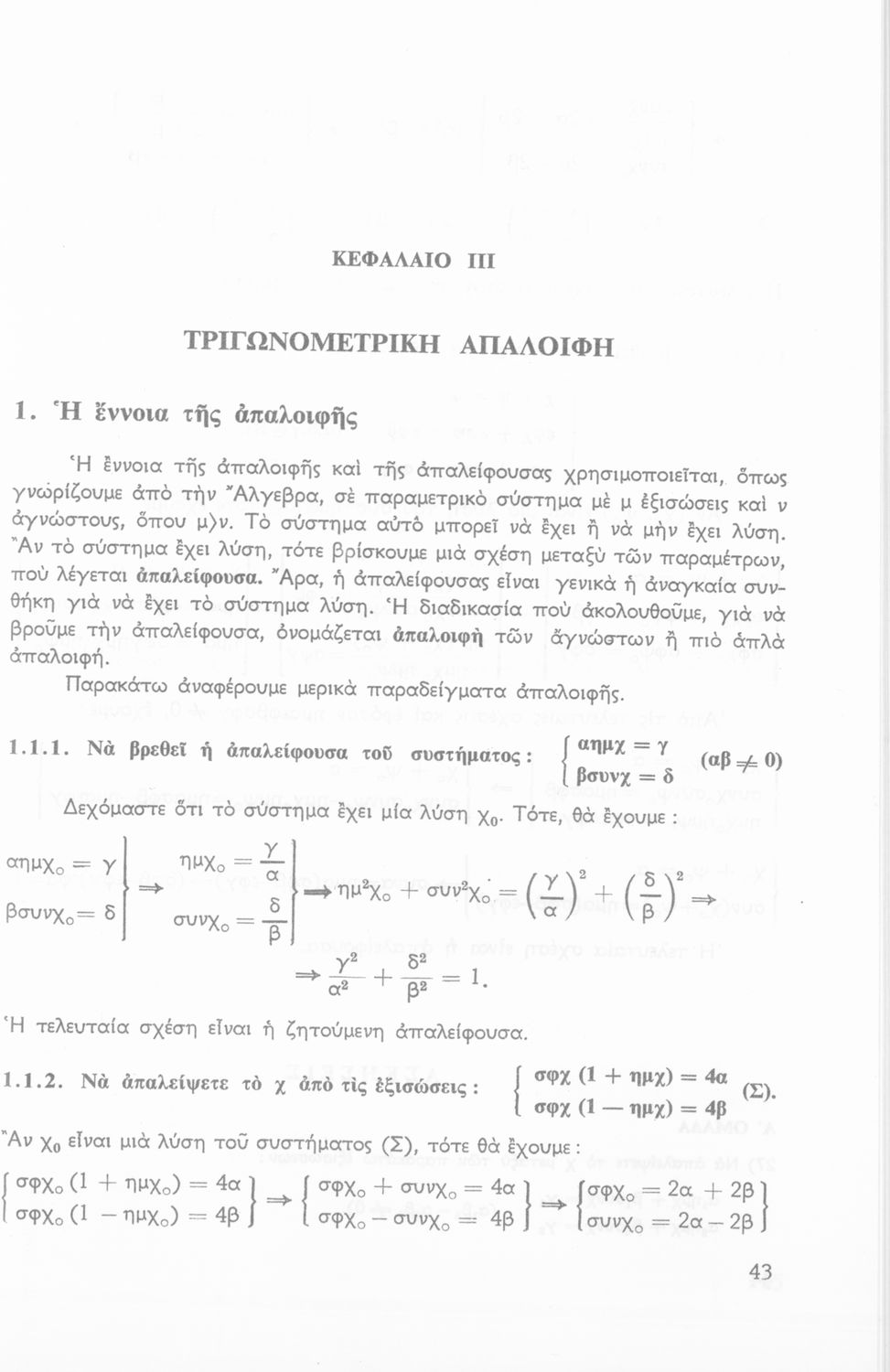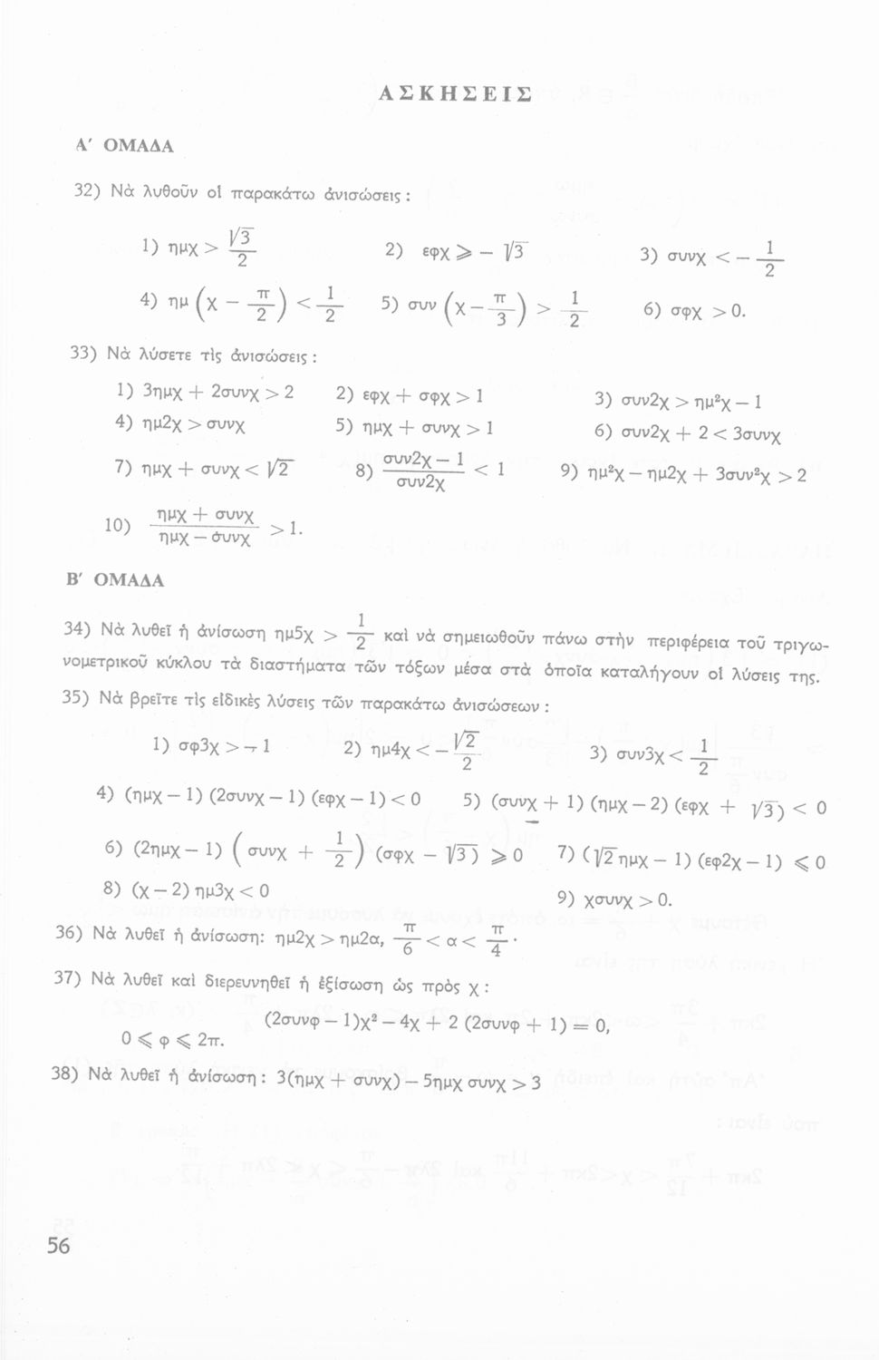 Σχολικό εγχειρίδιο της ΣΤ΄ Γυμνασίου για το μάθημα των Μαθηματικών. Περιέχει θεωρία, ασκήσεις λυμένες και παραδείγματα της Τριγωνομετρίας. Απευθυνόταν στους μαθητές της θετικής κατεύθυνσης.