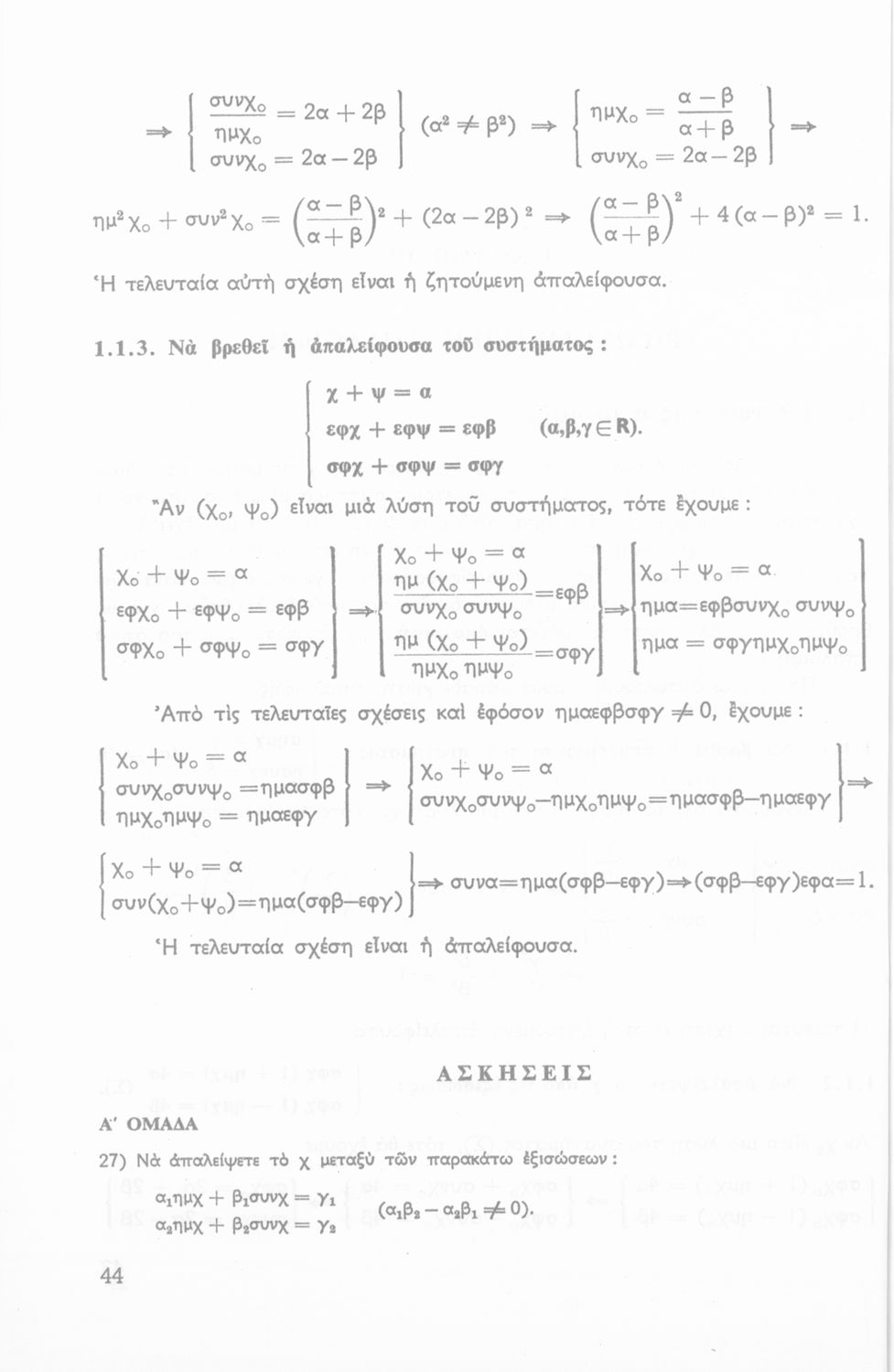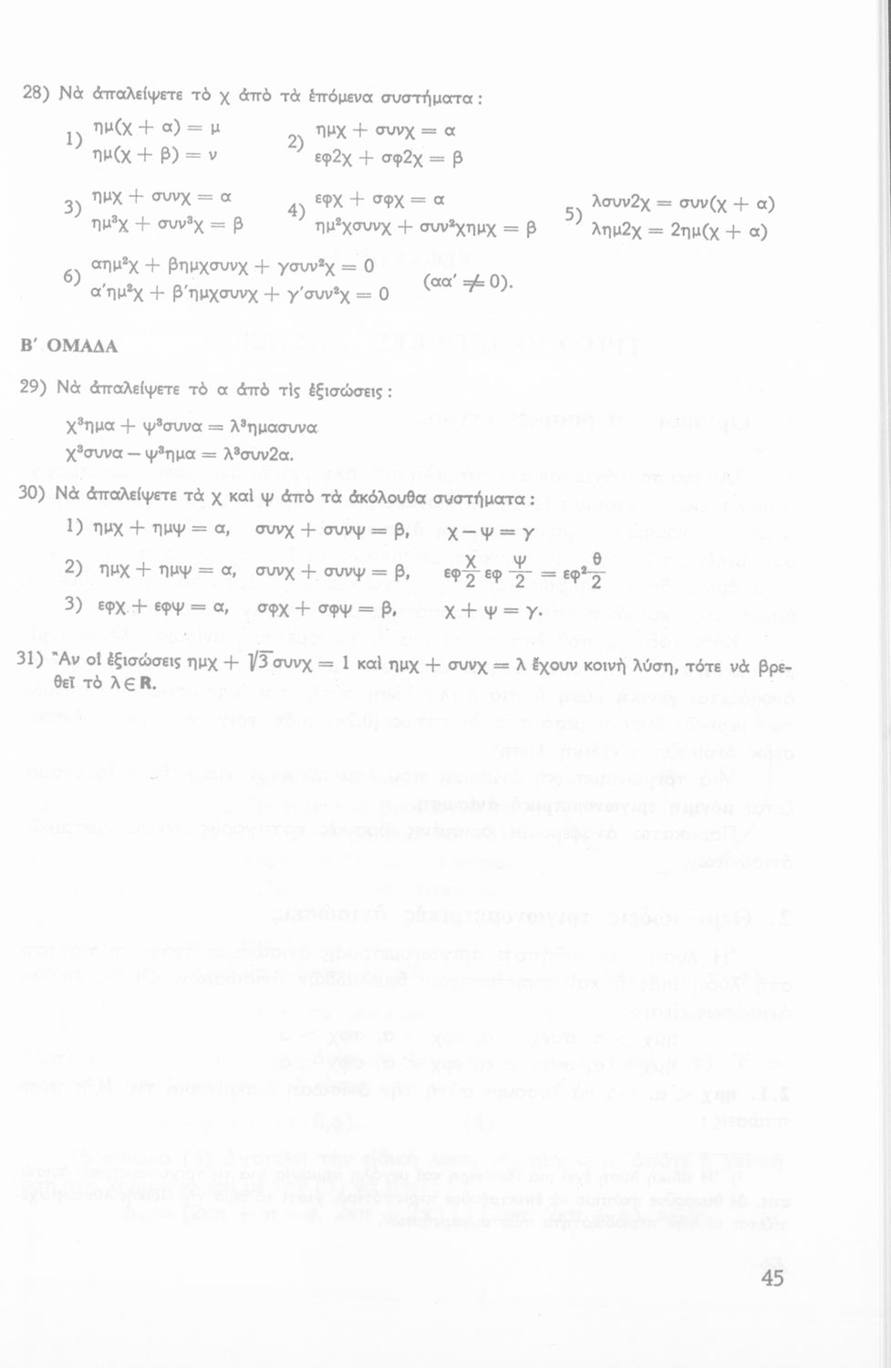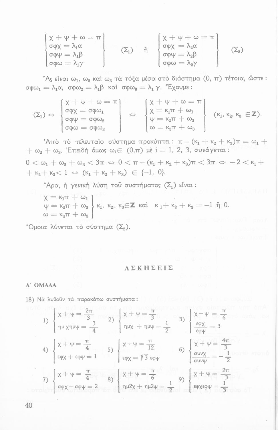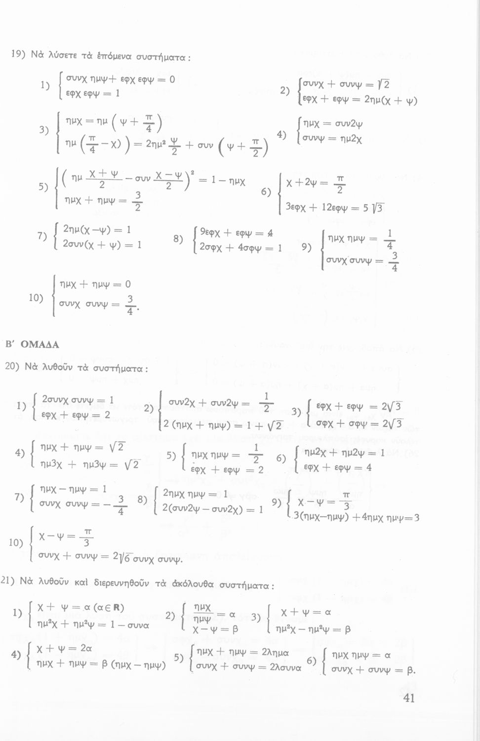 Σχολικό εγχειρίδιο της ΣΤ΄ Γυμνασίου για το μάθημα των Μαθηματικών. Περιέχει θεωρία, ασκήσεις λυμένες και παραδείγματα της Τριγωνομετρίας. Απευθυνόταν στους μαθητές της θετικής κατεύθυνσης.