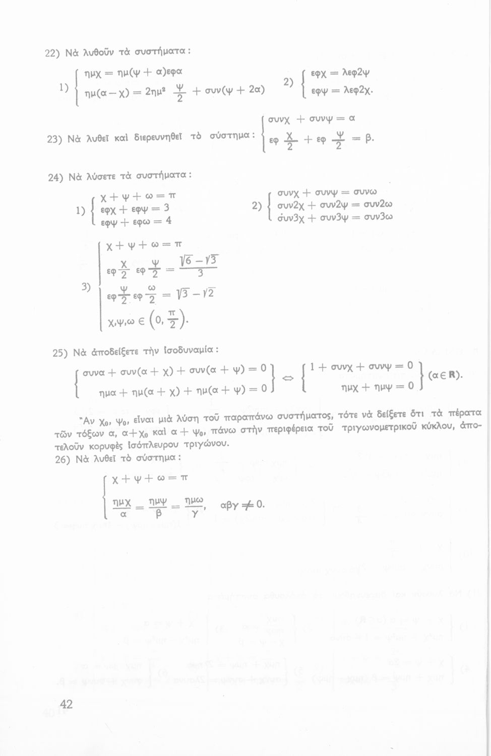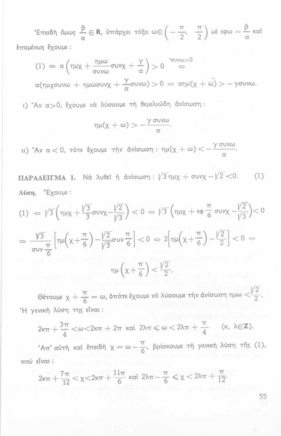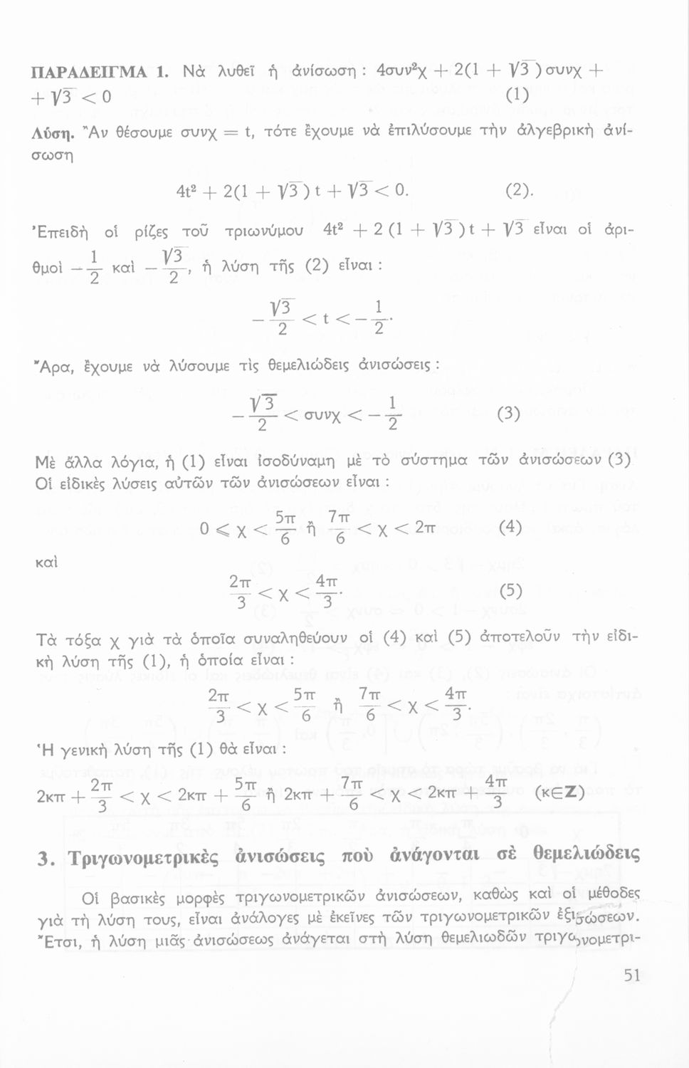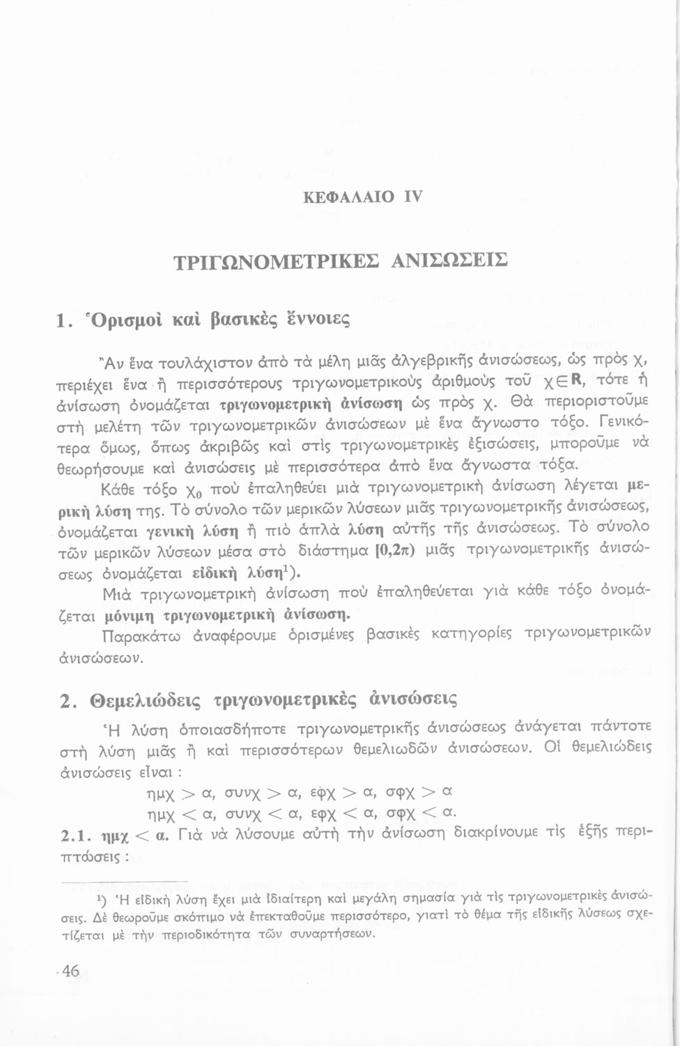 Σχολικό εγχειρίδιο Τριγωνομετρίας Γ΄ Λυκείου χωρισμένο σε ορισμούς, θεωρία, παραδείγματα και ασκήσεις.