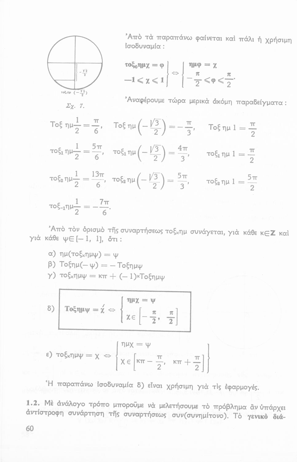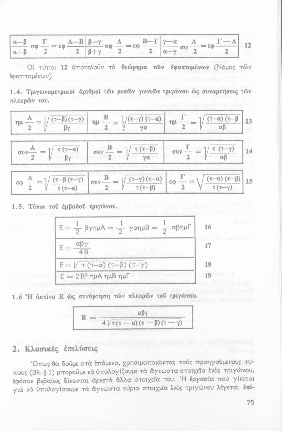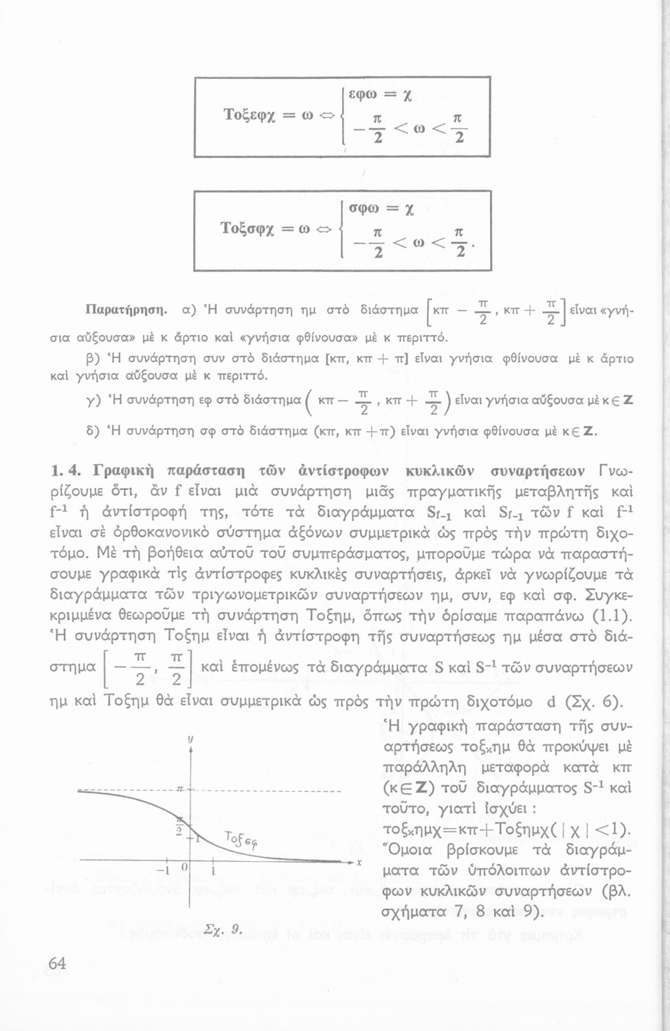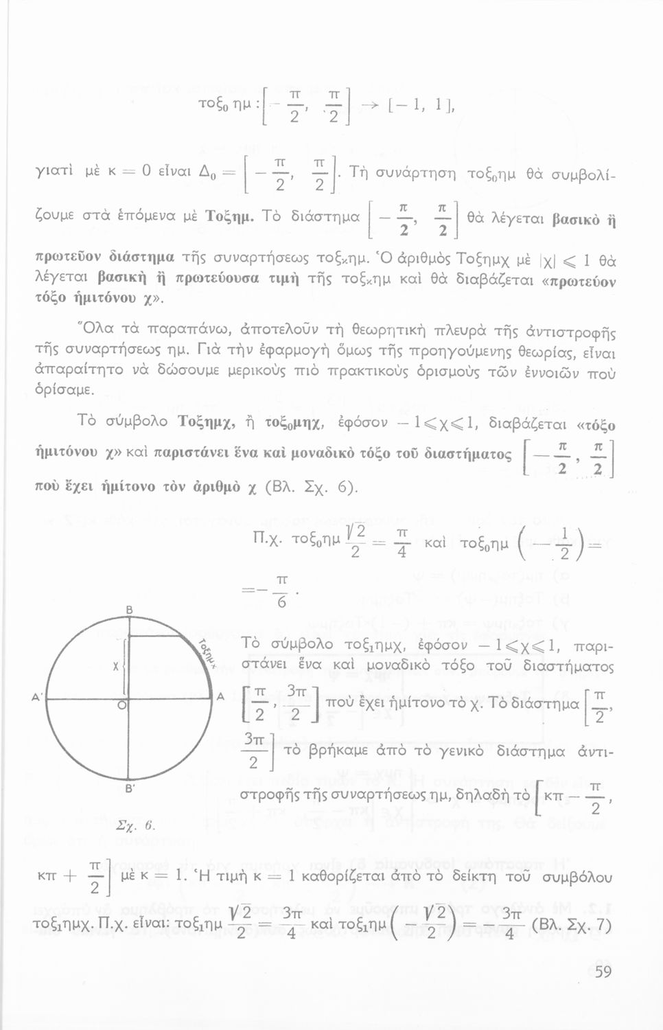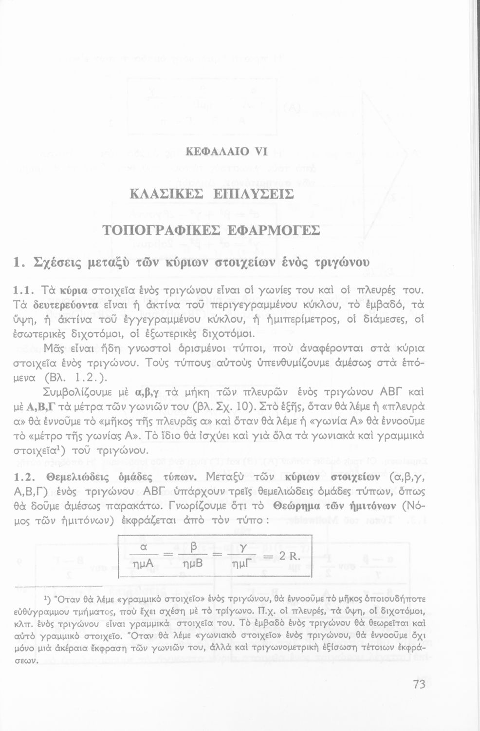 Σχολικό εγχειρίδιο της ΣΤ΄ Γυμνασίου για το μάθημα των Μαθηματικών. Περιέχει θεωρία, ασκήσεις λυμένες και παραδείγματα της Τριγωνομετρίας. Απευθυνόταν στους μαθητές της θετικής κατεύθυνσης.
