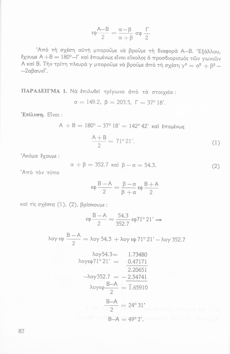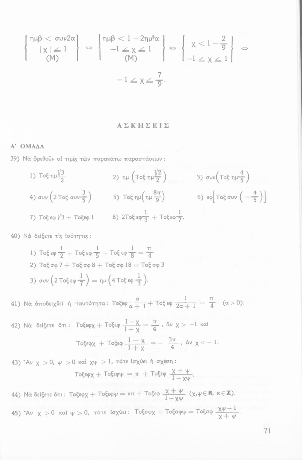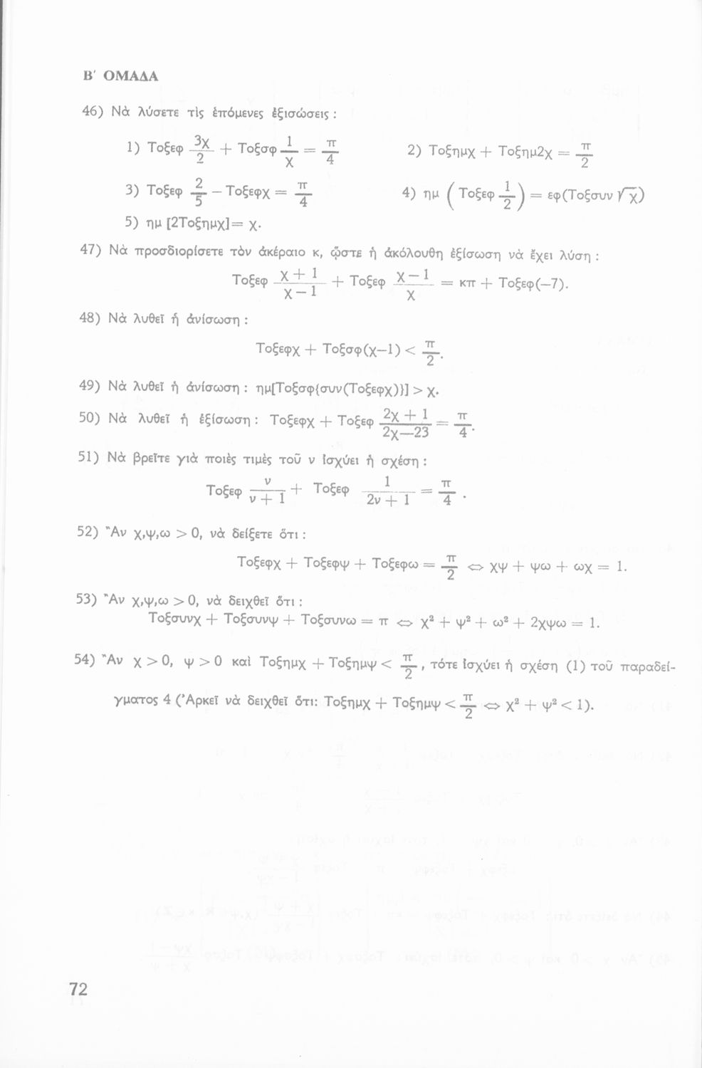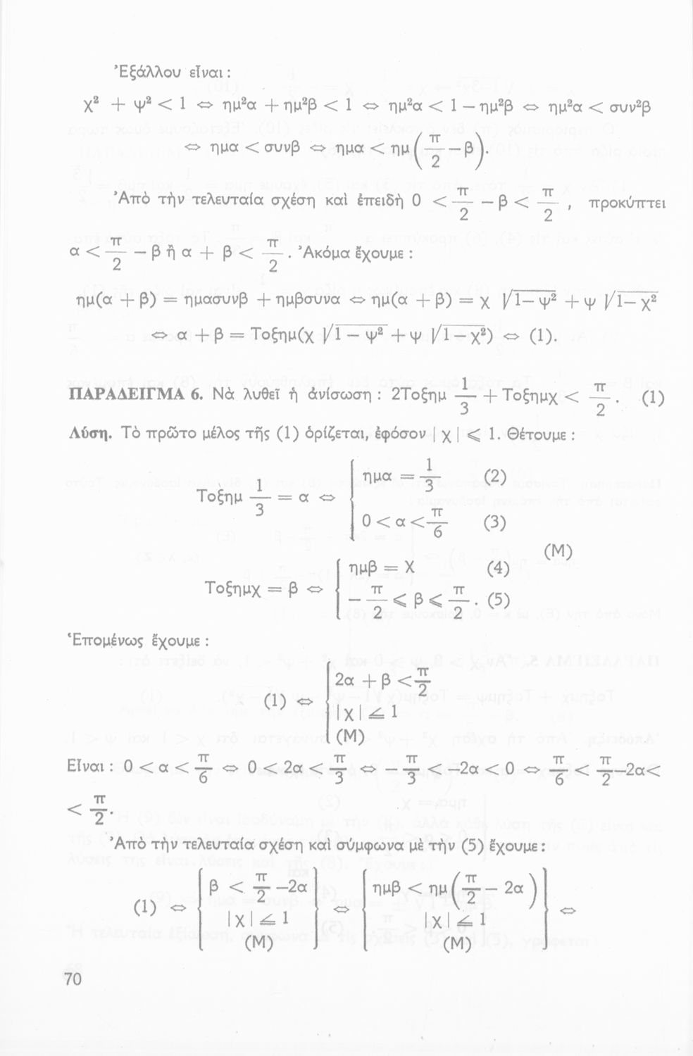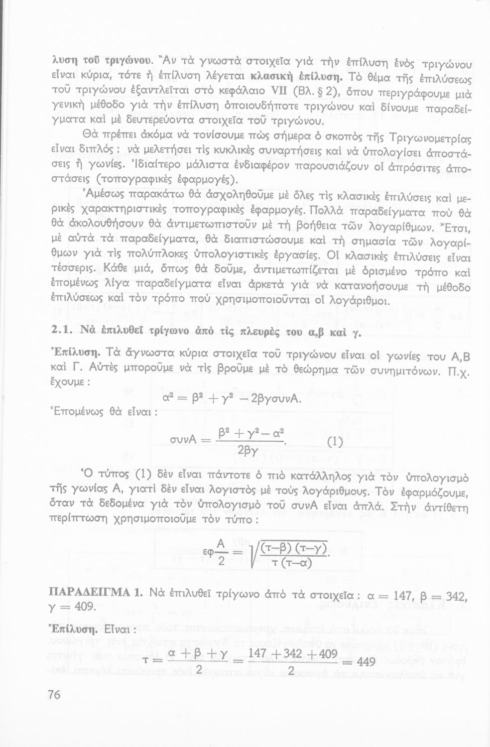 Σχολικό εγχειρίδιο της ΣΤ΄ Γυμνασίου για το μάθημα των Μαθηματικών. Περιέχει θεωρία, ασκήσεις λυμένες και παραδείγματα της Τριγωνομετρίας. Απευθυνόταν στους μαθητές της θετικής κατεύθυνσης.