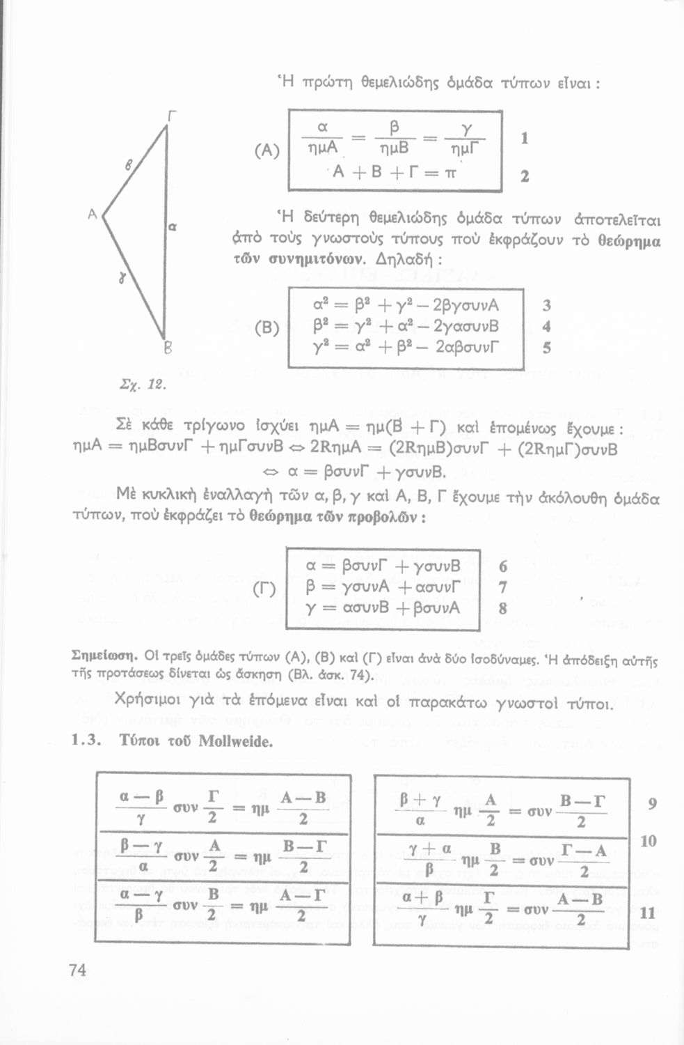 Σχολικό εγχειρίδιο Τριγωνομετρίας Γ΄ Λυκείου χωρισμένο σε ορισμούς, θεωρία, παραδείγματα και ασκήσεις.